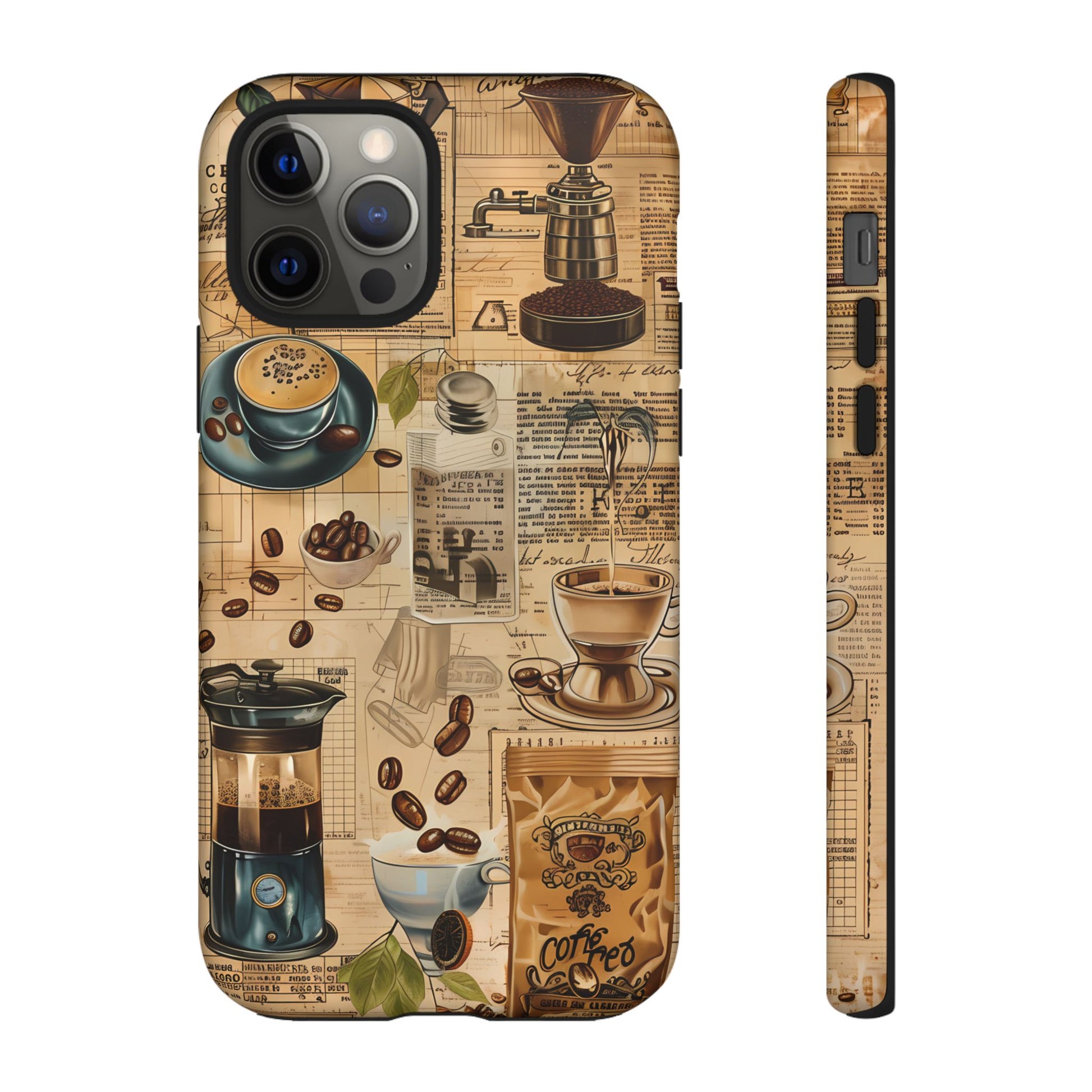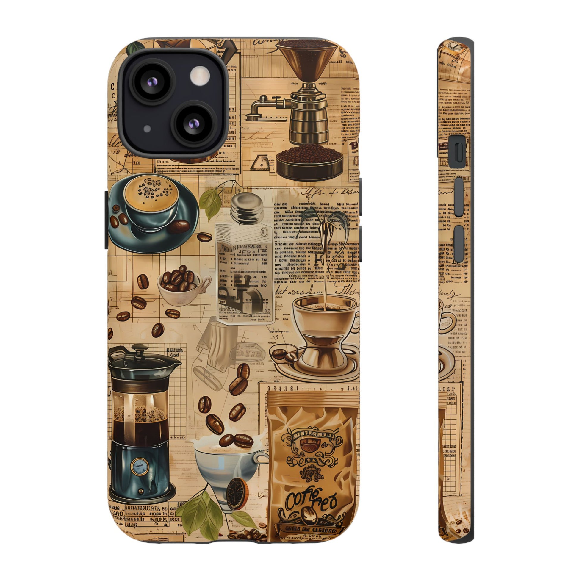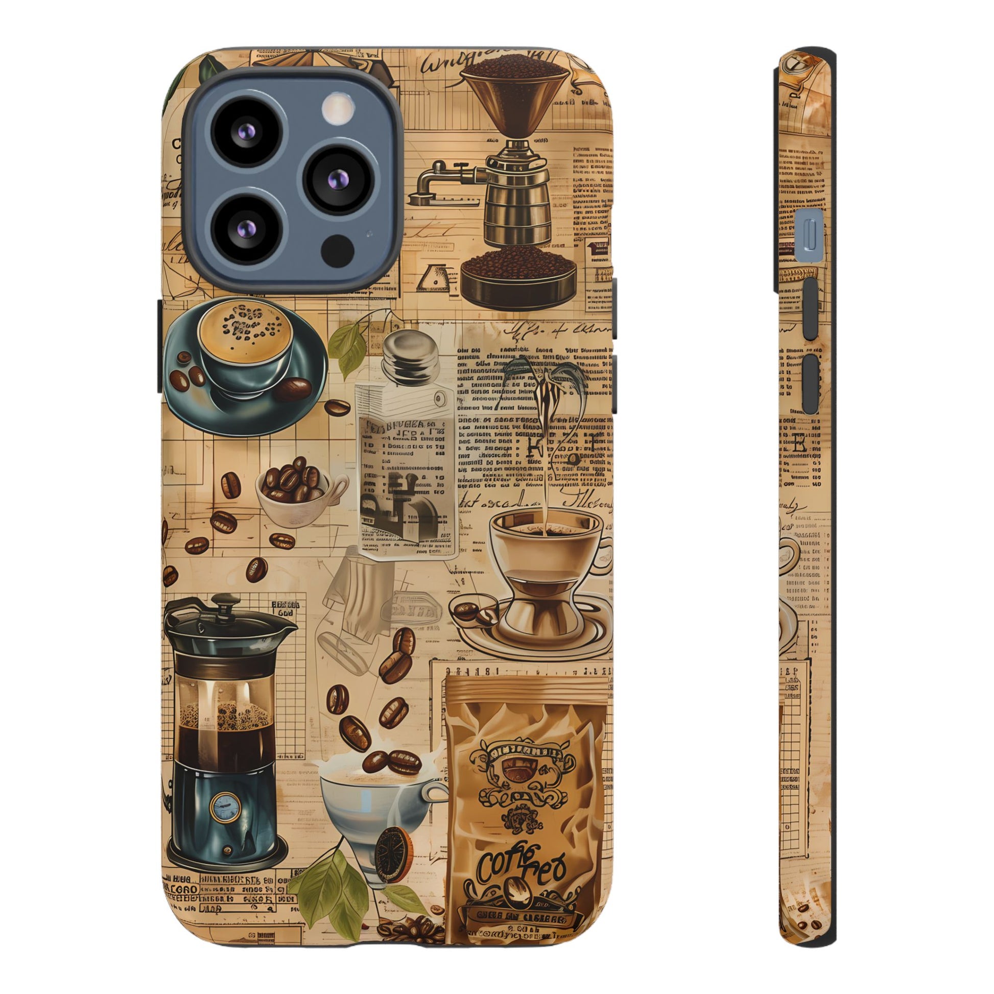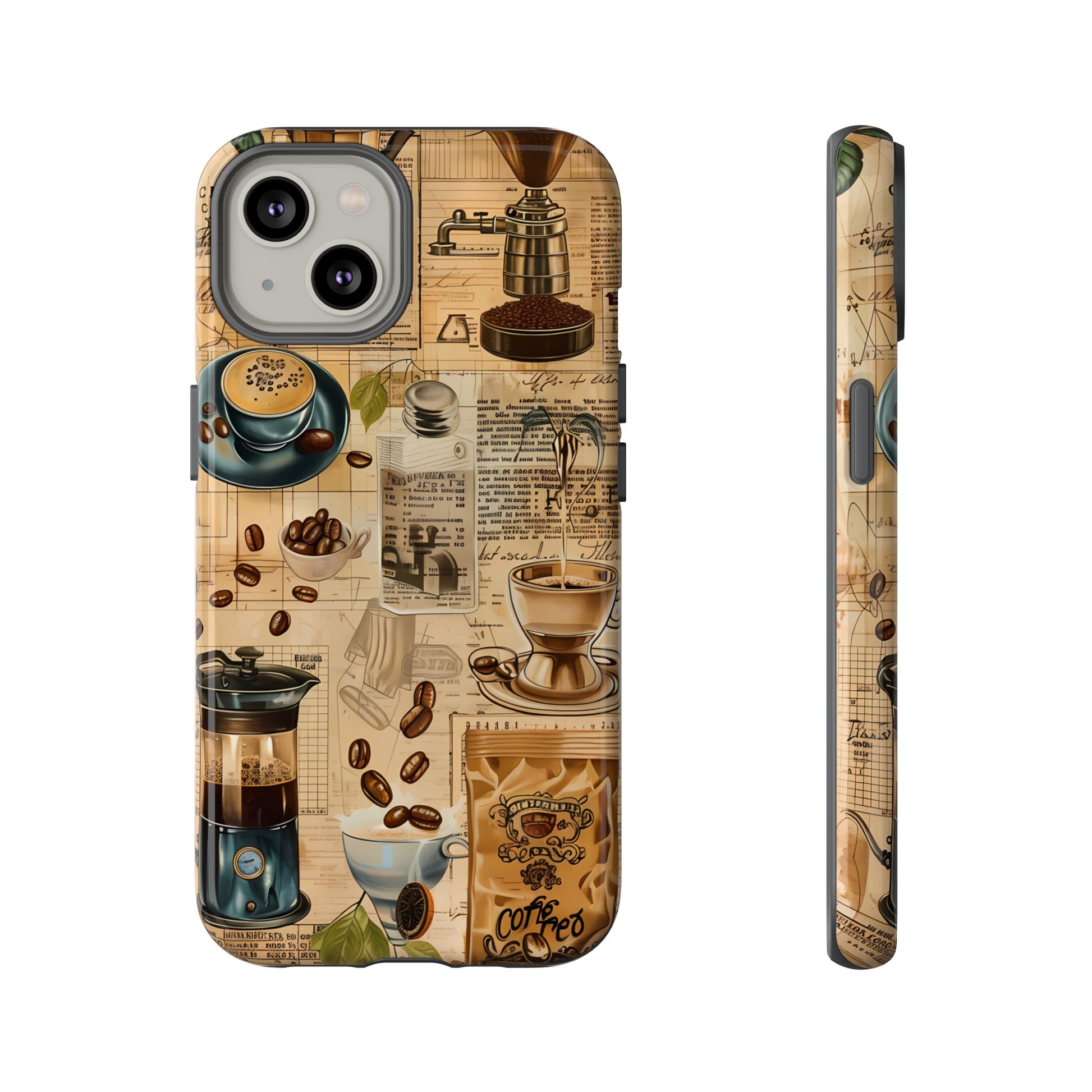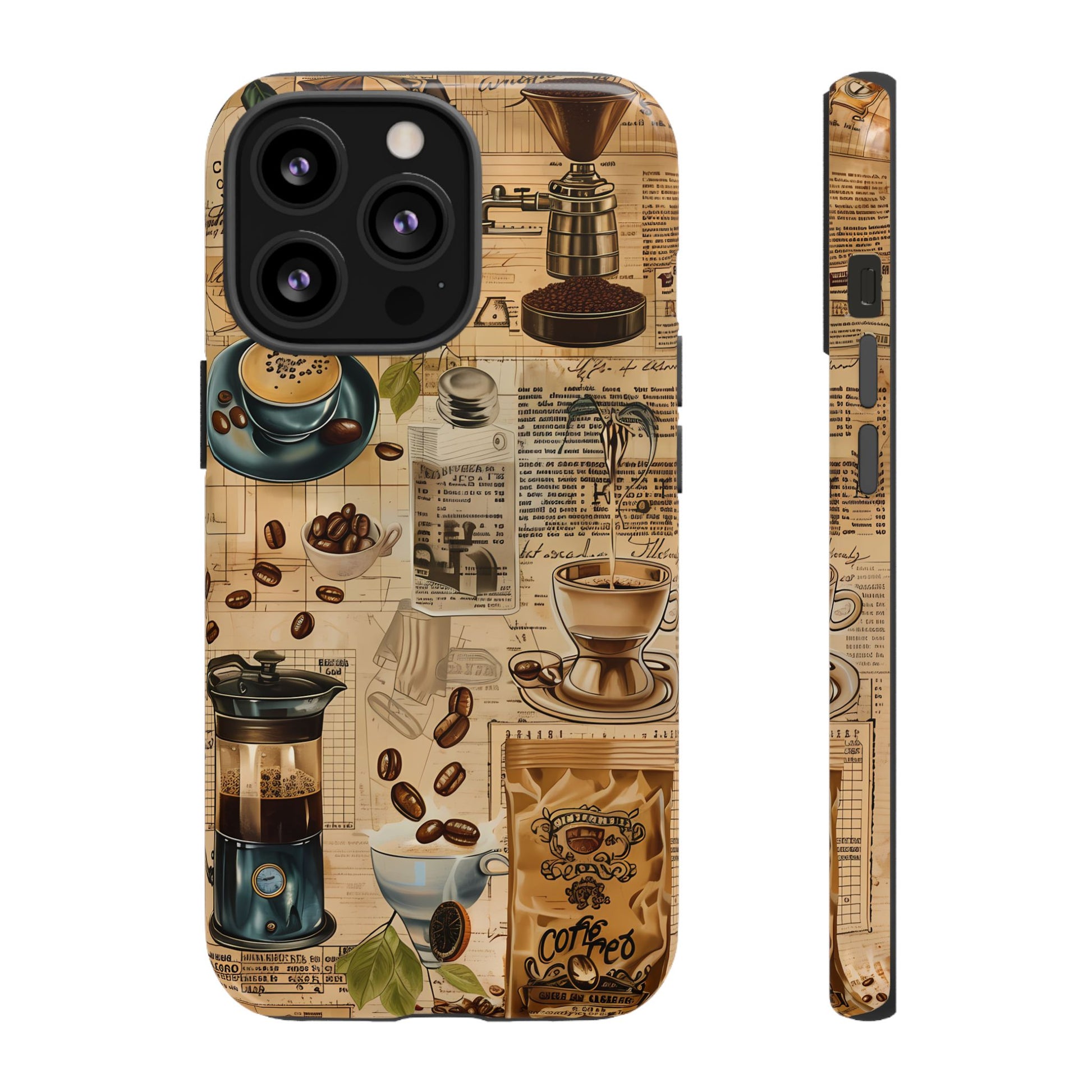 Sip on nostalgia with our Vintage Brew Café Cover. This delightful design showcases a backdrop resembling a stained coffee menu or a page from a barista's notebook, adorned with elements of classic coffee culture like faded photos of coffee shops, doodles of coffee cups, and coffee stains. Indulge in the timeless charm of retro coffee shops
