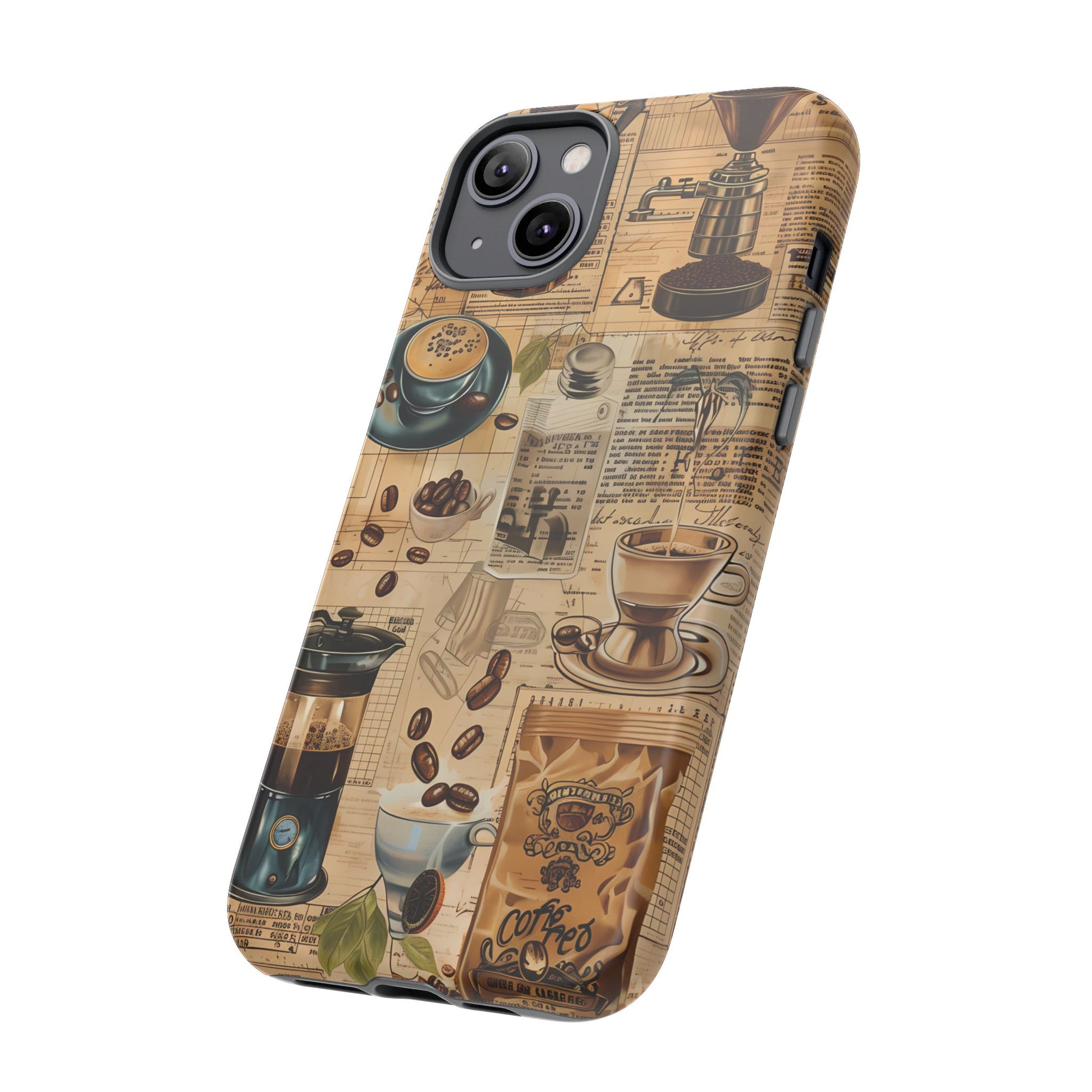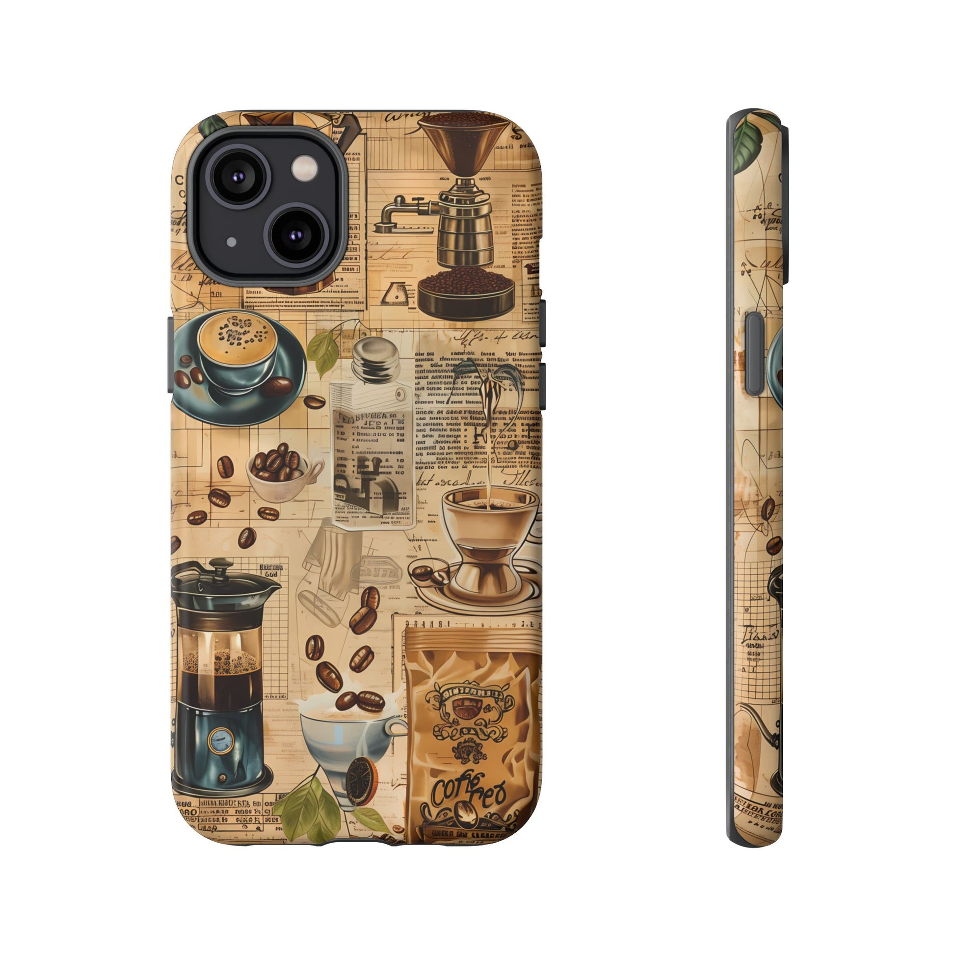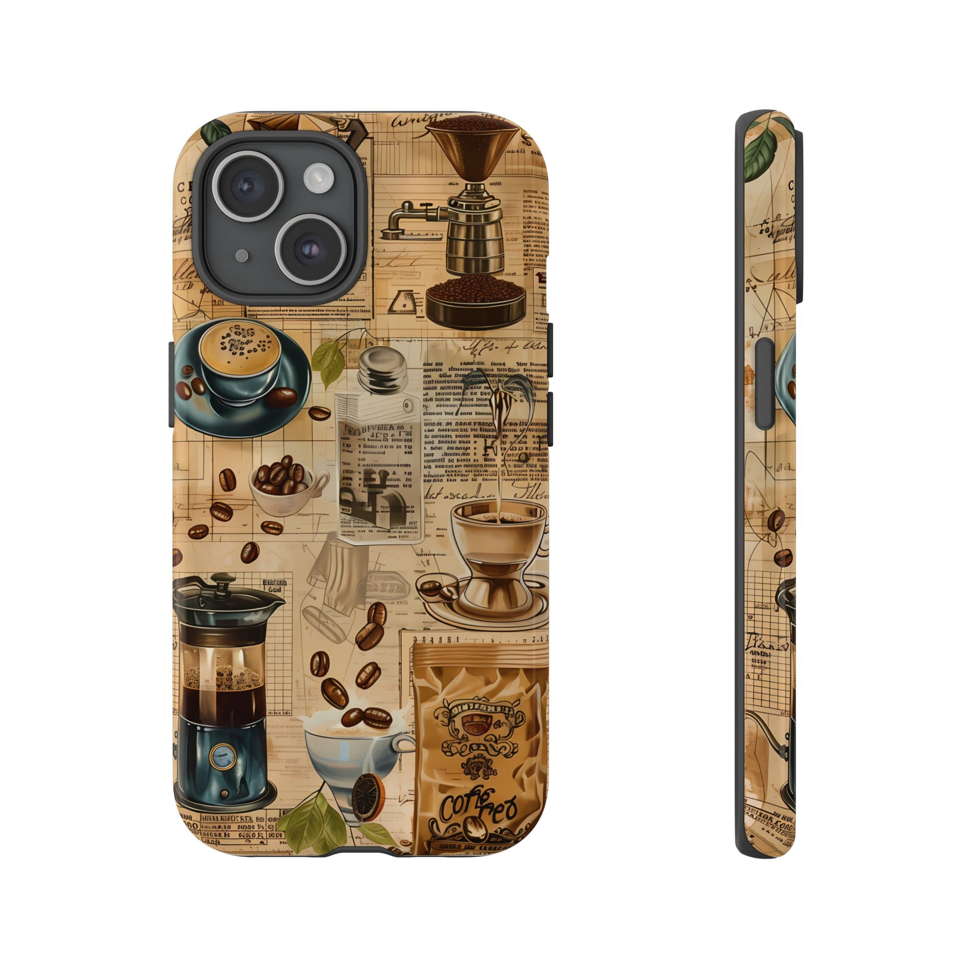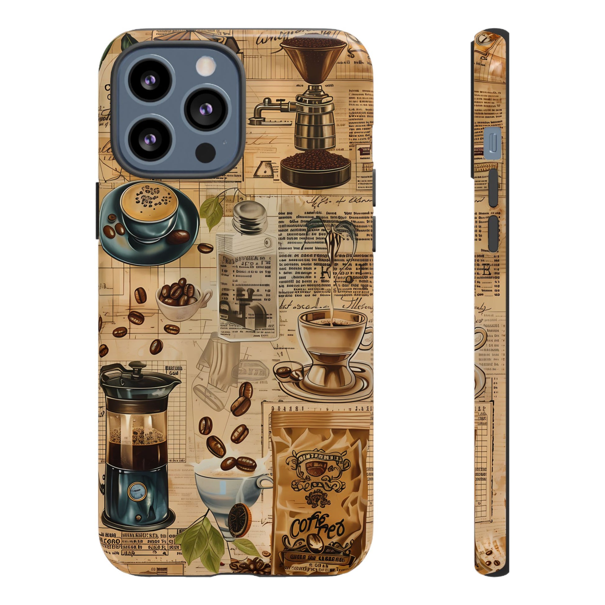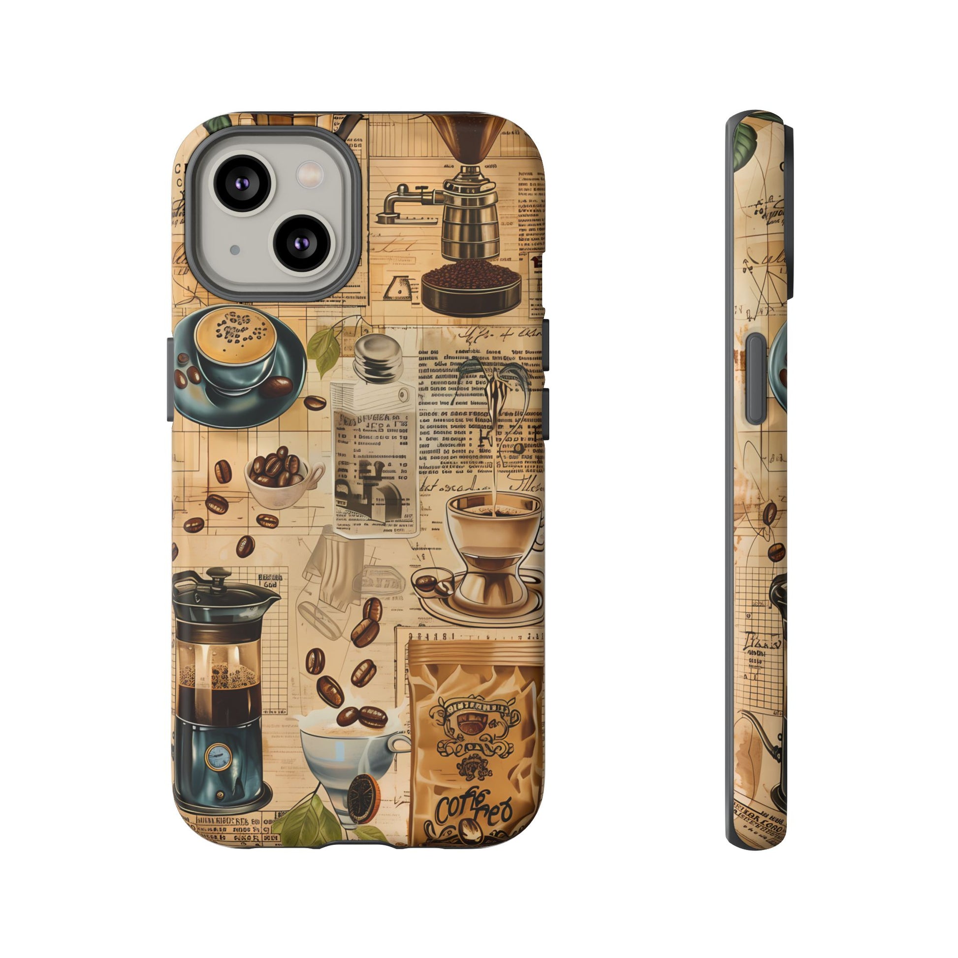 Sip on nostalgia with our Vintage Brew Café Cover. This delightful design showcases a backdrop resembling a stained coffee menu or a page from a barista's notebook, adorned with elements of classic coffee culture like faded photos of coffee shops, doodles of coffee cups, and coffee stains. Indulge in the timeless charm of retro coffee shops