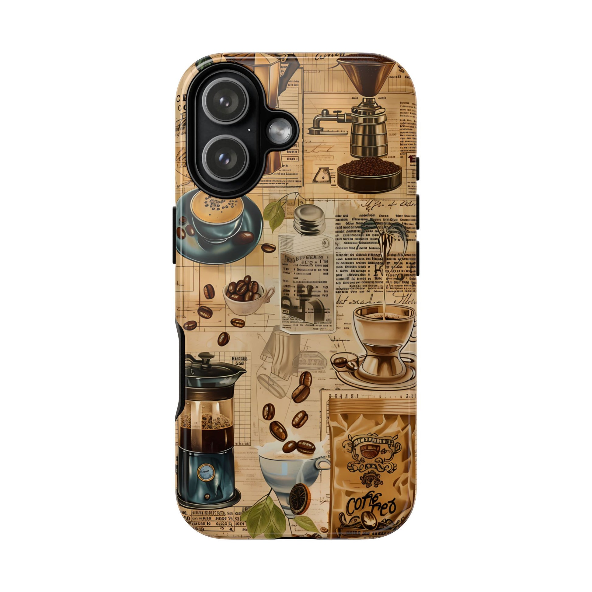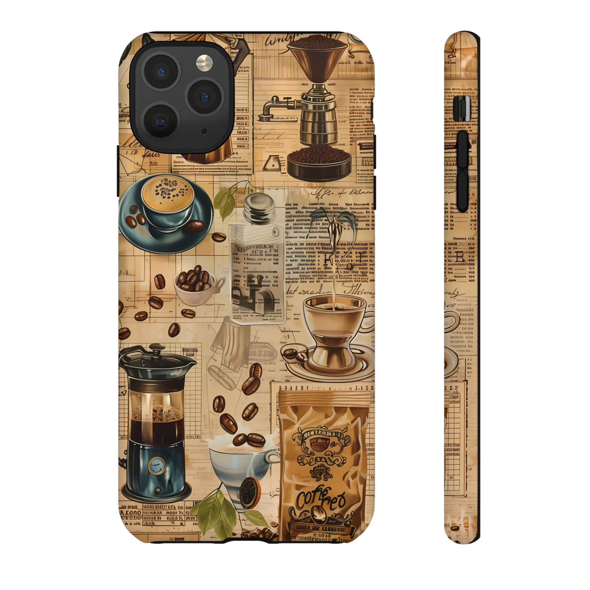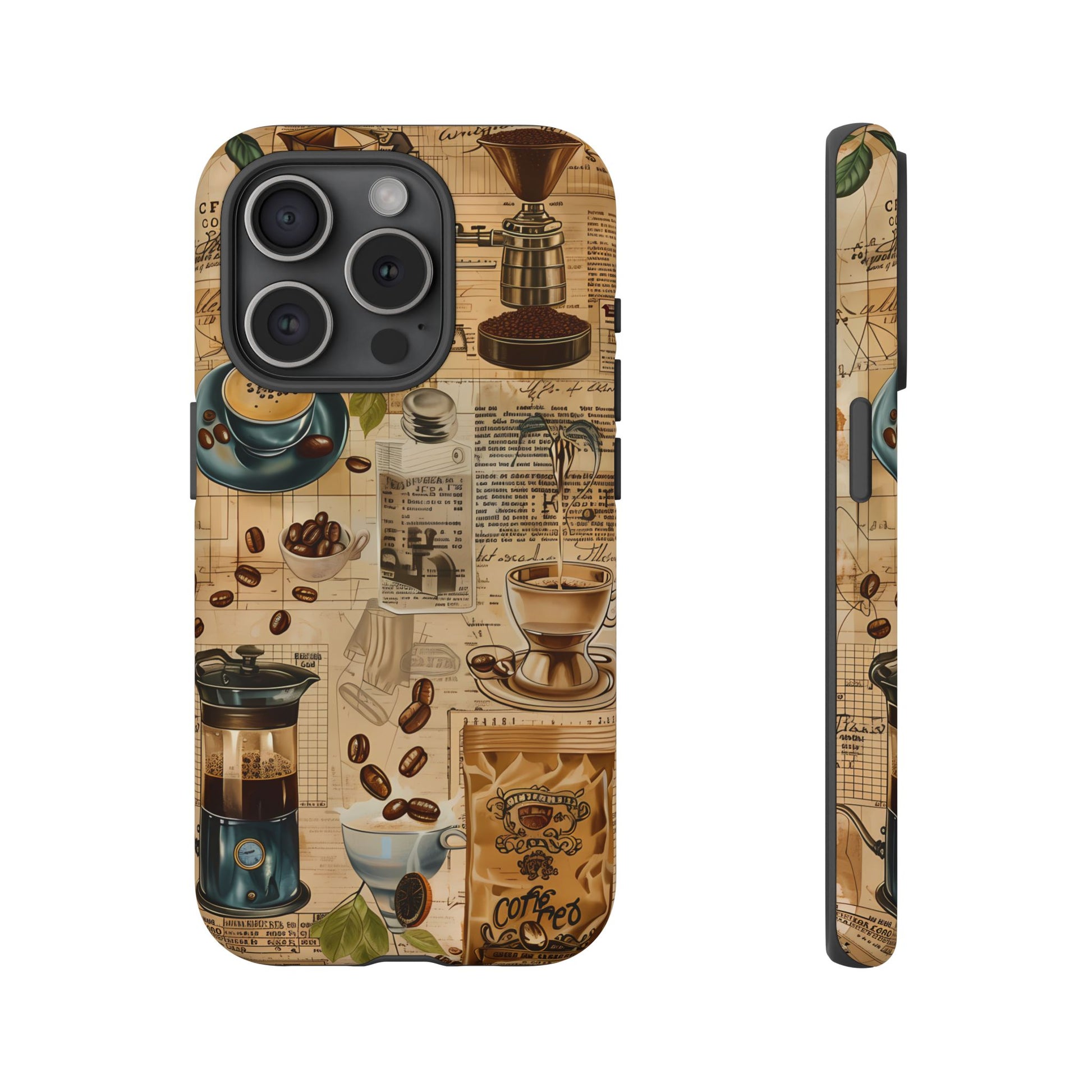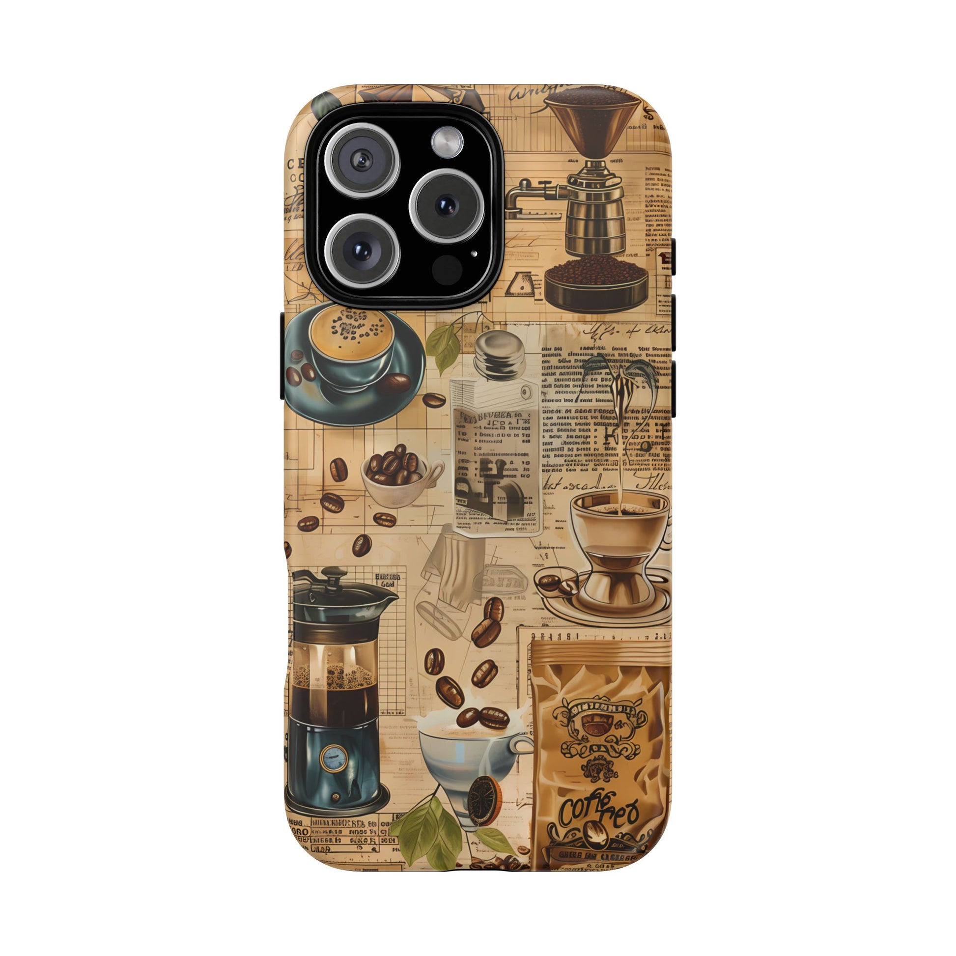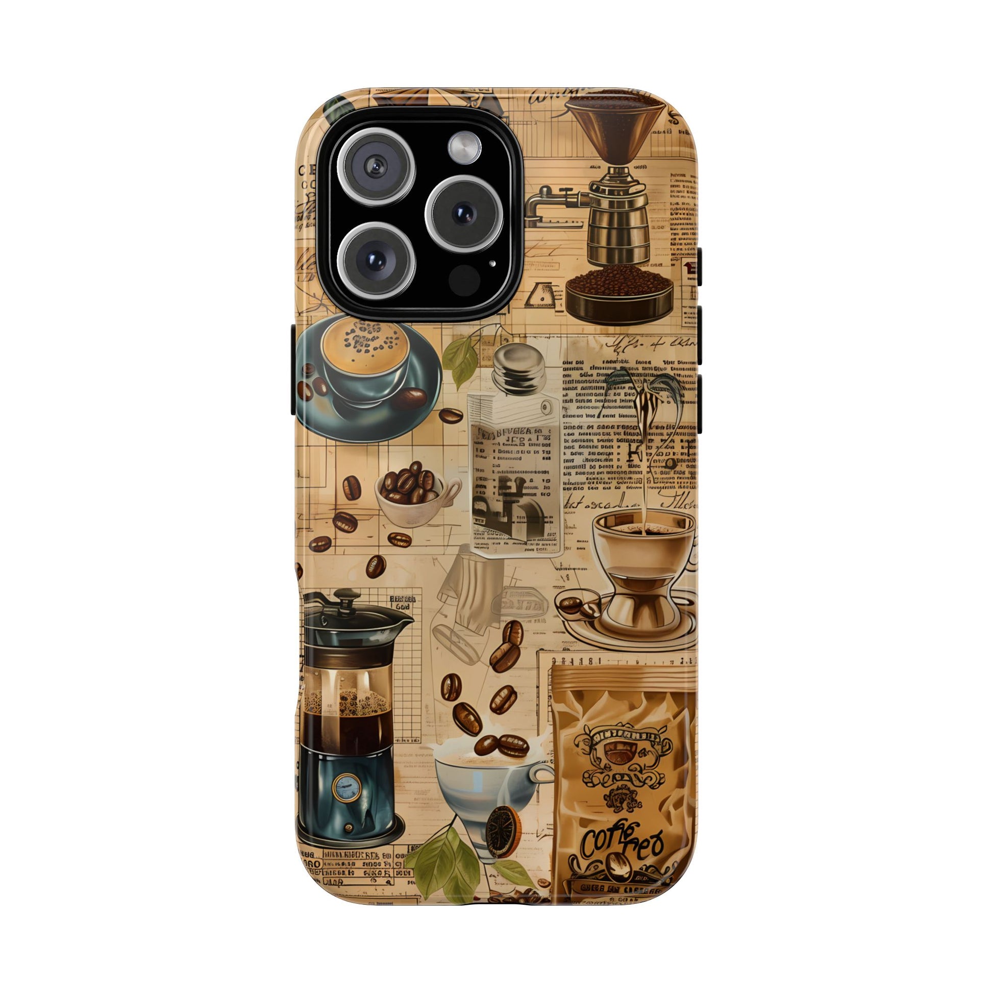 Sip on nostalgia with our Vintage Brew Café Cover. This delightful design showcases a backdrop resembling a stained coffee menu or a page from a barista's notebook, adorned with elements of classic coffee culture like faded photos of coffee shops, doodles of coffee cups, and coffee stains. Indulge in the timeless charm of retro coffee shops