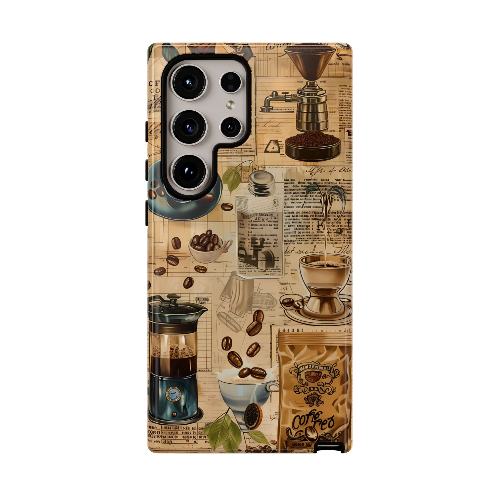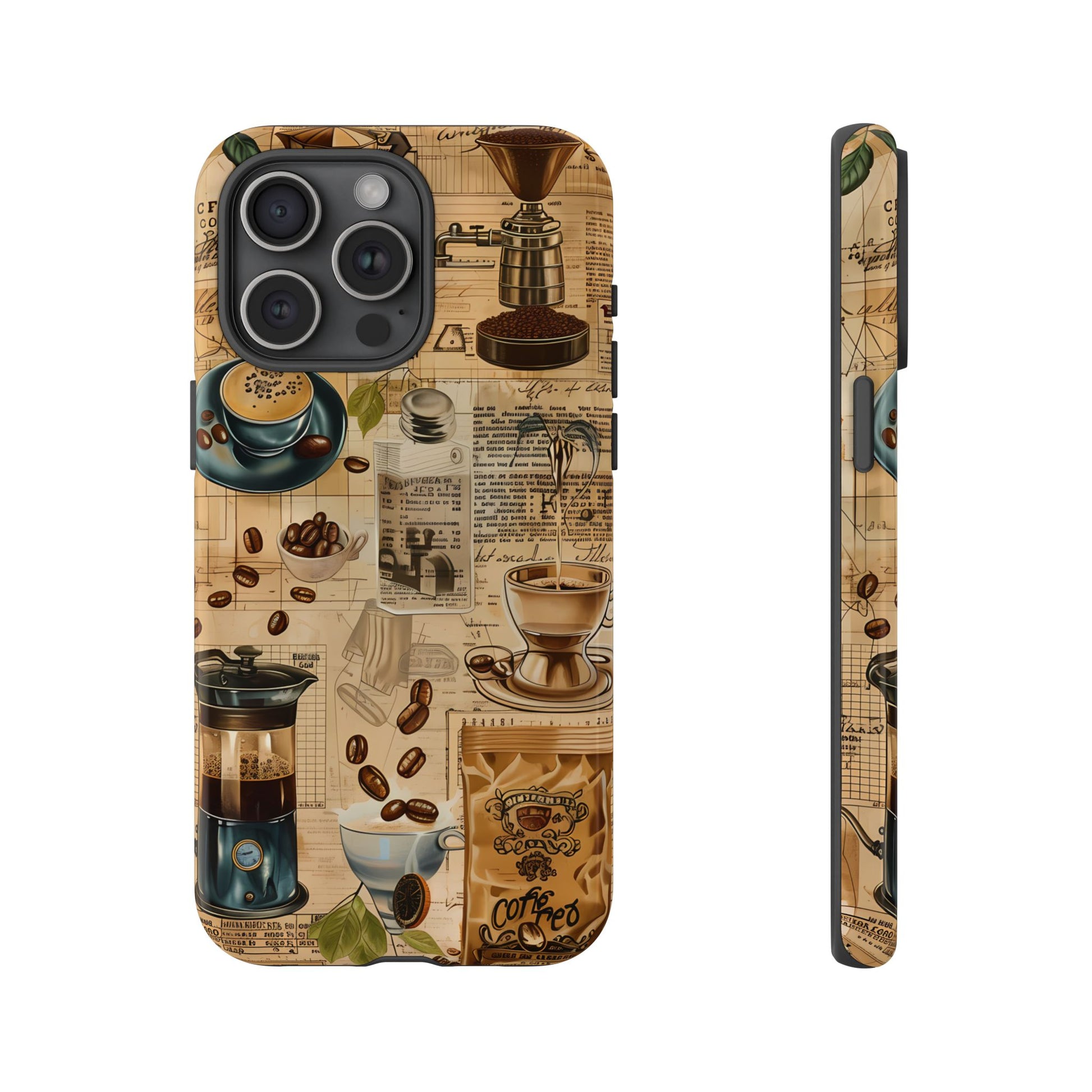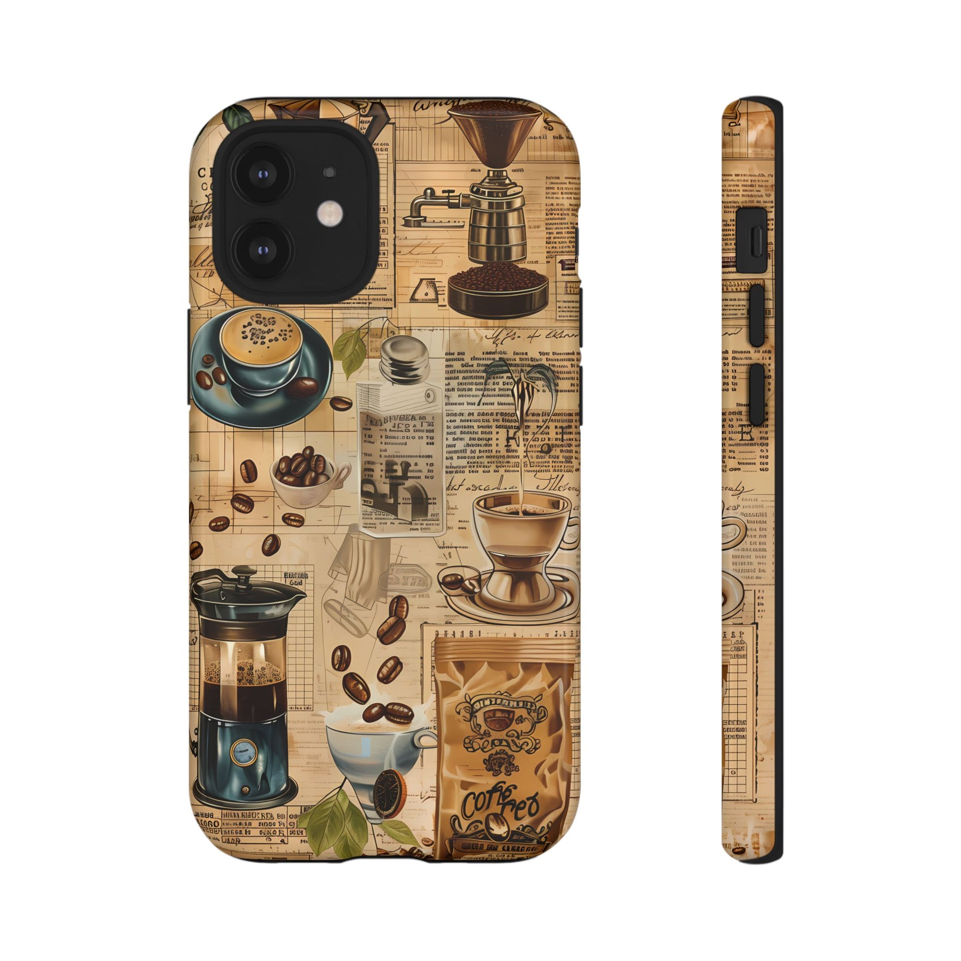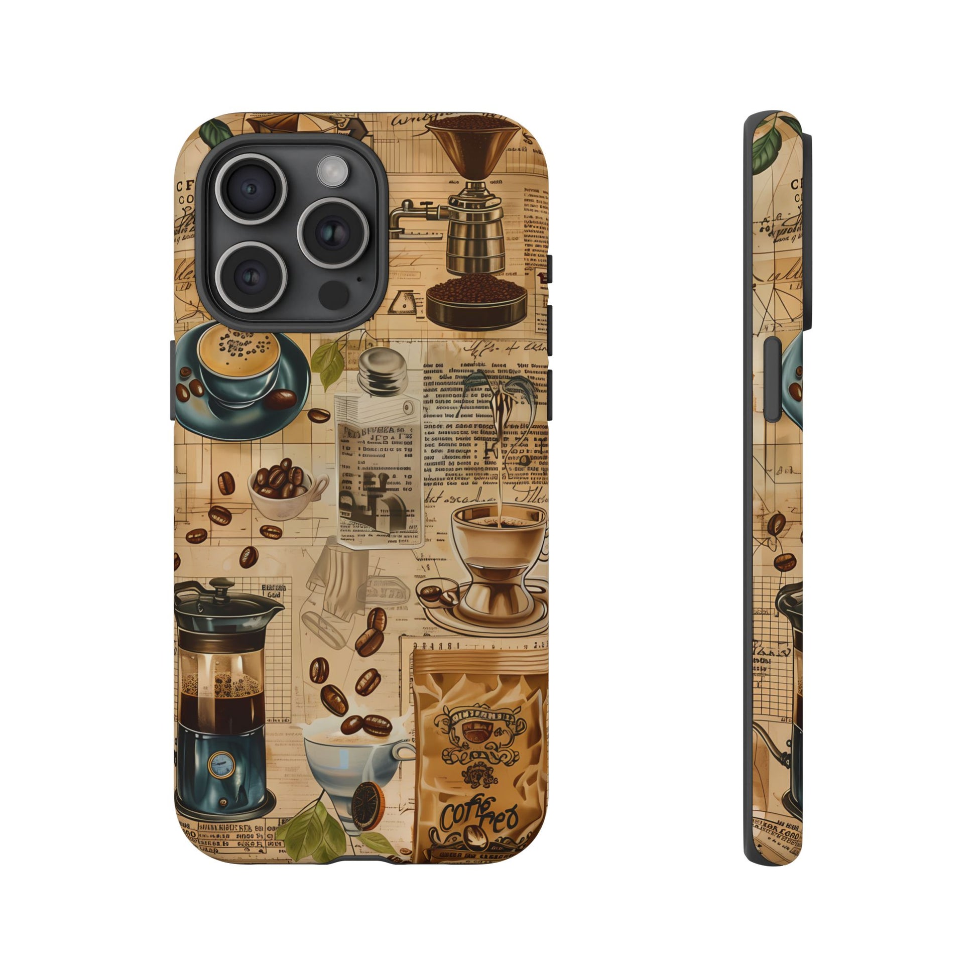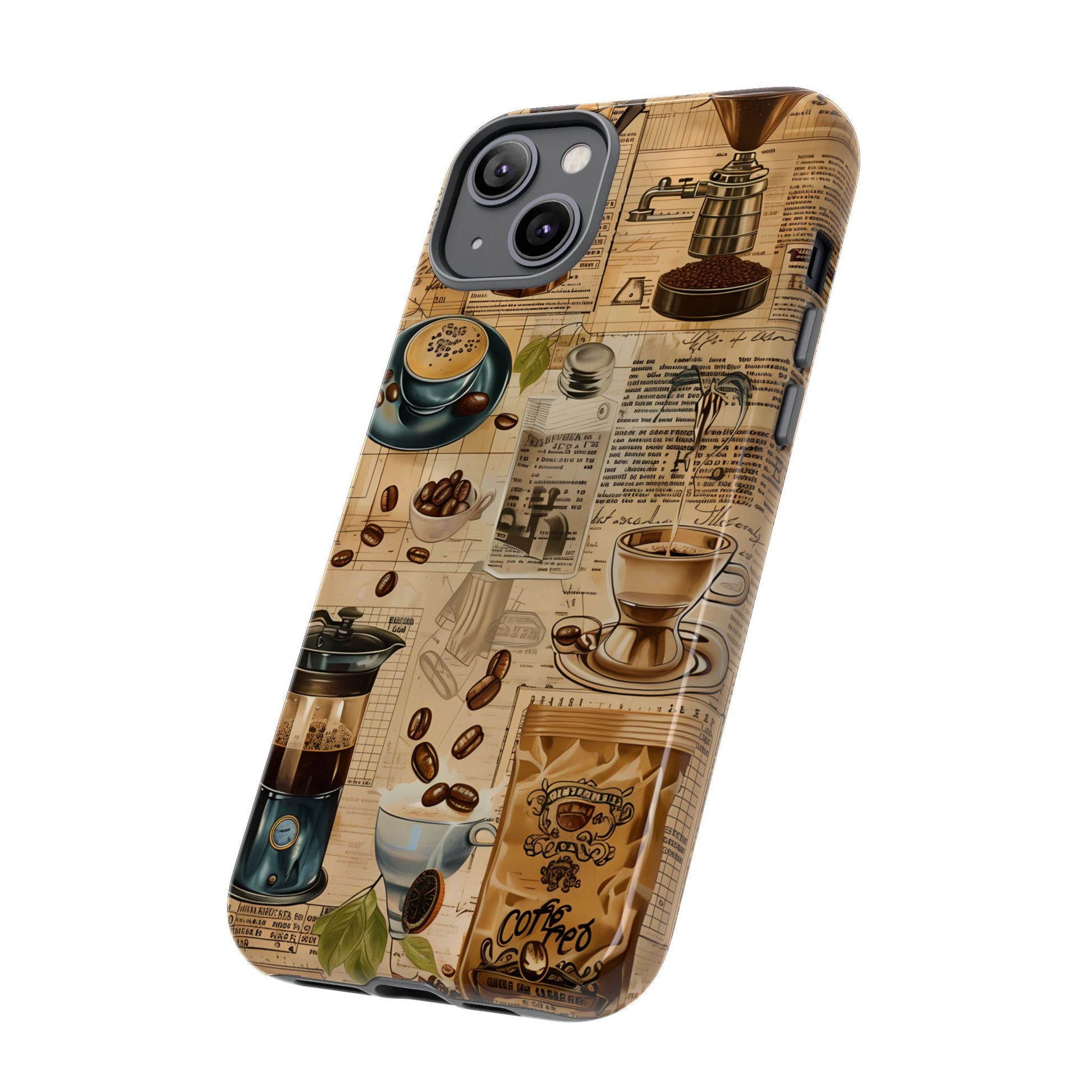 Sip on nostalgia with our Vintage Brew Café Cover. This delightful design showcases a backdrop resembling a stained coffee menu or a page from a barista's notebook, adorned with elements of classic coffee culture like faded photos of coffee shops, doodles of coffee cups, and coffee stains. Indulge in the timeless charm of retro coffee shops