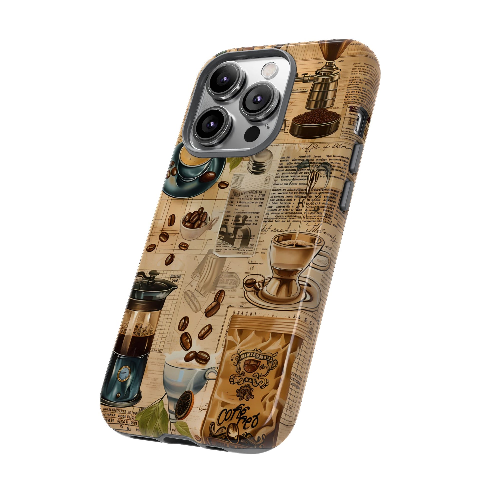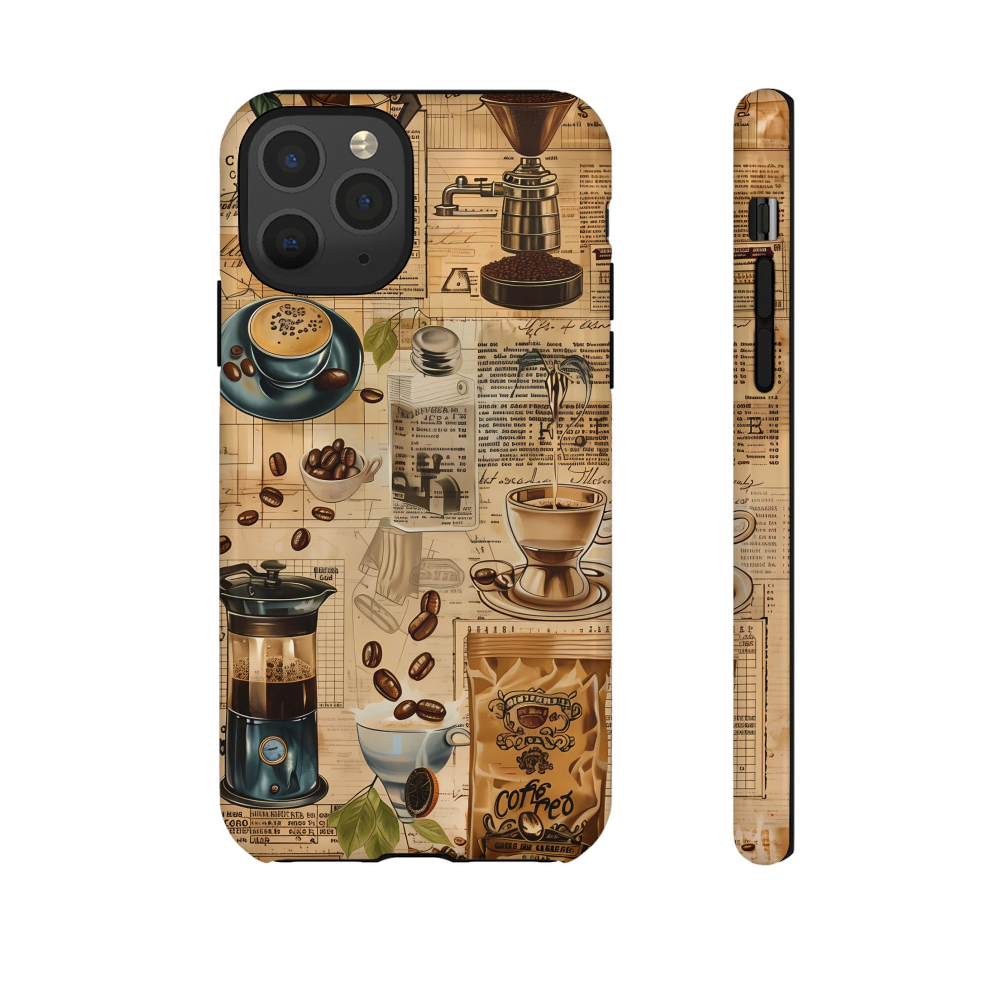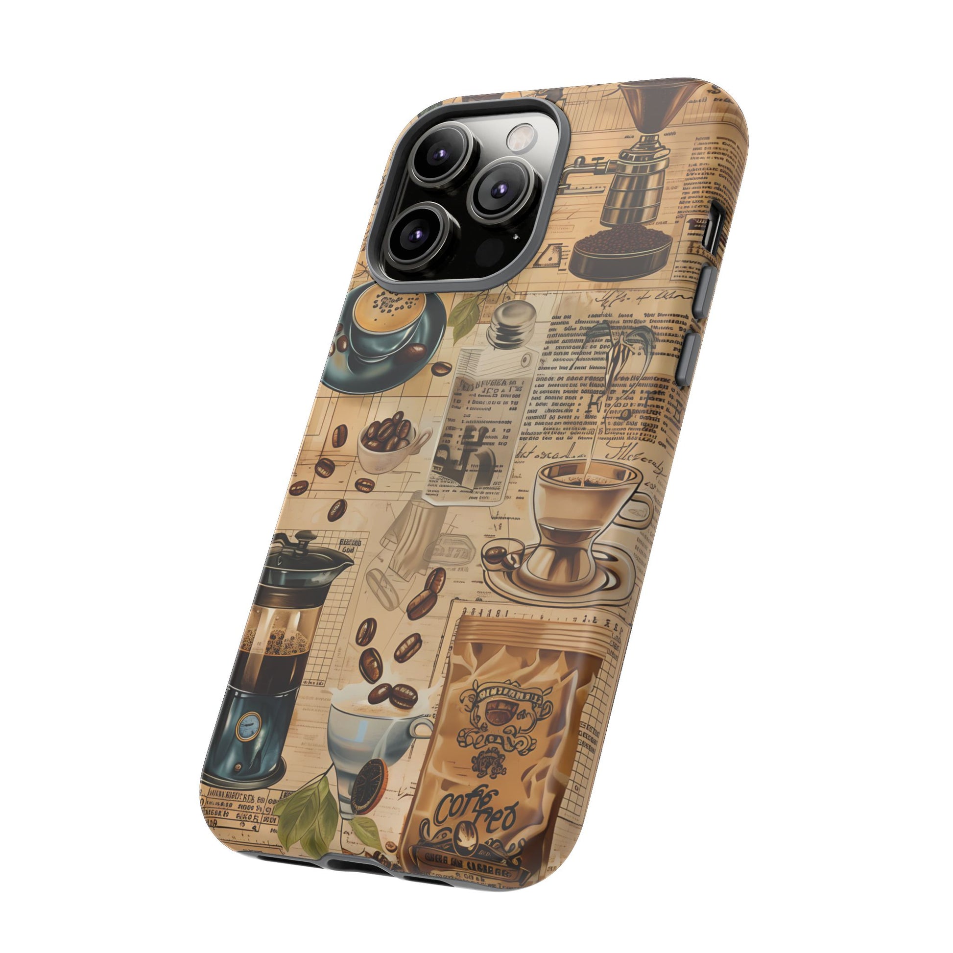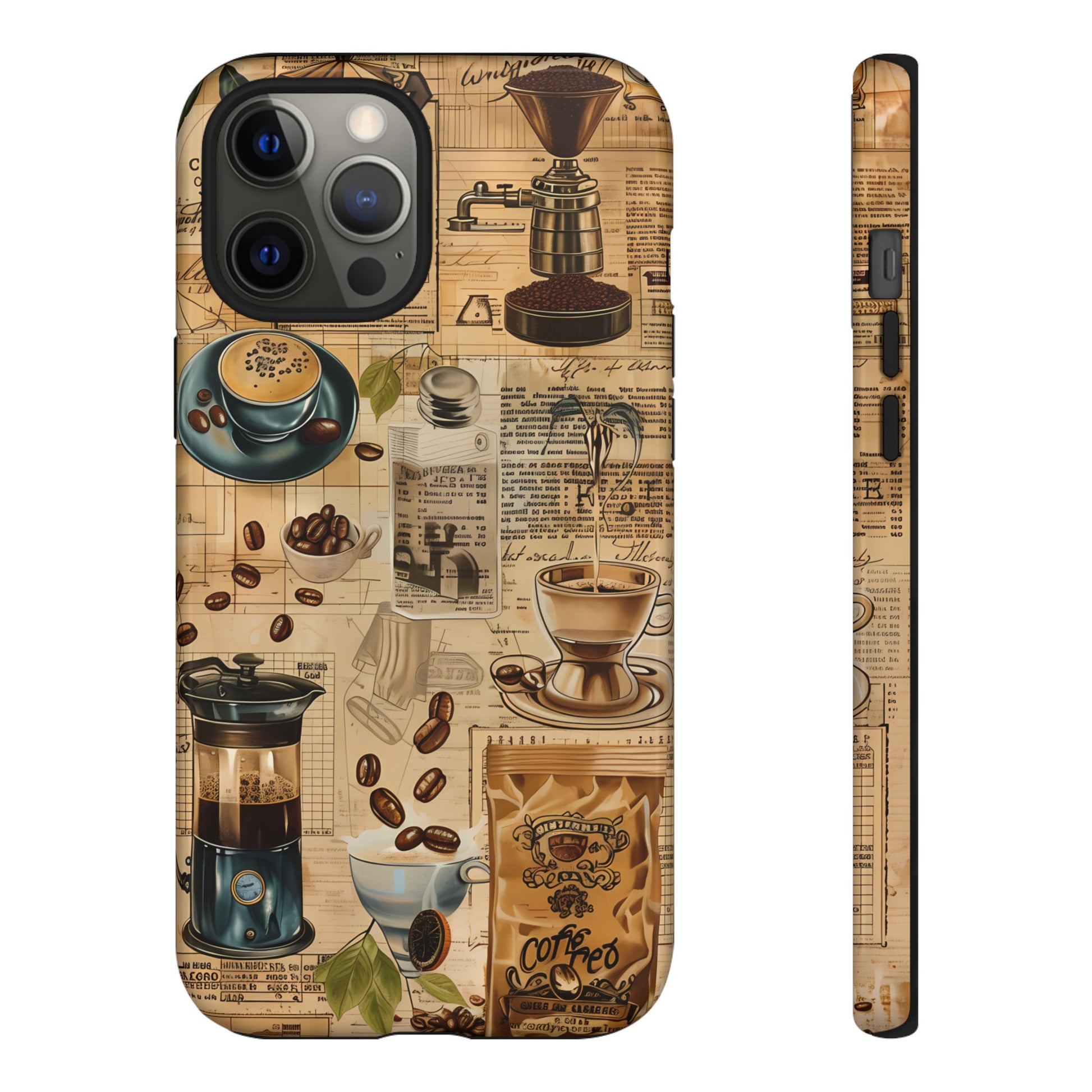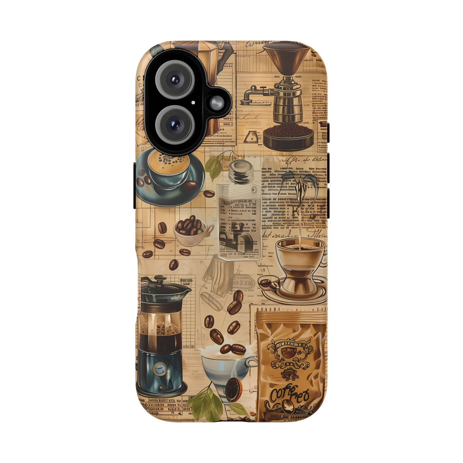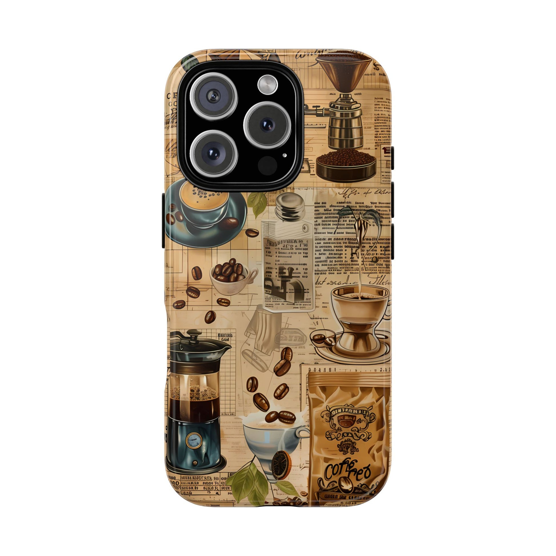 Sip on nostalgia with our Vintage Brew Café Cover. This delightful design showcases a backdrop resembling a stained coffee menu or a page from a barista's notebook, adorned with elements of classic coffee culture like faded photos of coffee shops, doodles of coffee cups, and coffee stains. Indulge in the timeless charm of retro coffee shops