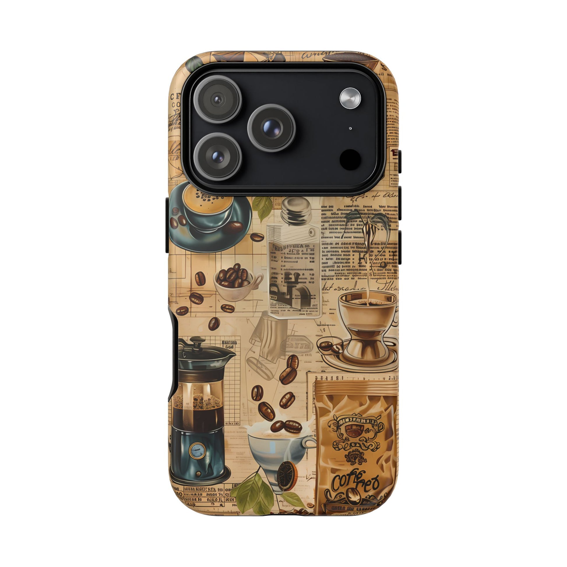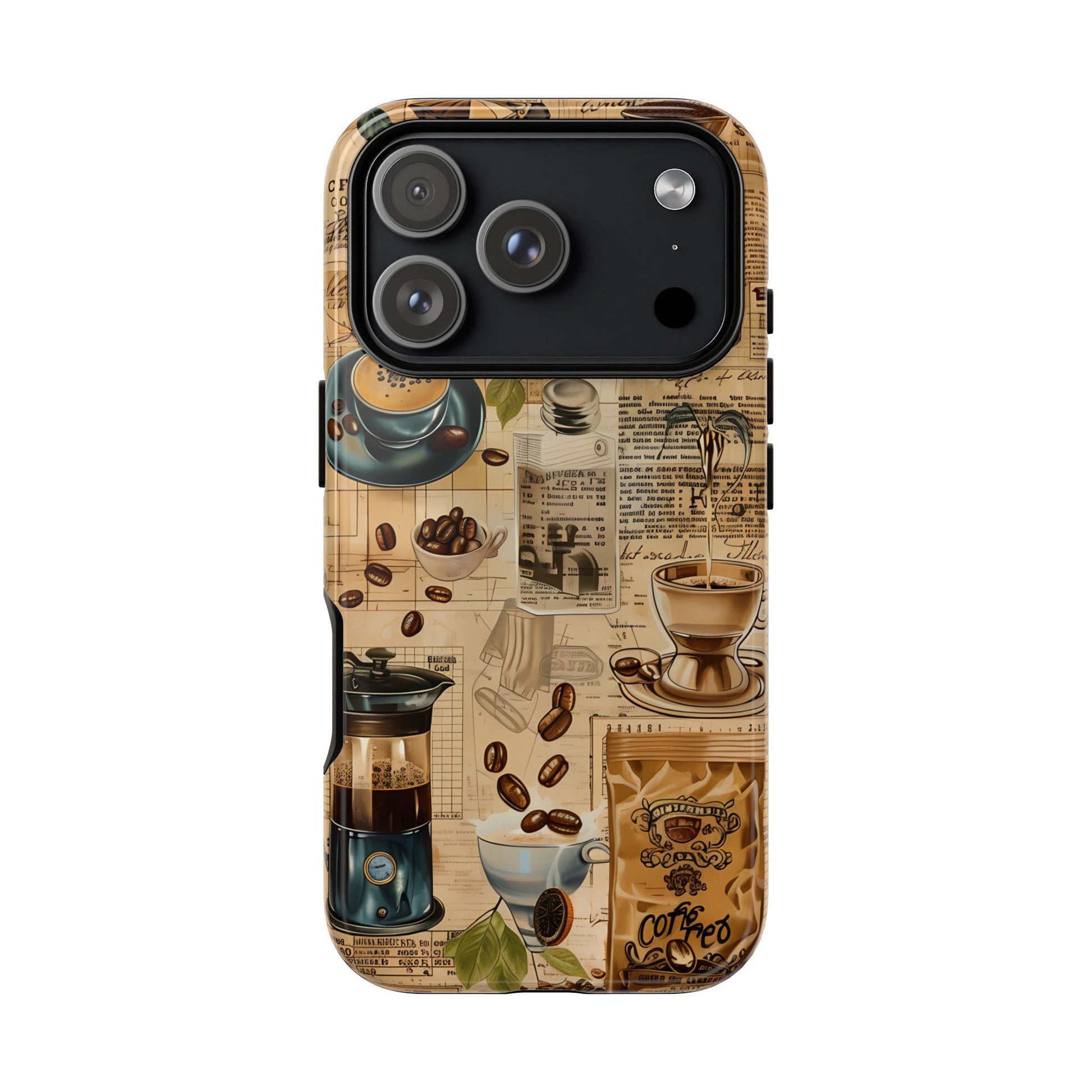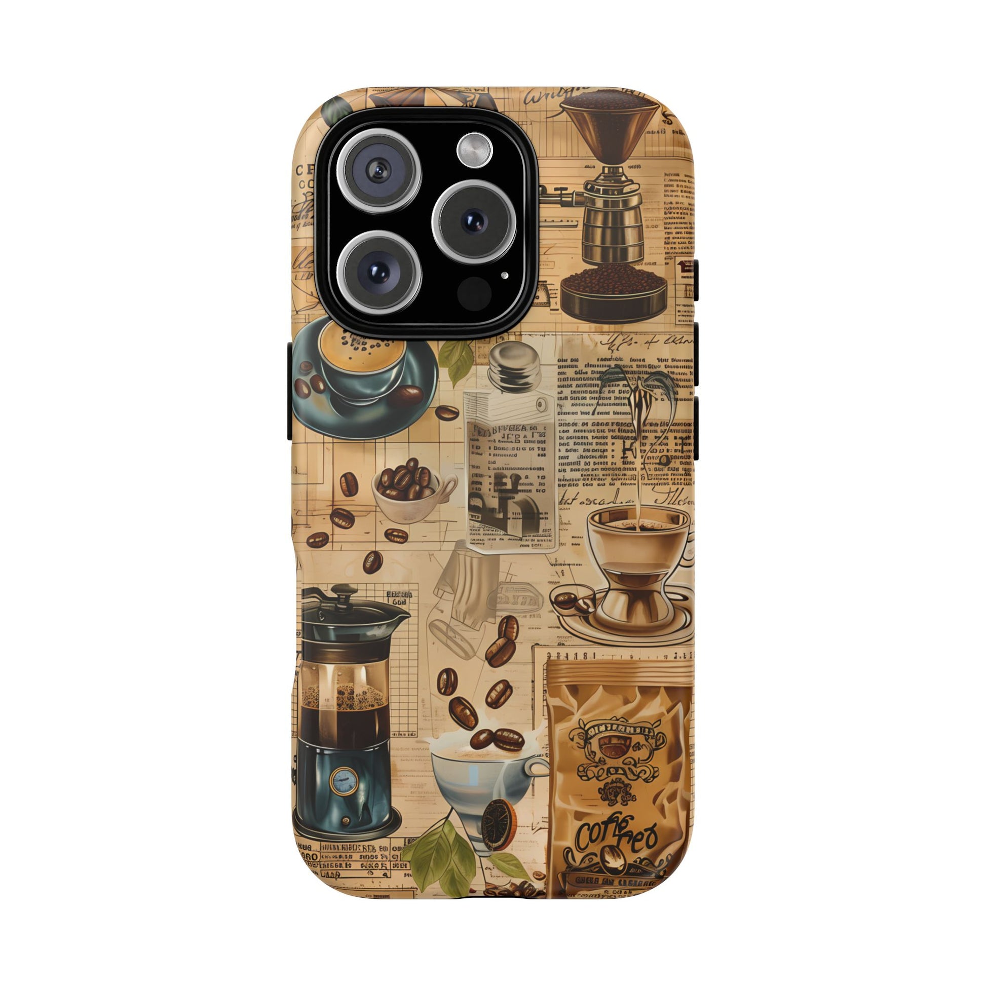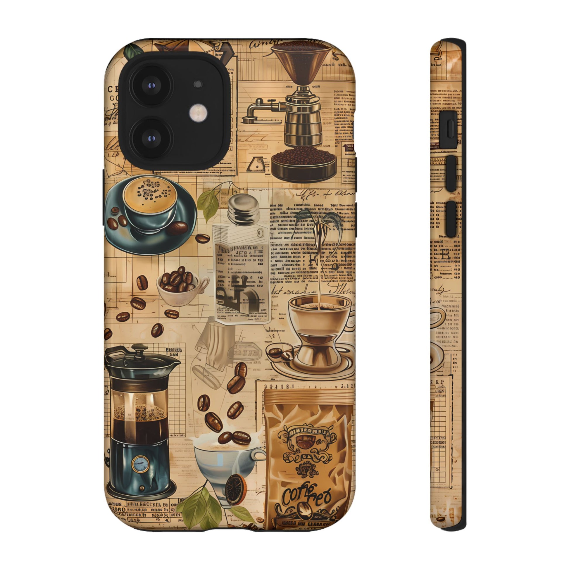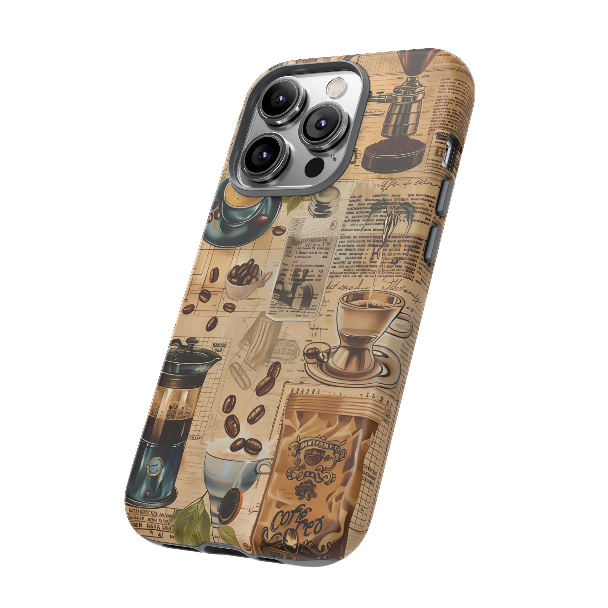 Sip on nostalgia with our Vintage Brew Café Cover. This delightful design showcases a backdrop resembling a stained coffee menu or a page from a barista's notebook, adorned with elements of classic coffee culture like faded photos of coffee shops, doodles of coffee cups, and coffee stains. Indulge in the timeless charm of retro coffee shops