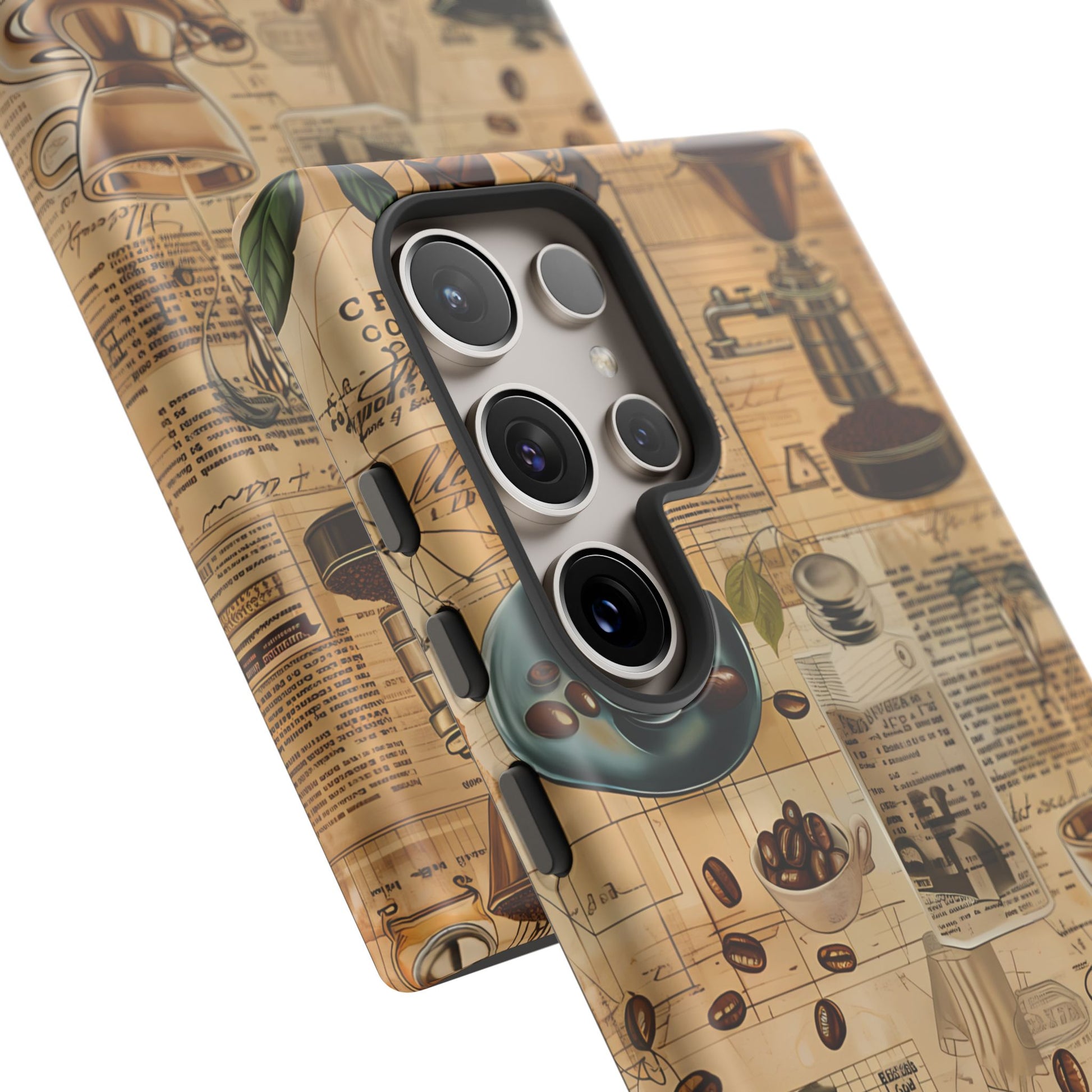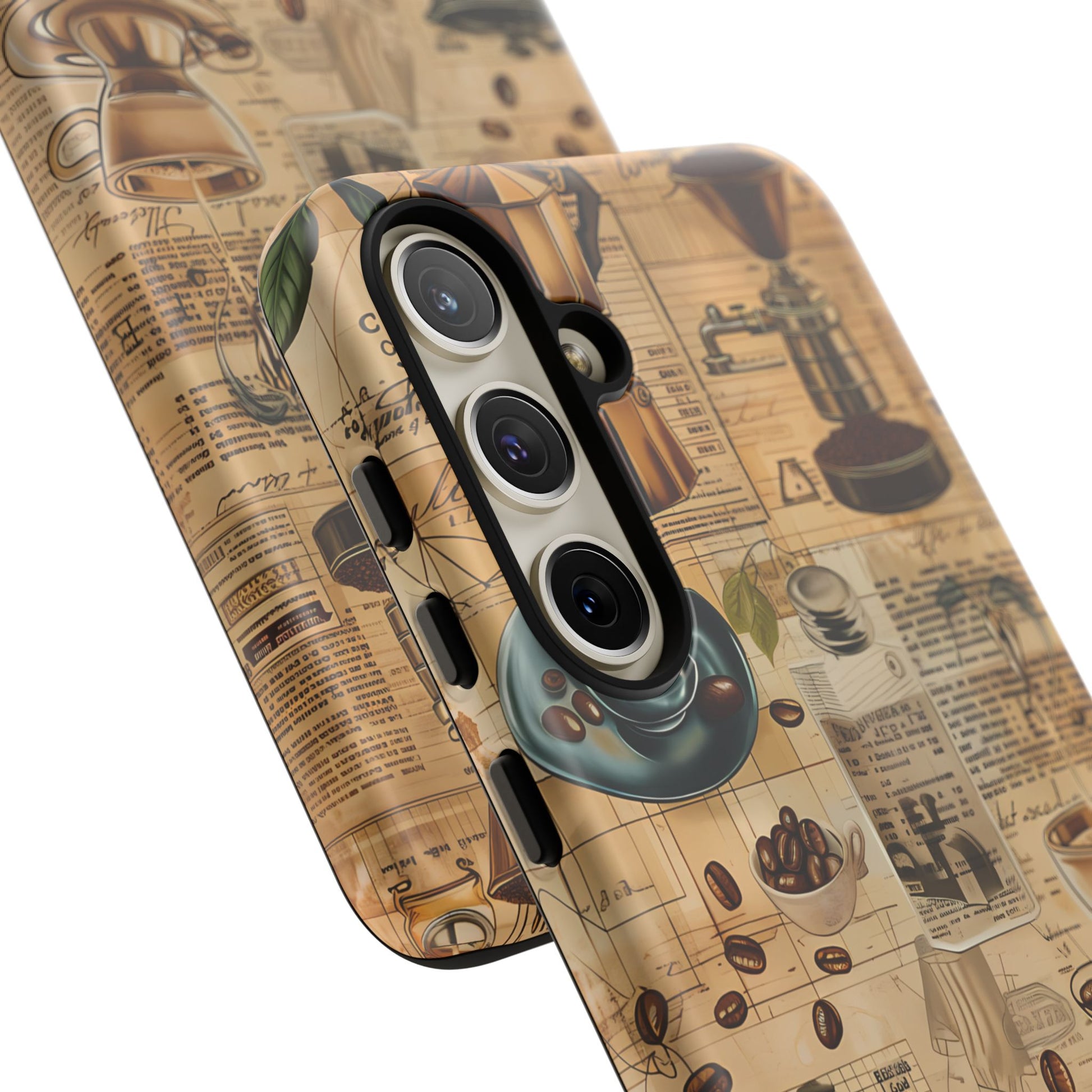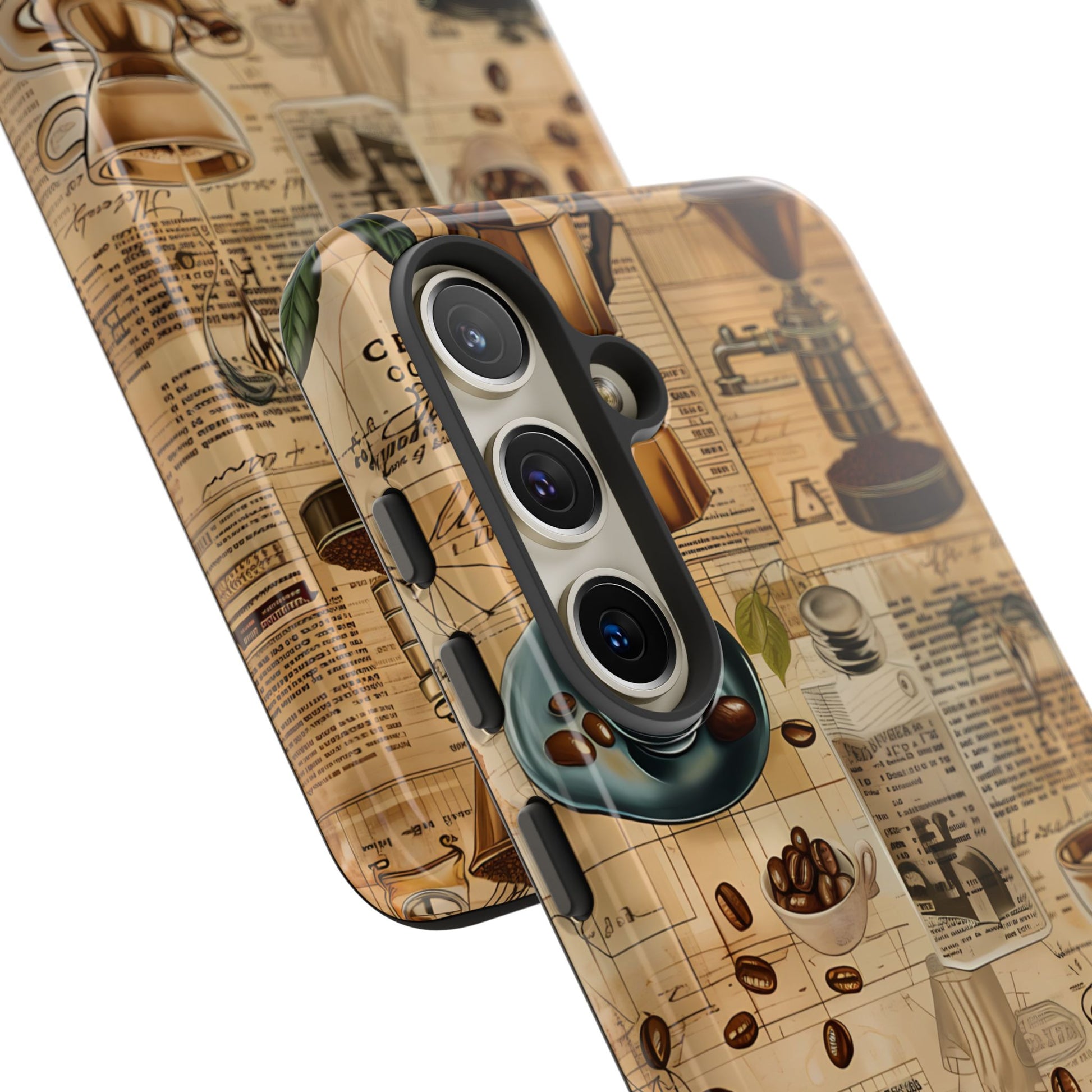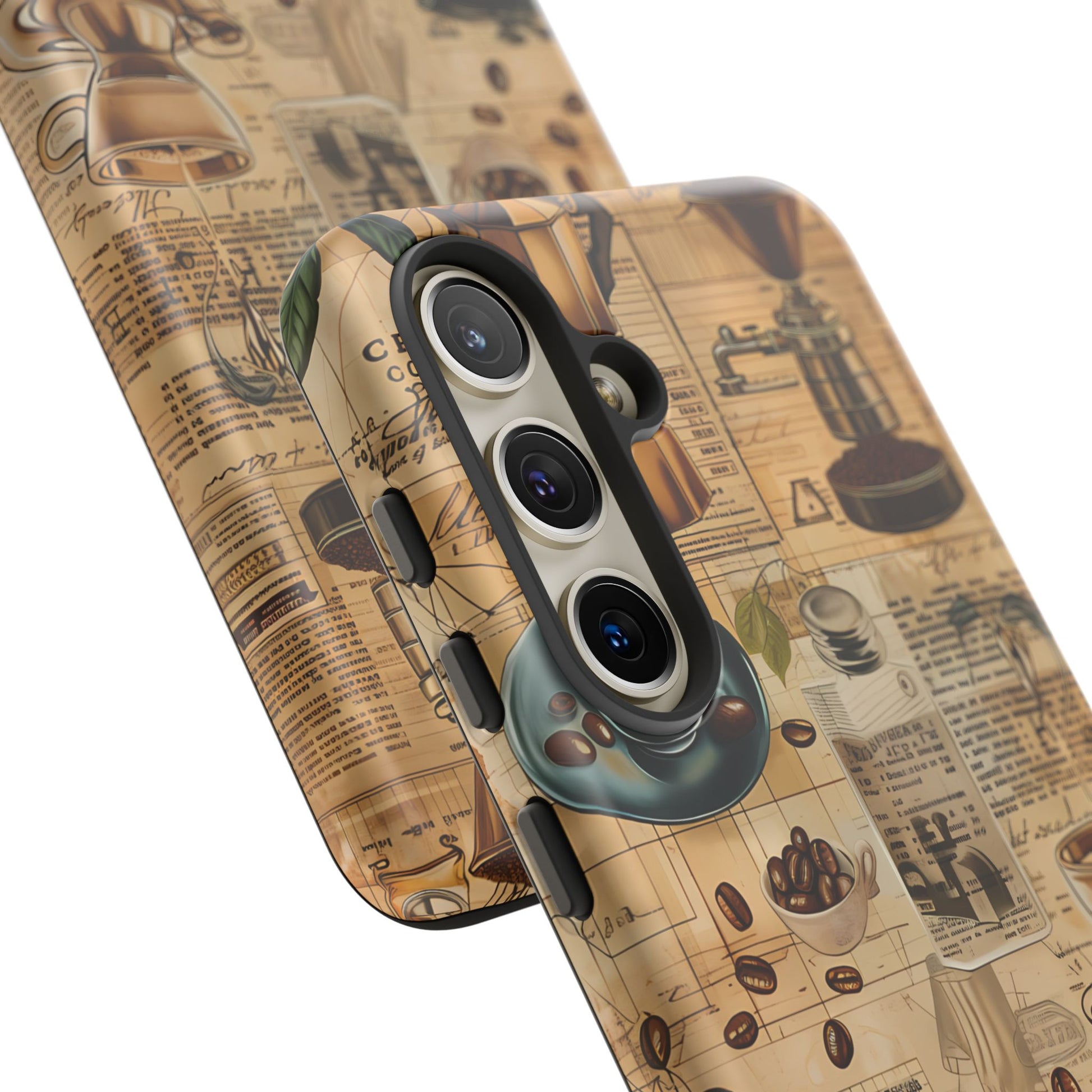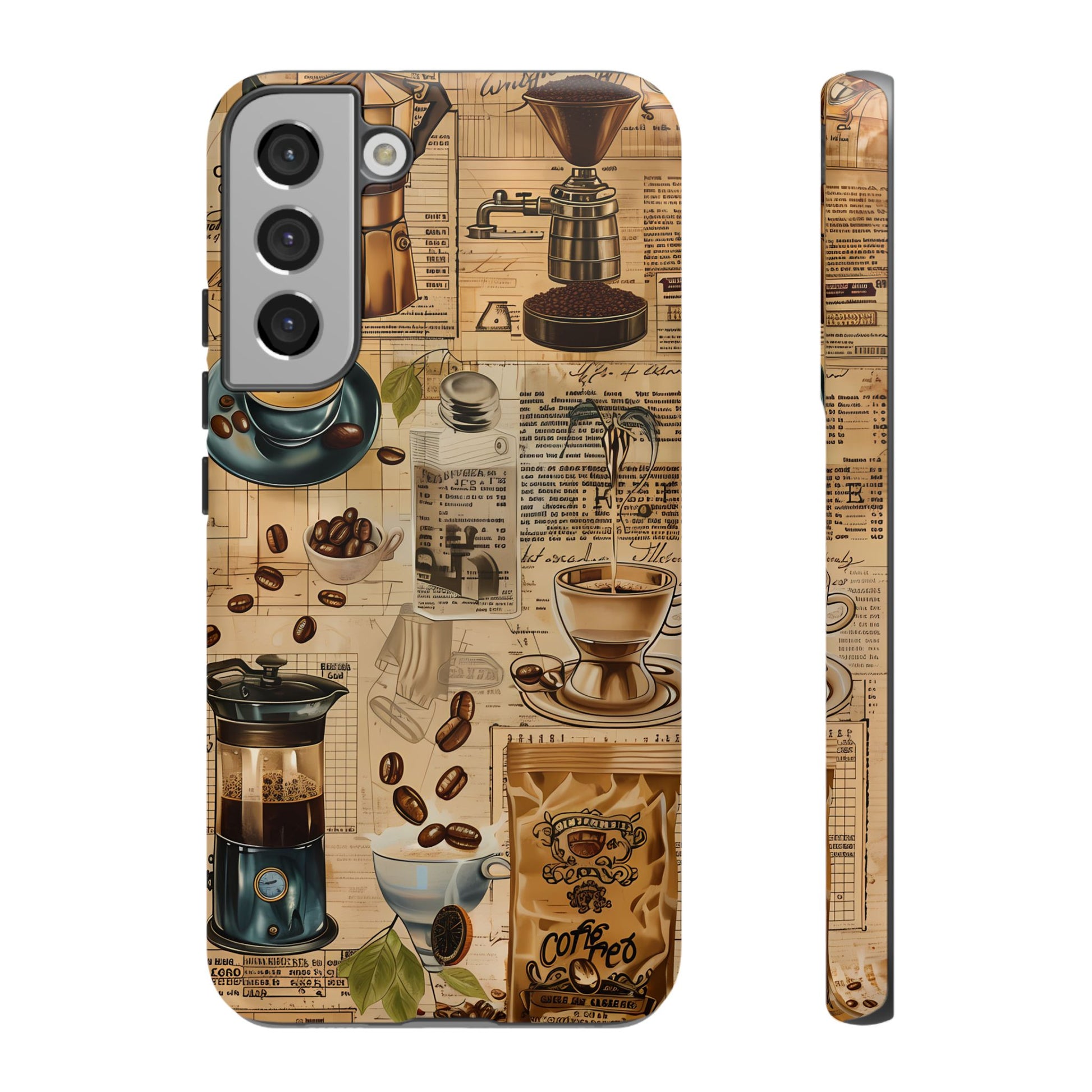 Sip on nostalgia with our Vintage Brew Café Cover. This delightful design showcases a backdrop resembling a stained coffee menu or a page from a barista's notebook, adorned with elements of classic coffee culture like faded photos of coffee shops, doodles of coffee cups, and coffee stains. Indulge in the timeless charm of retro coffee shops