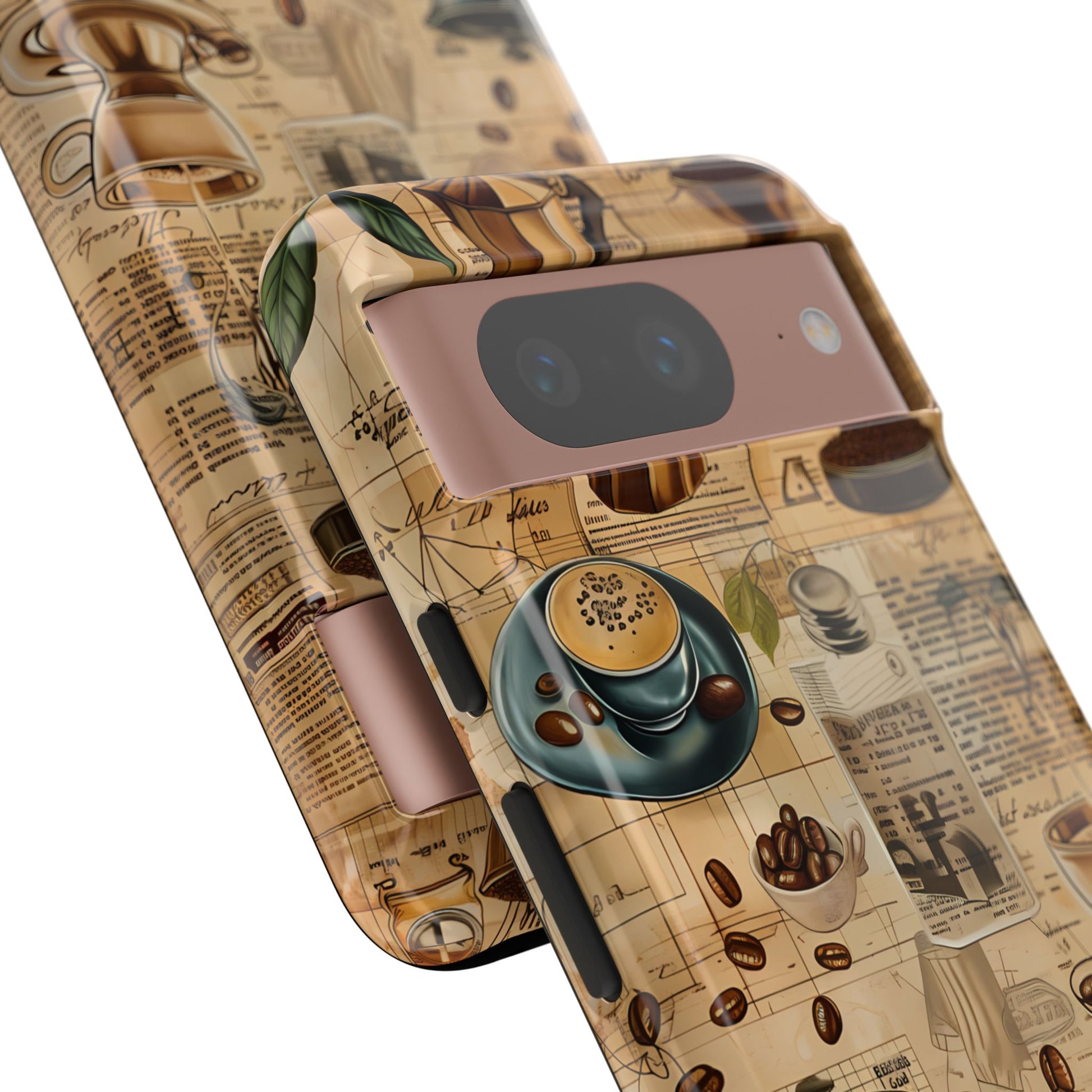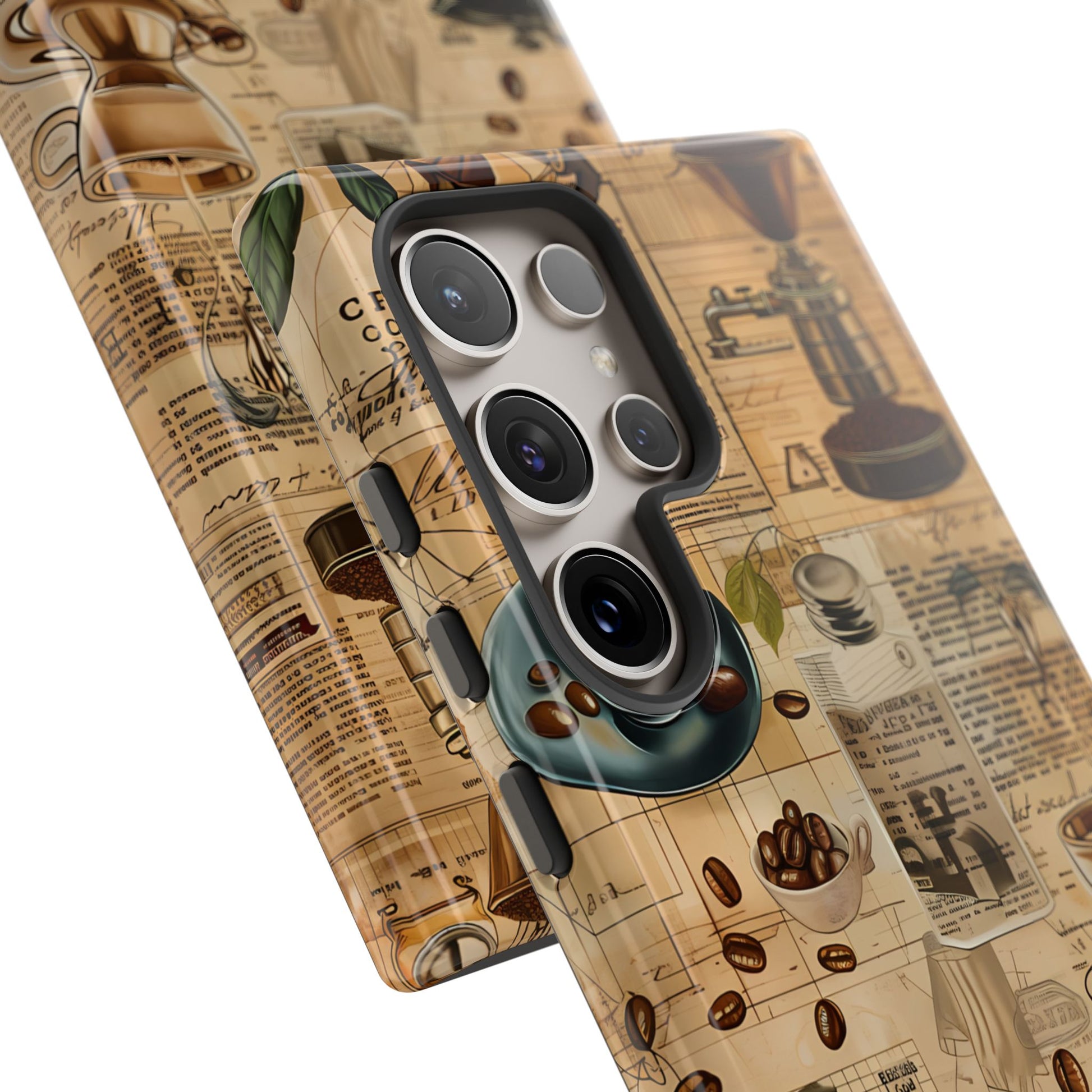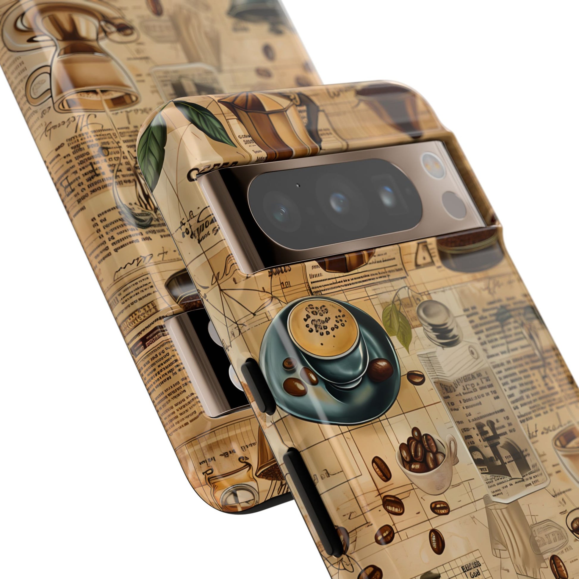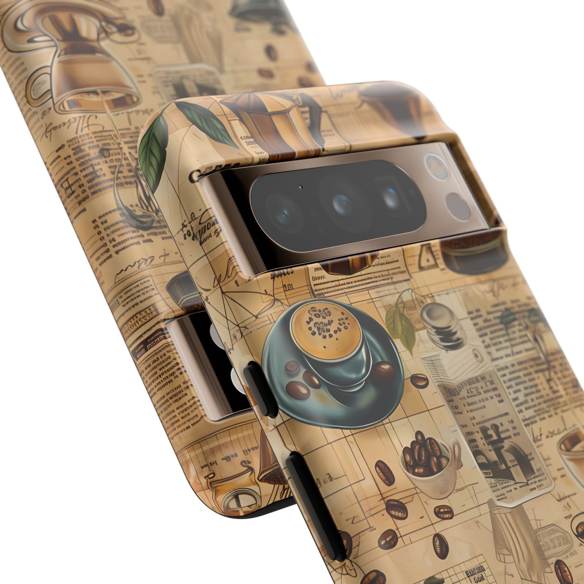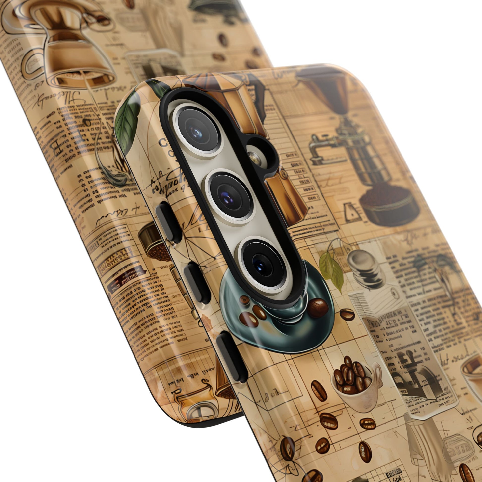Sip on nostalgia with our Vintage Brew Café Cover. This delightful design showcases a backdrop resembling a stained coffee menu or a page from a barista's notebook, adorned with elements of classic coffee culture like faded photos of coffee shops, doodles of coffee cups, and coffee stains. Indulge in the timeless charm of retro coffee shops