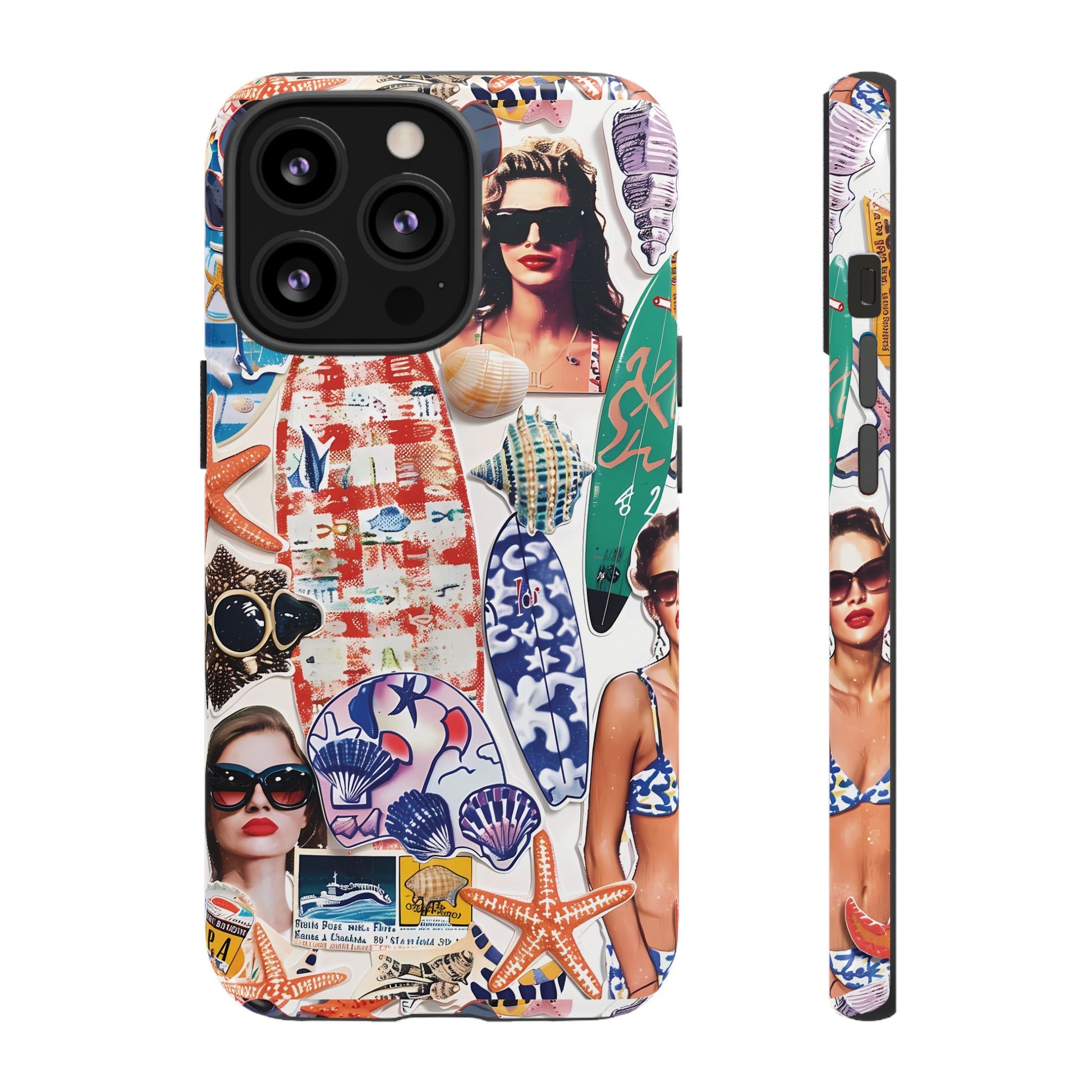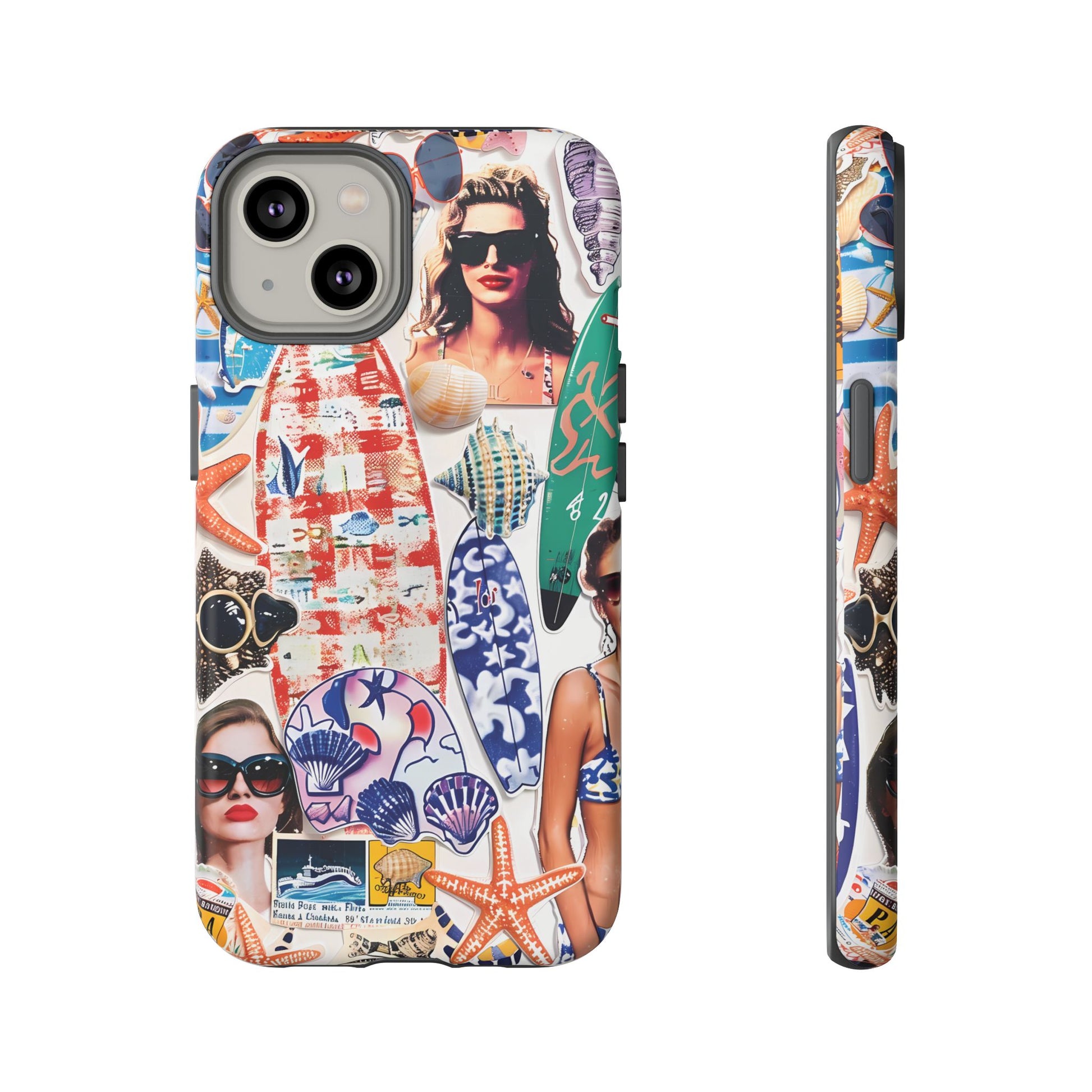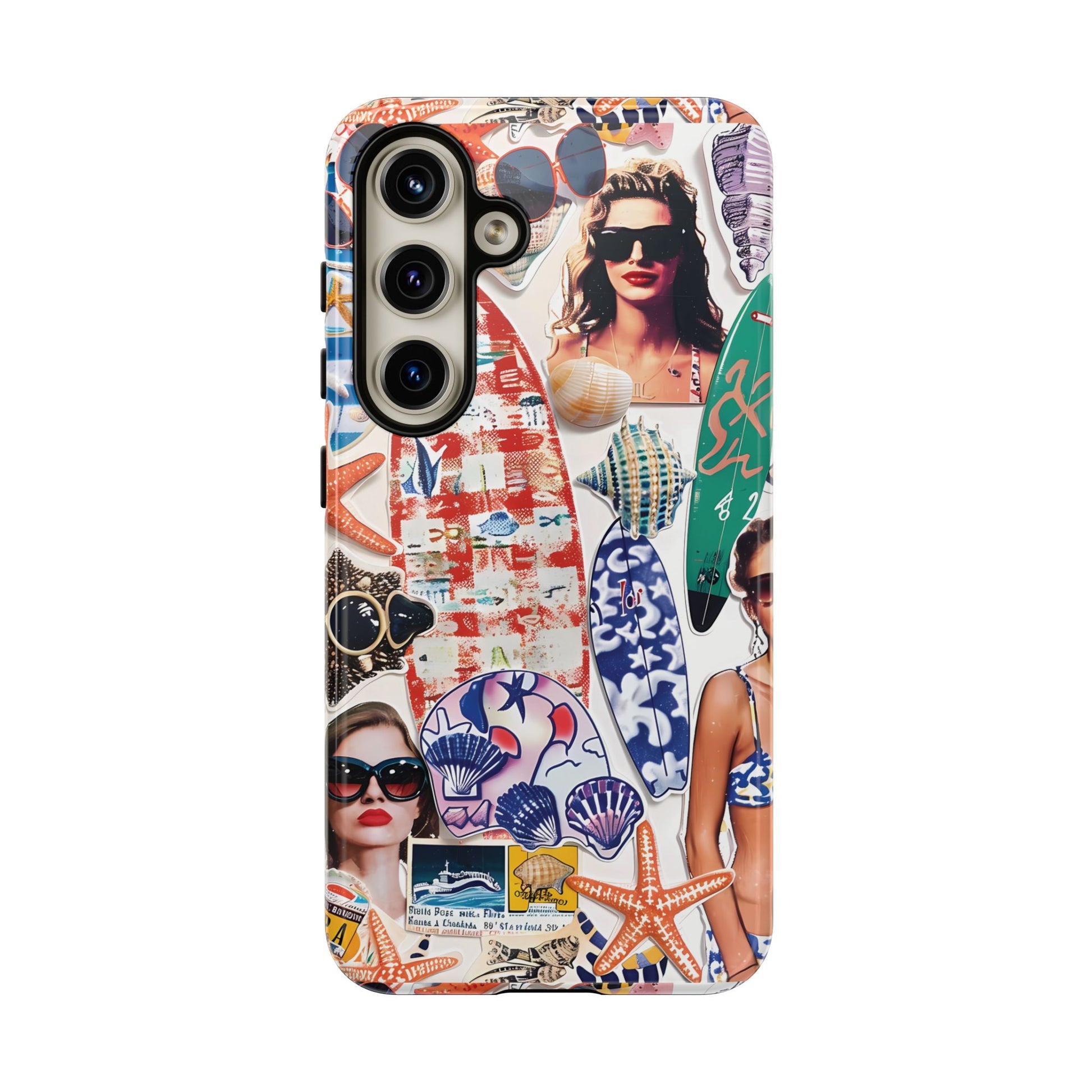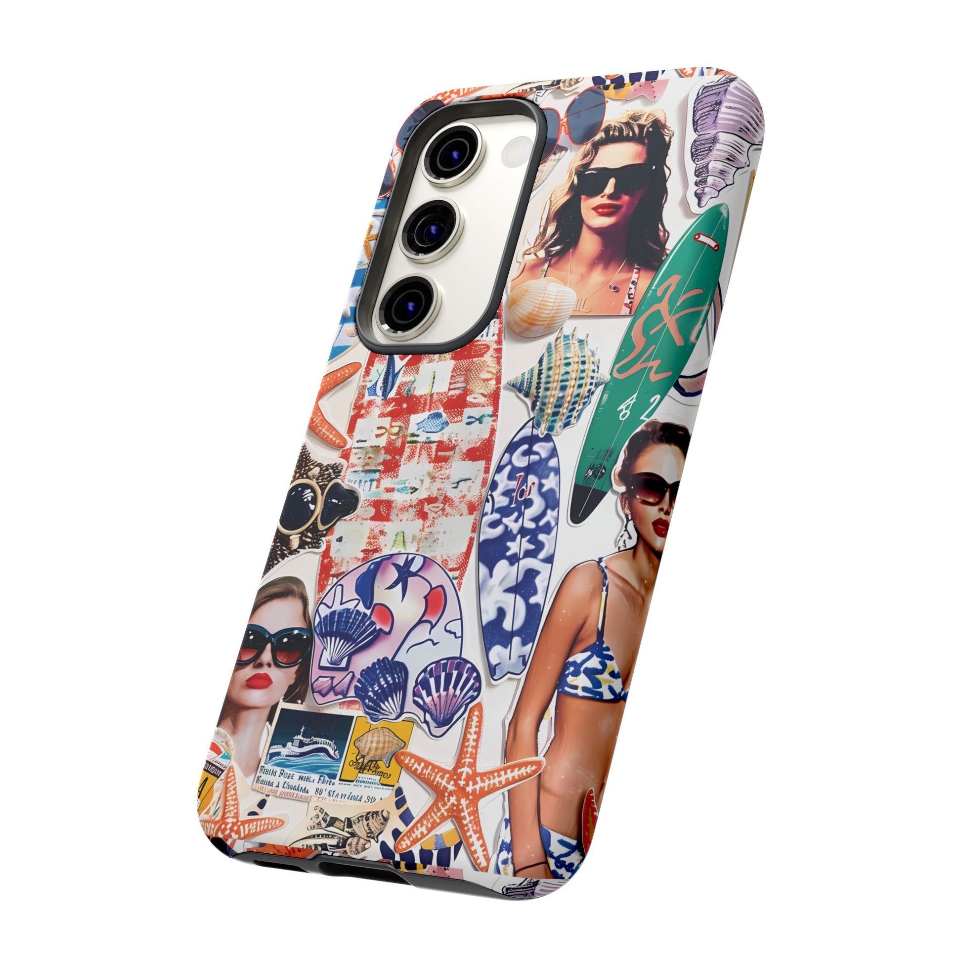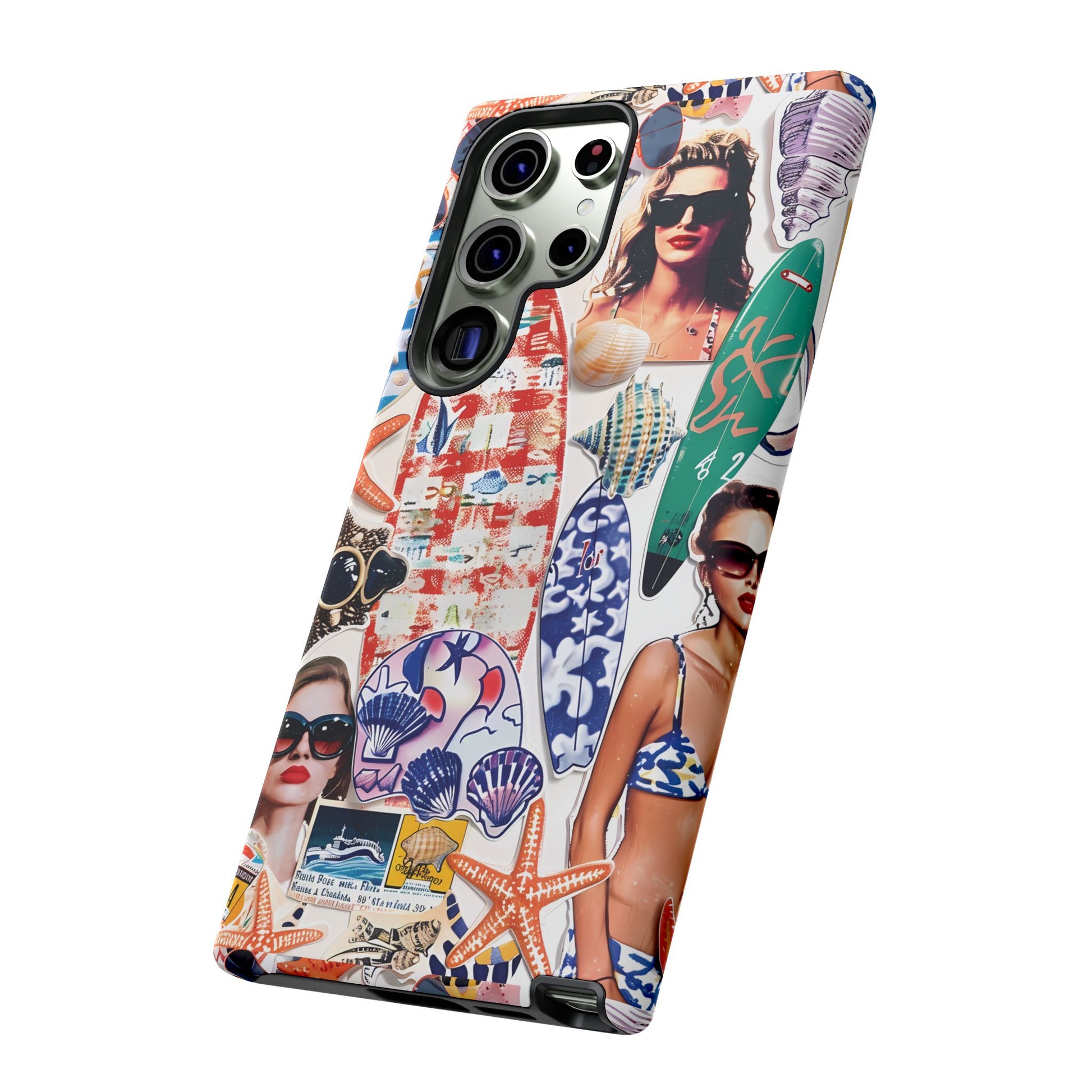 Escape to a bygone era of leisure and luxury with our Vintage Vacation Cover. This captivating collage celebrates the golden age of retro island vacations, featuring vintage images of surfboards, starfish, and sun-kissed beaches. Take a trip down memory lane and let your phone be your passport to paradise