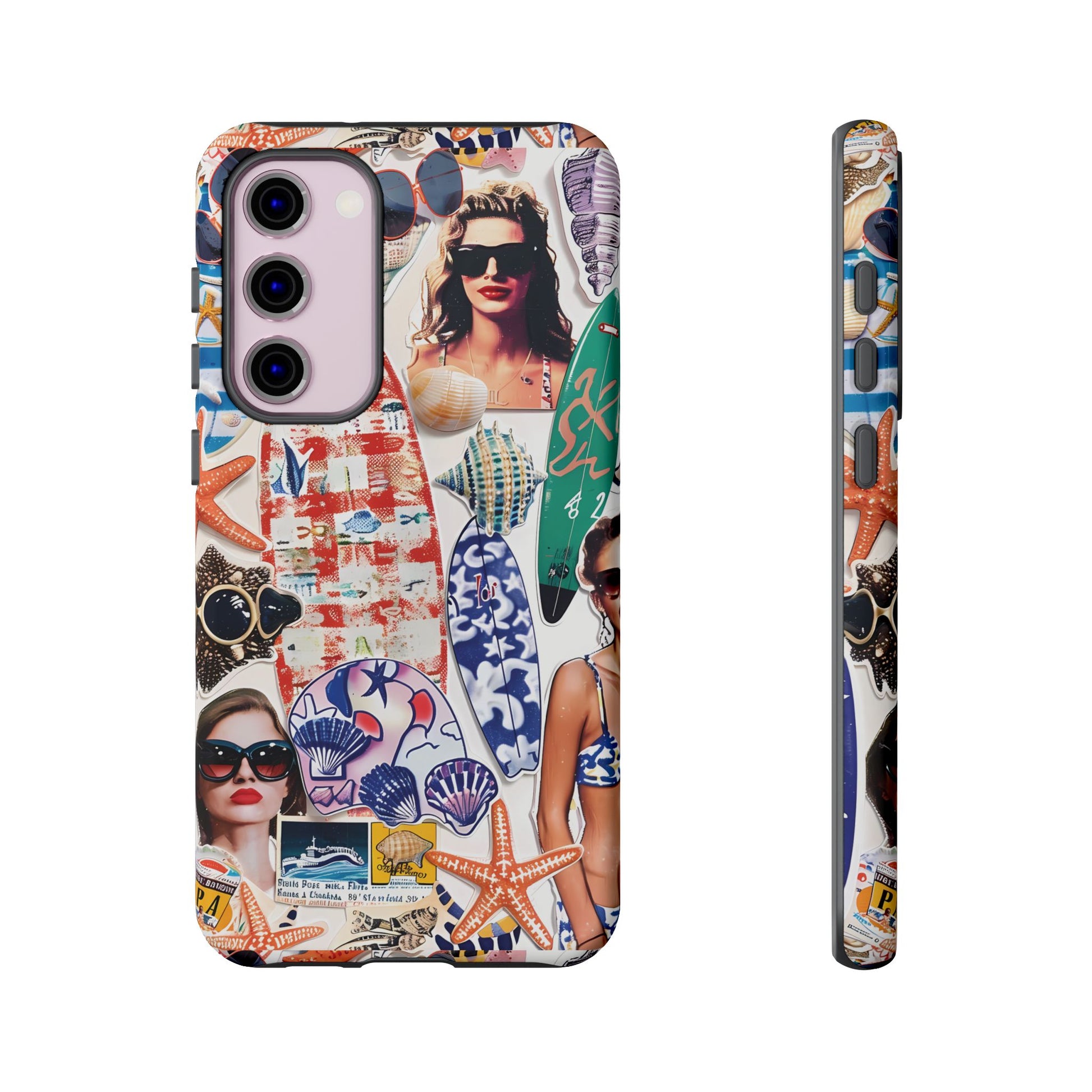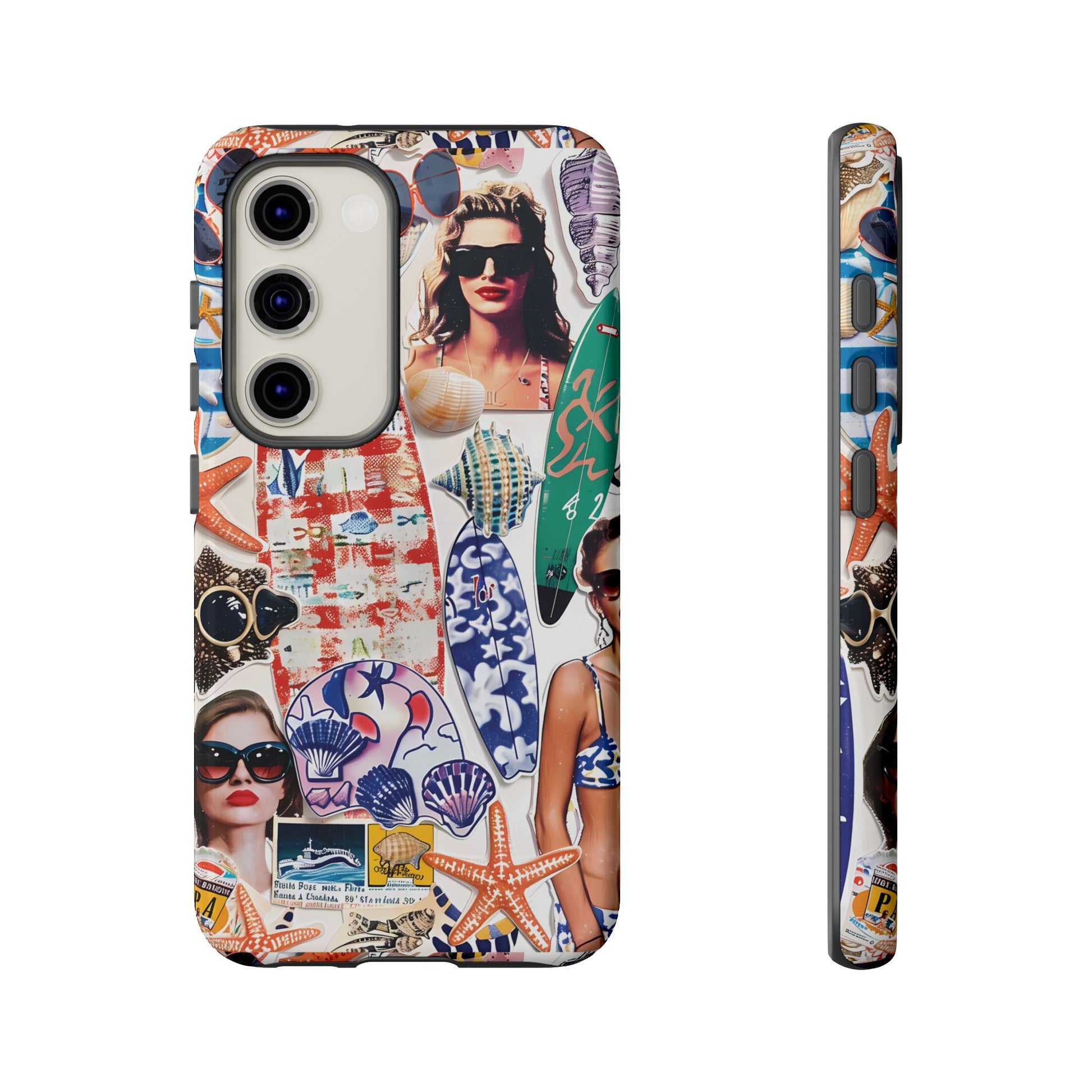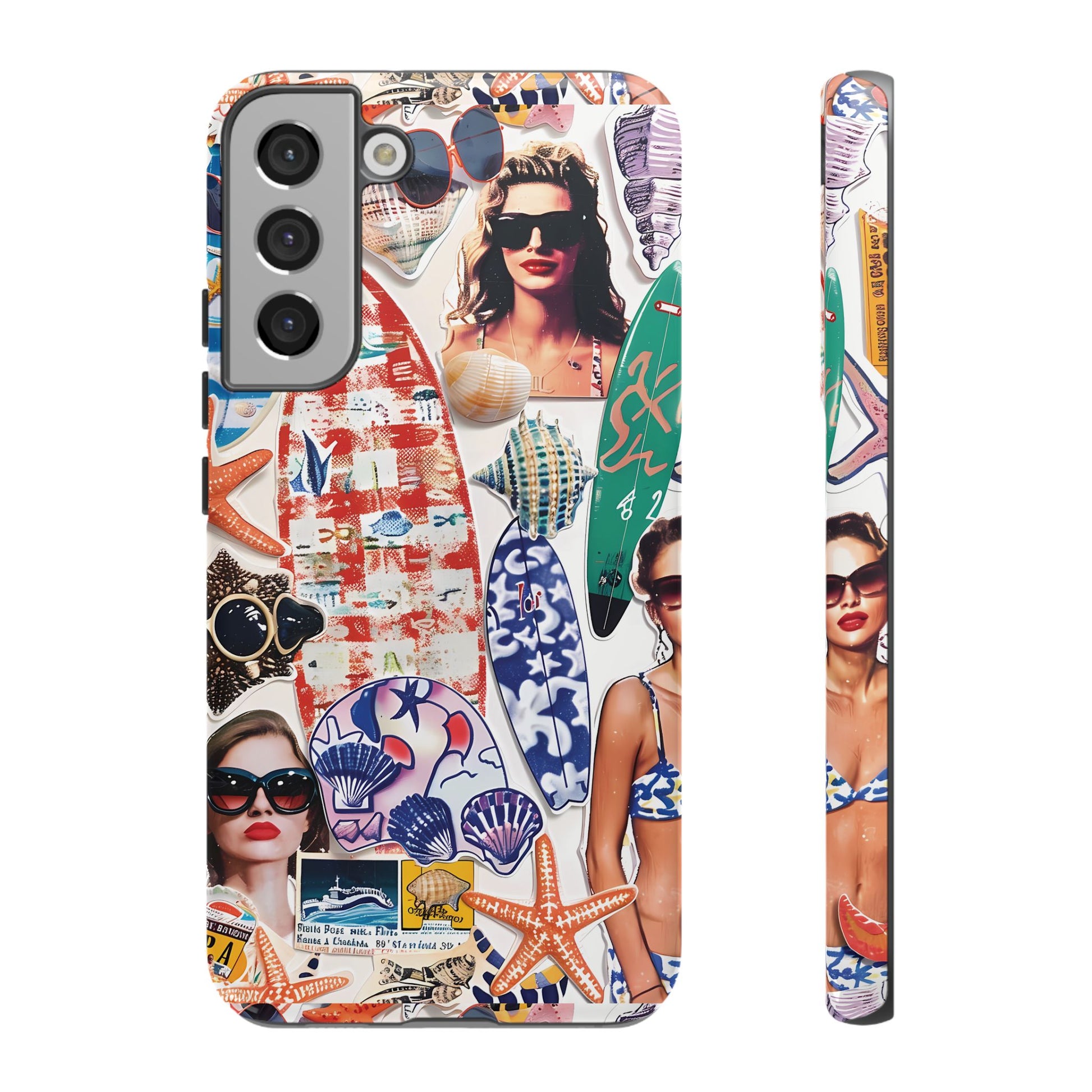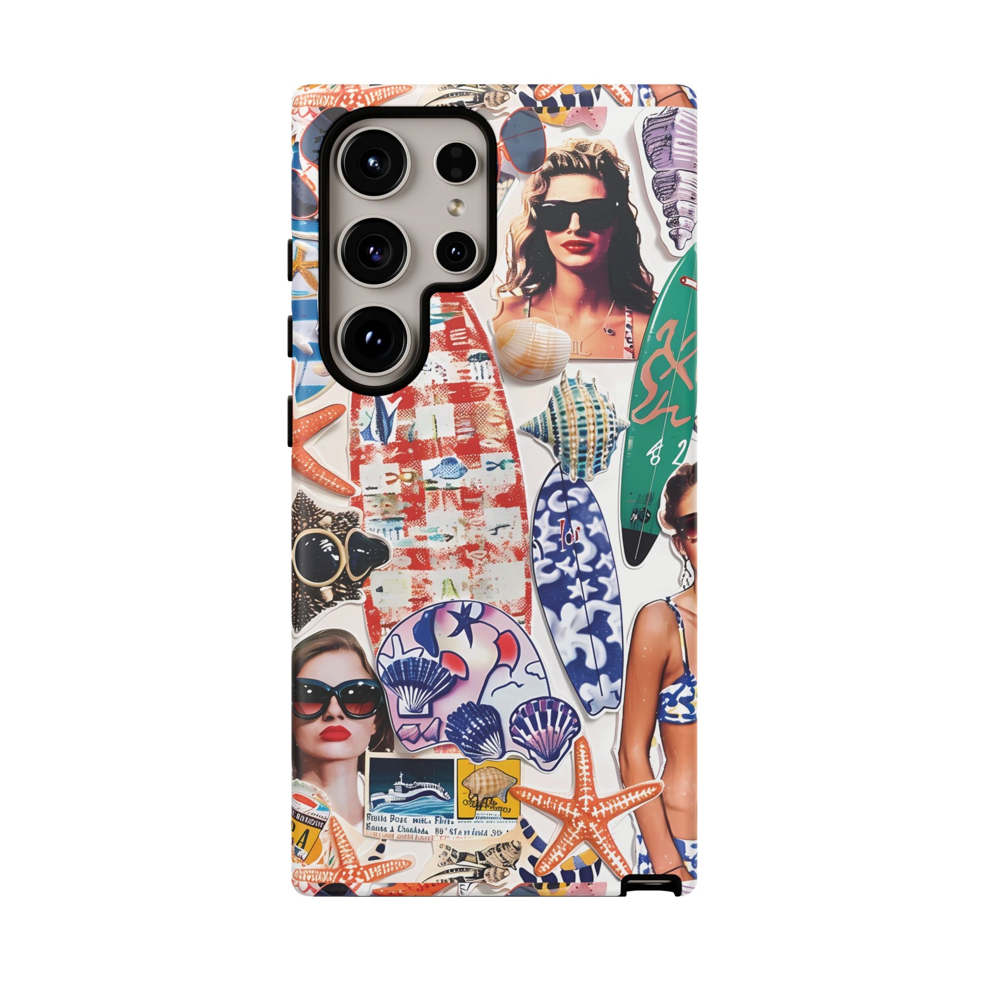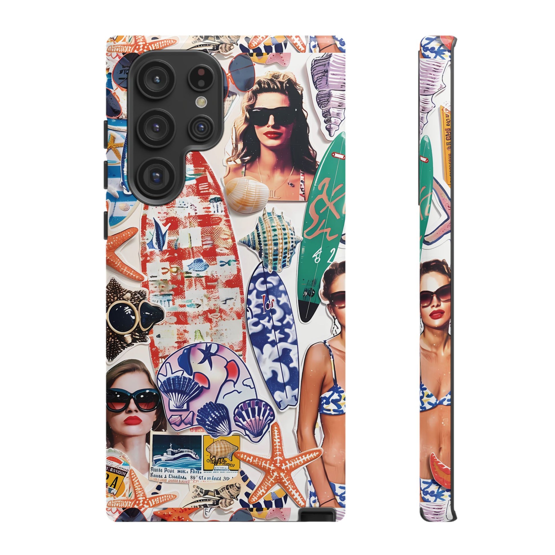 Escape to a bygone era of leisure and luxury with our Vintage Vacation Cover. This captivating collage celebrates the golden age of retro island vacations, featuring vintage images of surfboards, starfish, and sun-kissed beaches. Take a trip down memory lane and let your phone be your passport to paradise