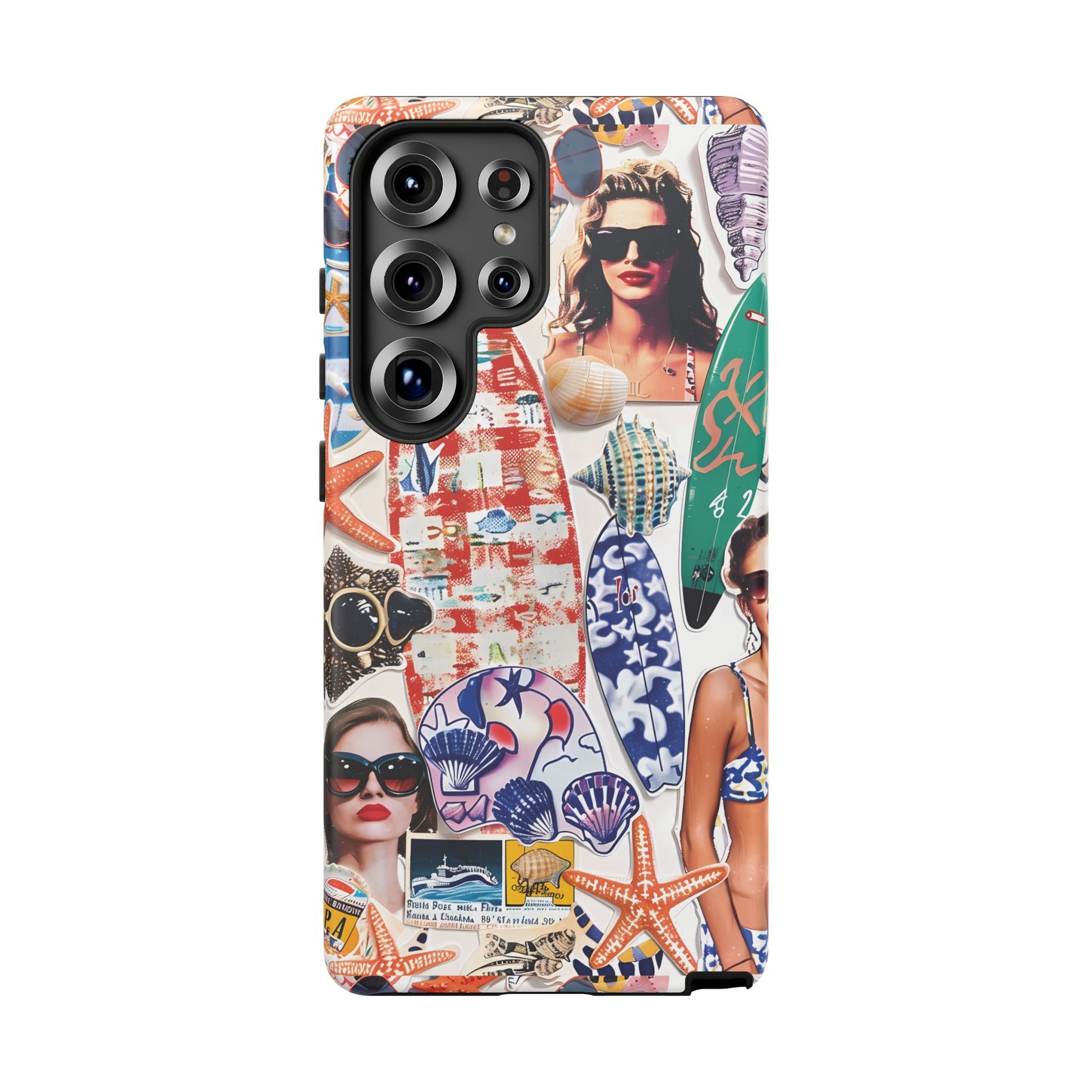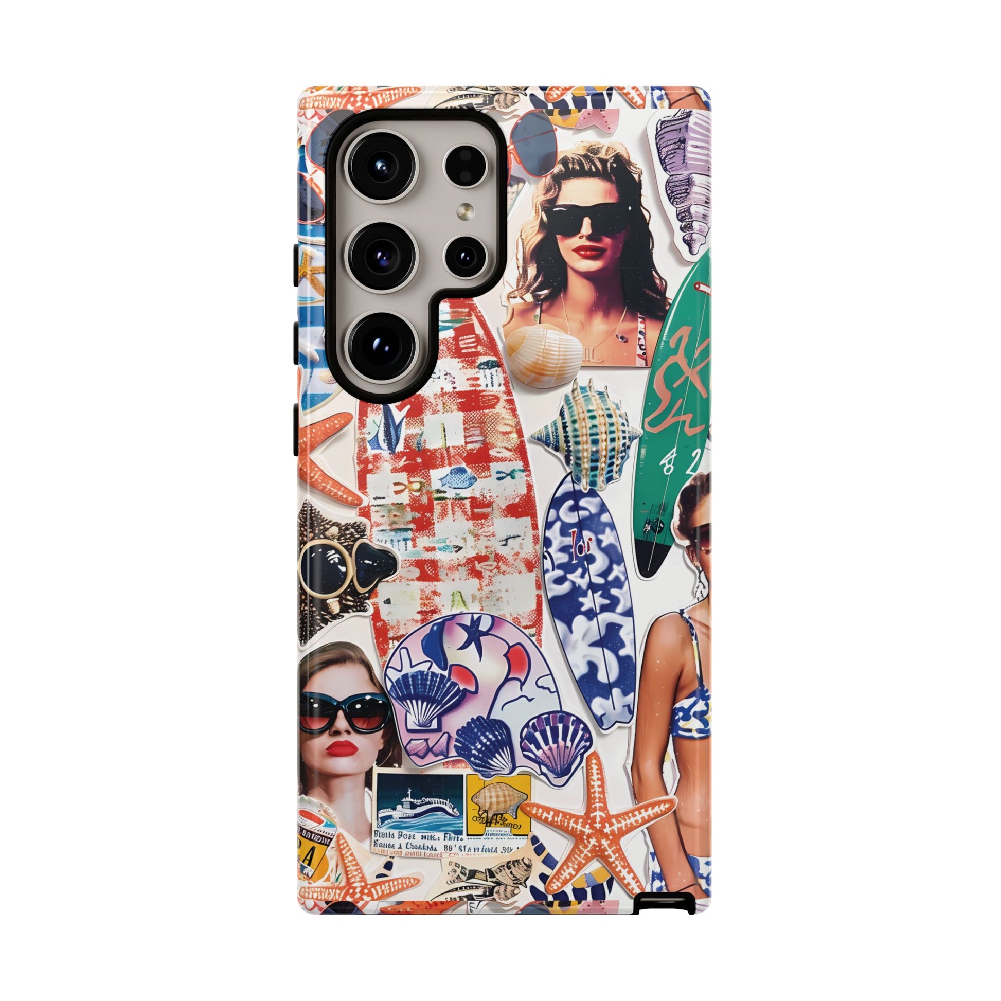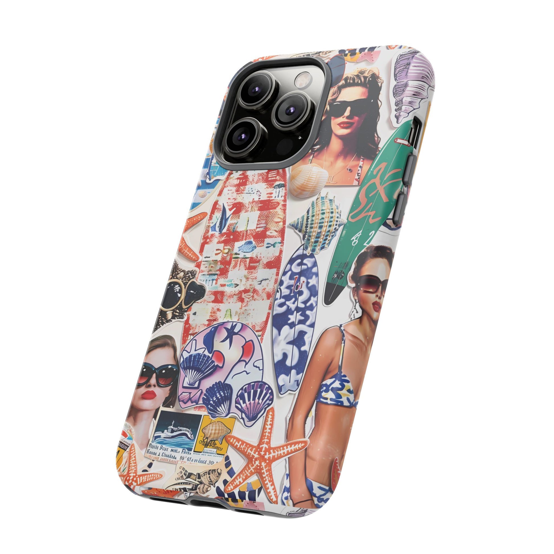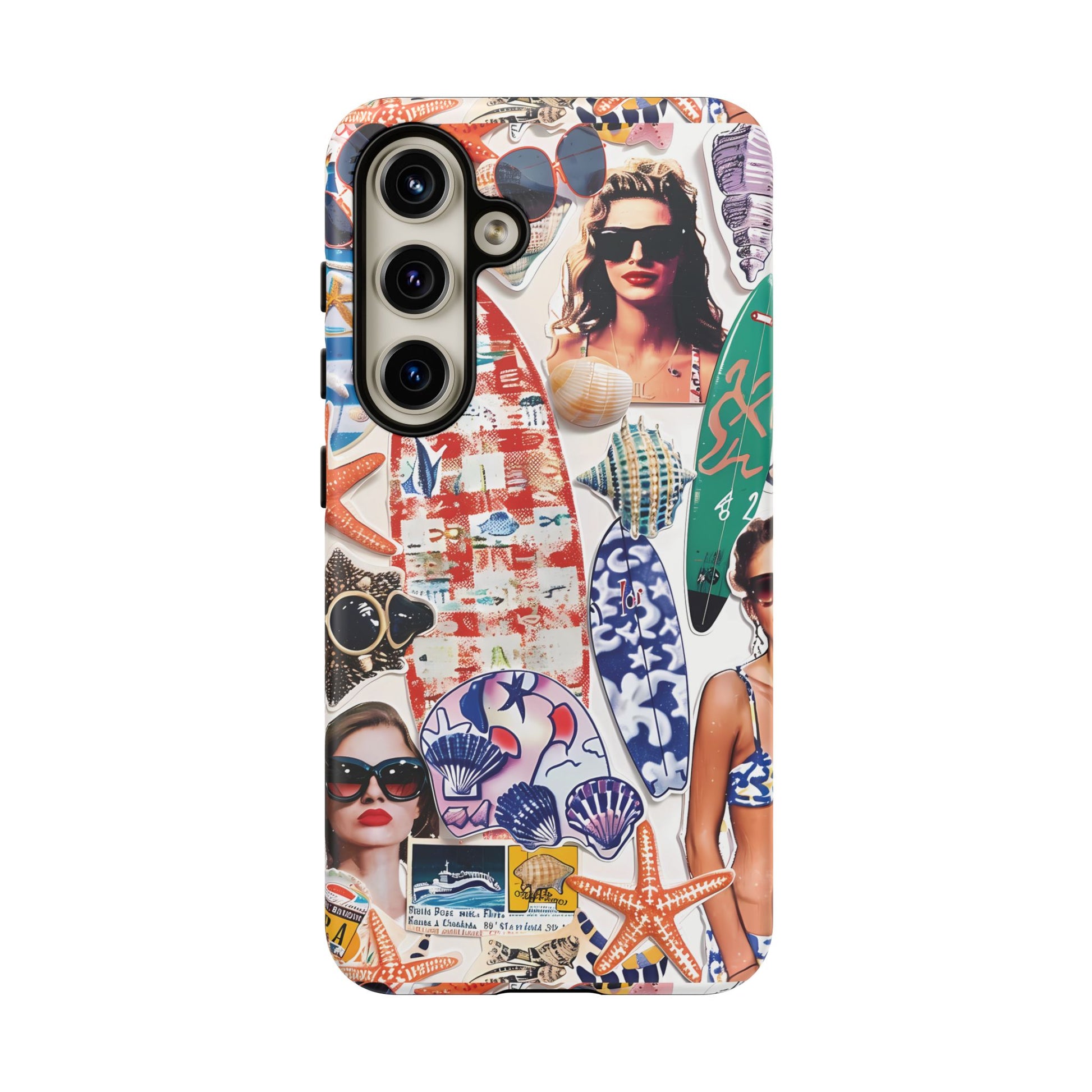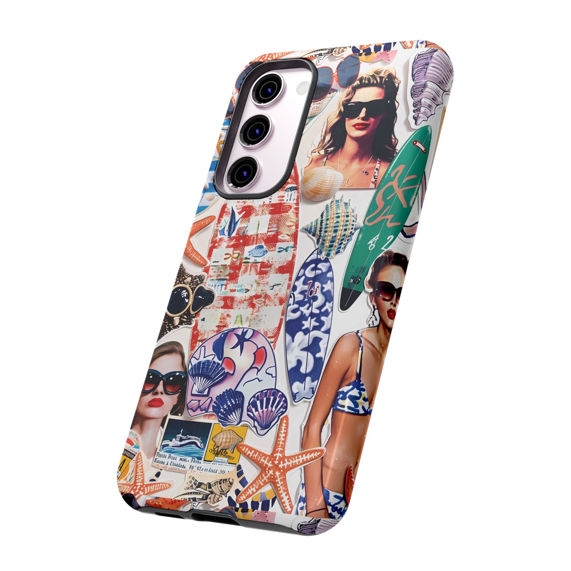 Escape to a bygone era of leisure and luxury with our Vintage Vacation Cover. This captivating collage celebrates the golden age of retro island vacations, featuring vintage images of surfboards, starfish, and sun-kissed beaches. Take a trip down memory lane and let your phone be your passport to paradise
