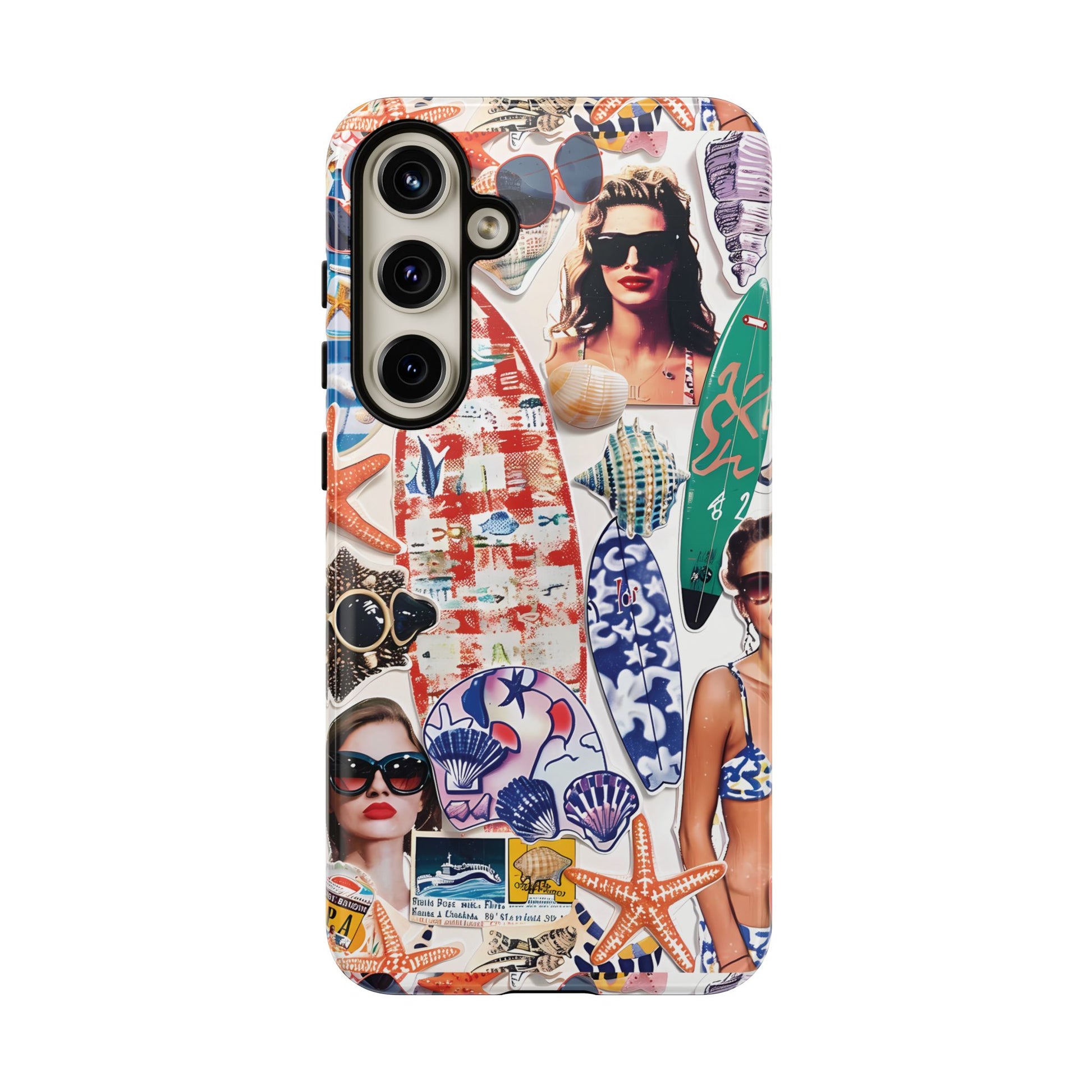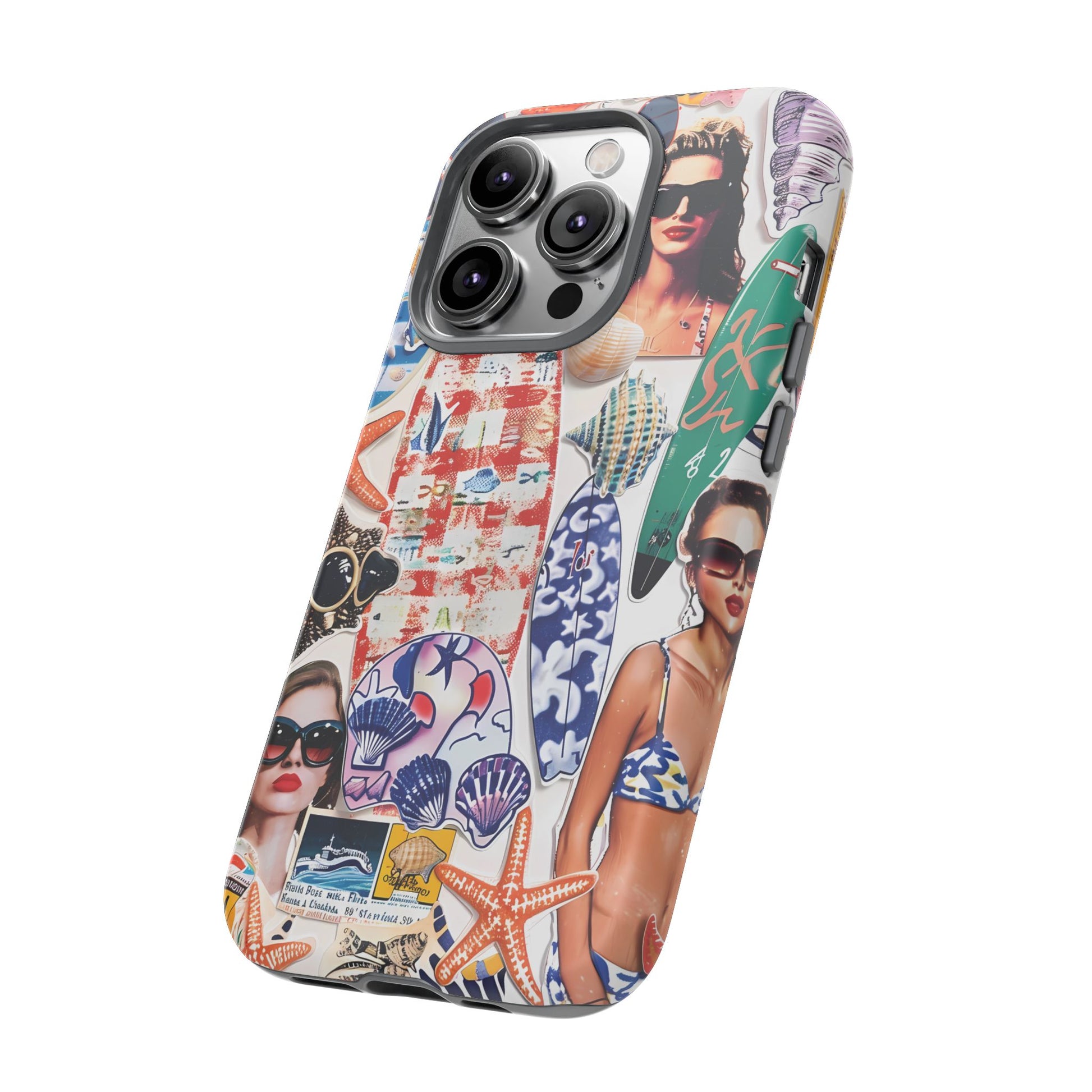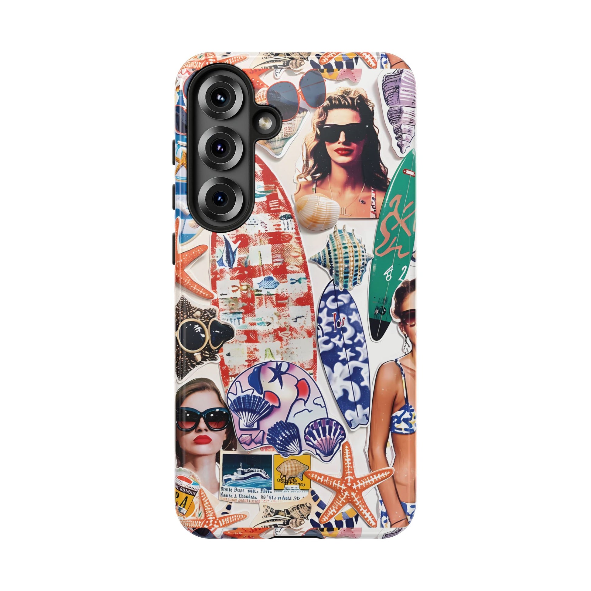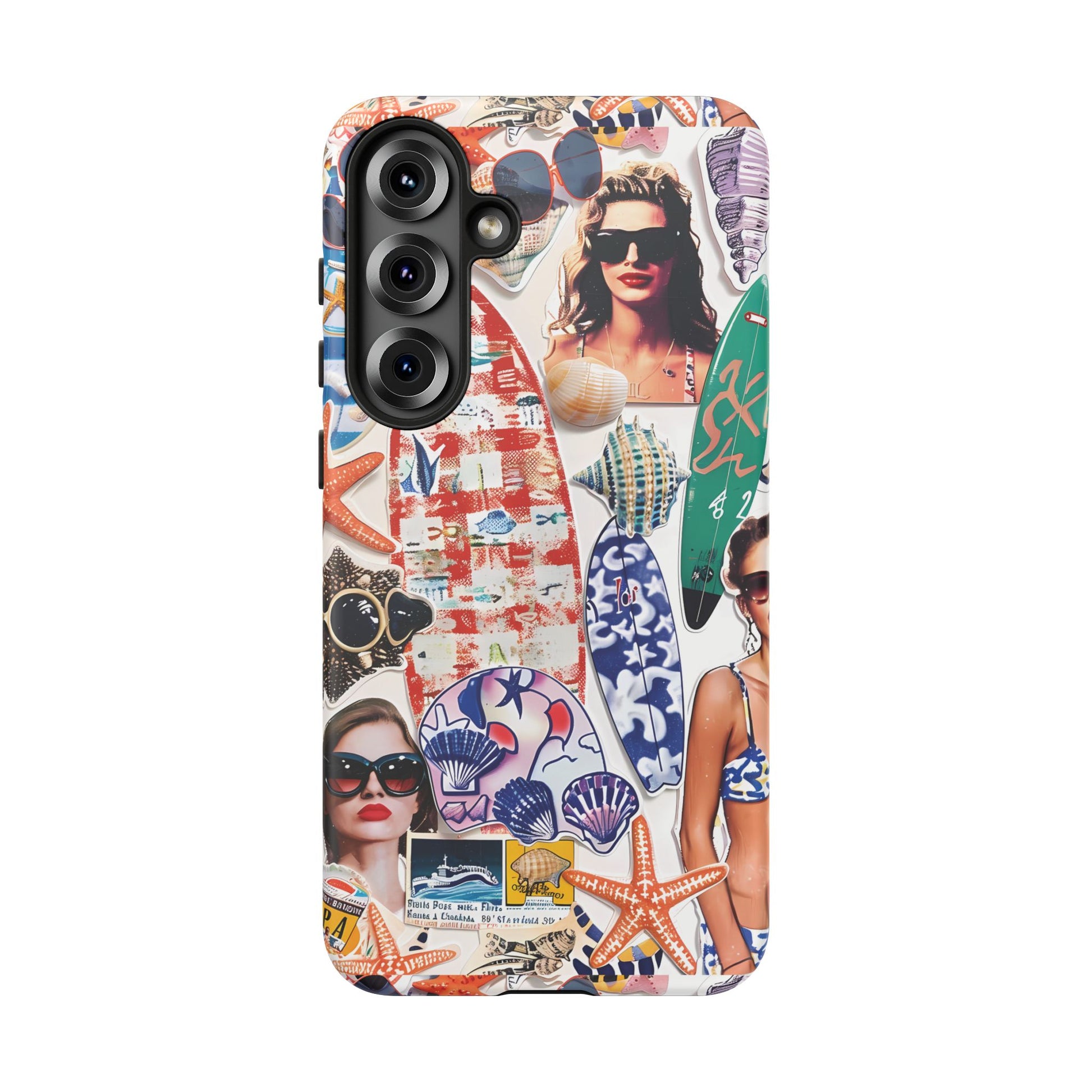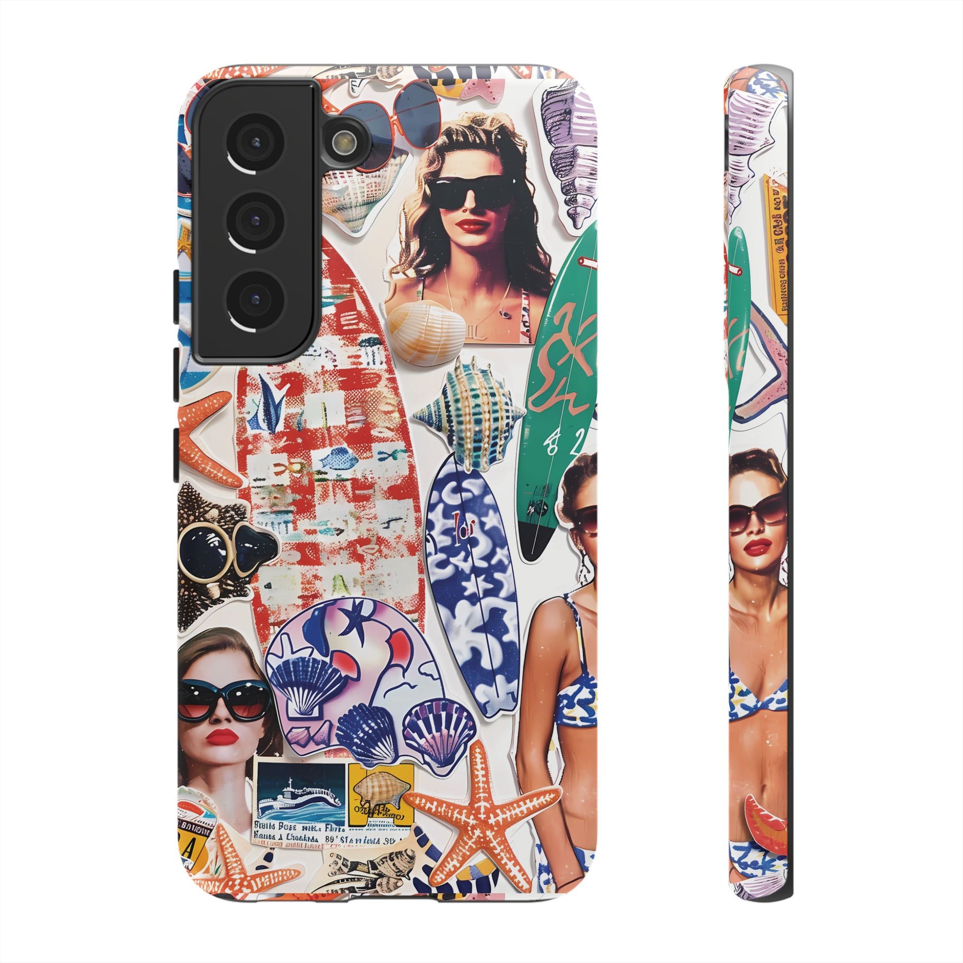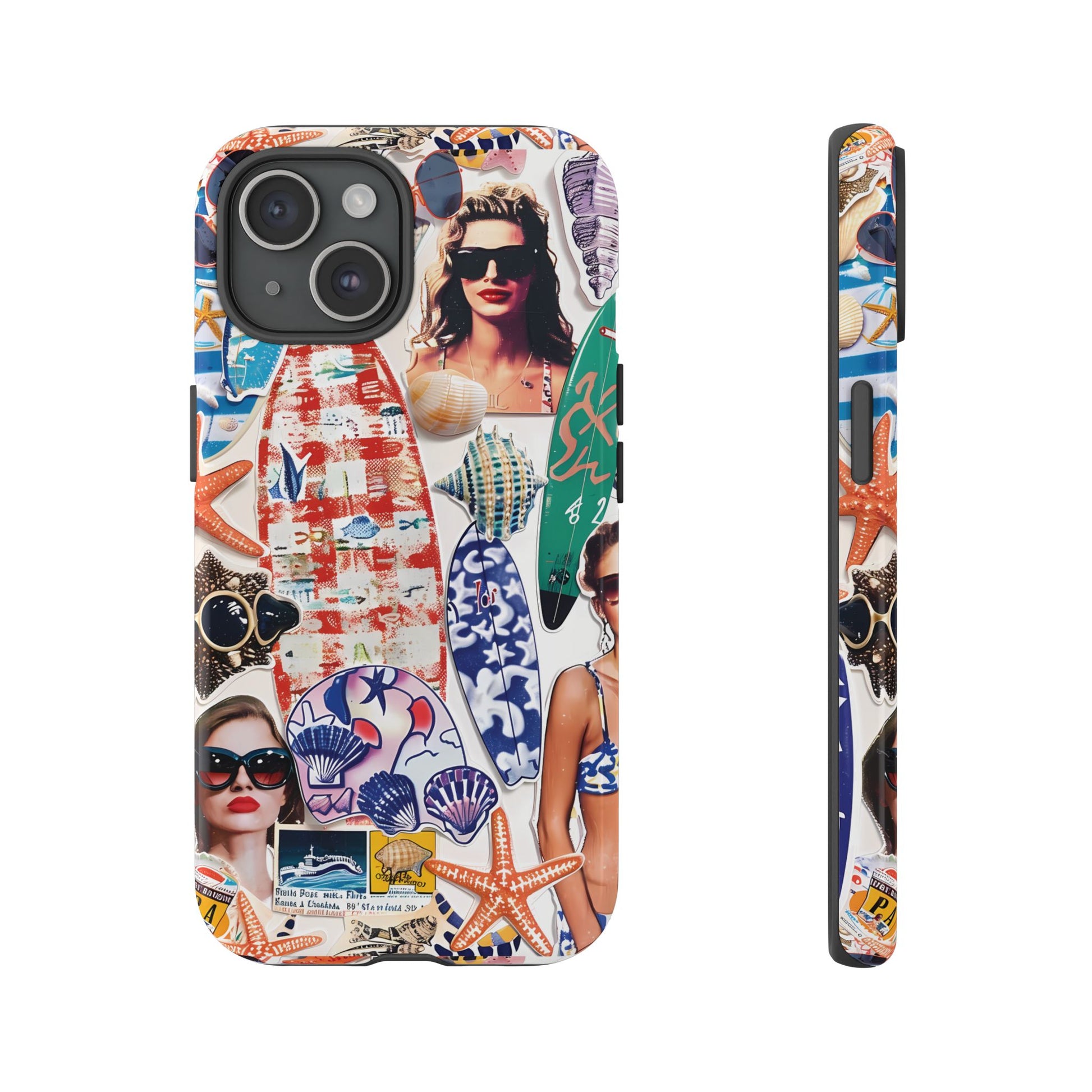 Escape to a bygone era of leisure and luxury with our Vintage Vacation Cover. This captivating collage celebrates the golden age of retro island vacations, featuring vintage images of surfboards, starfish, and sun-kissed beaches. Take a trip down memory lane and let your phone be your passport to paradise