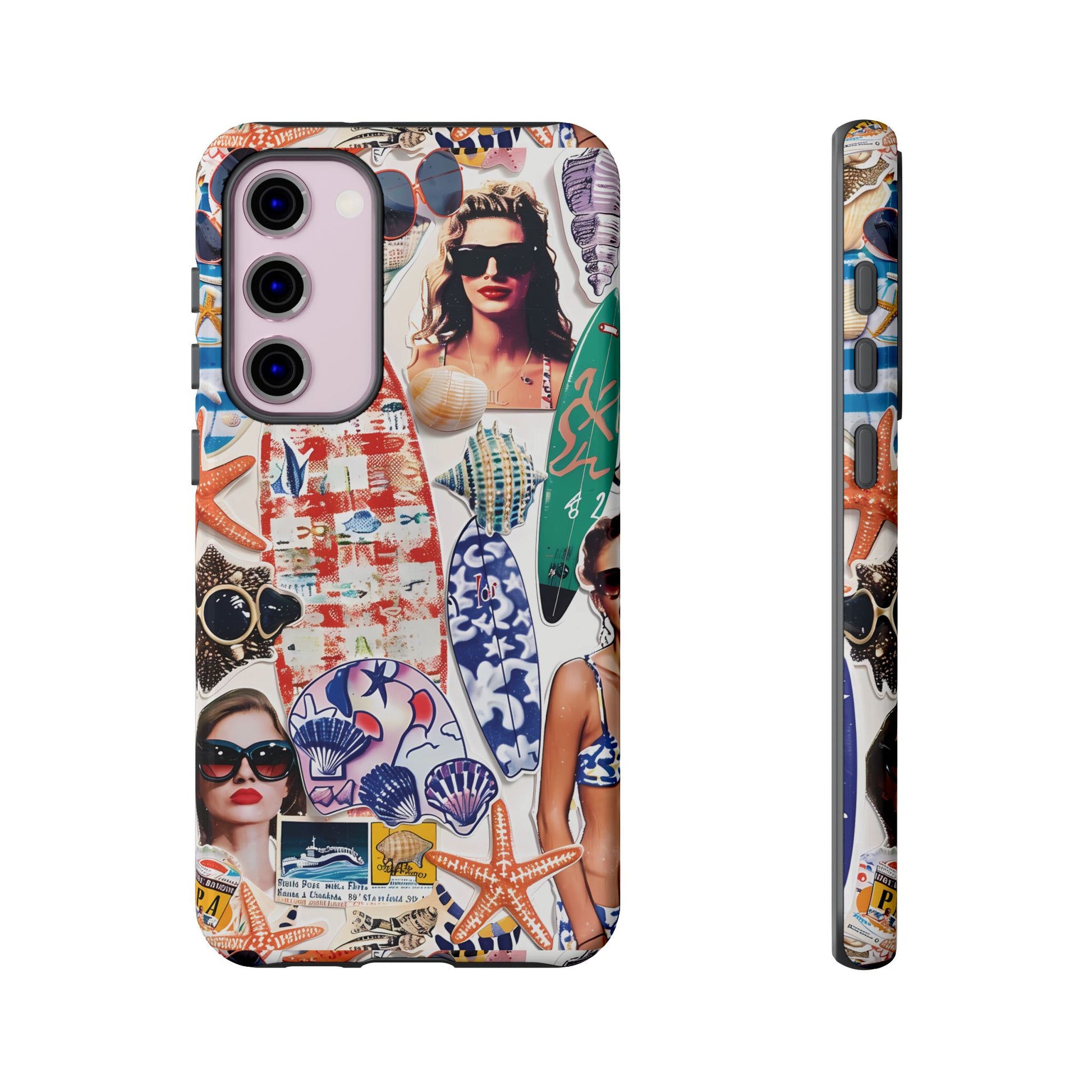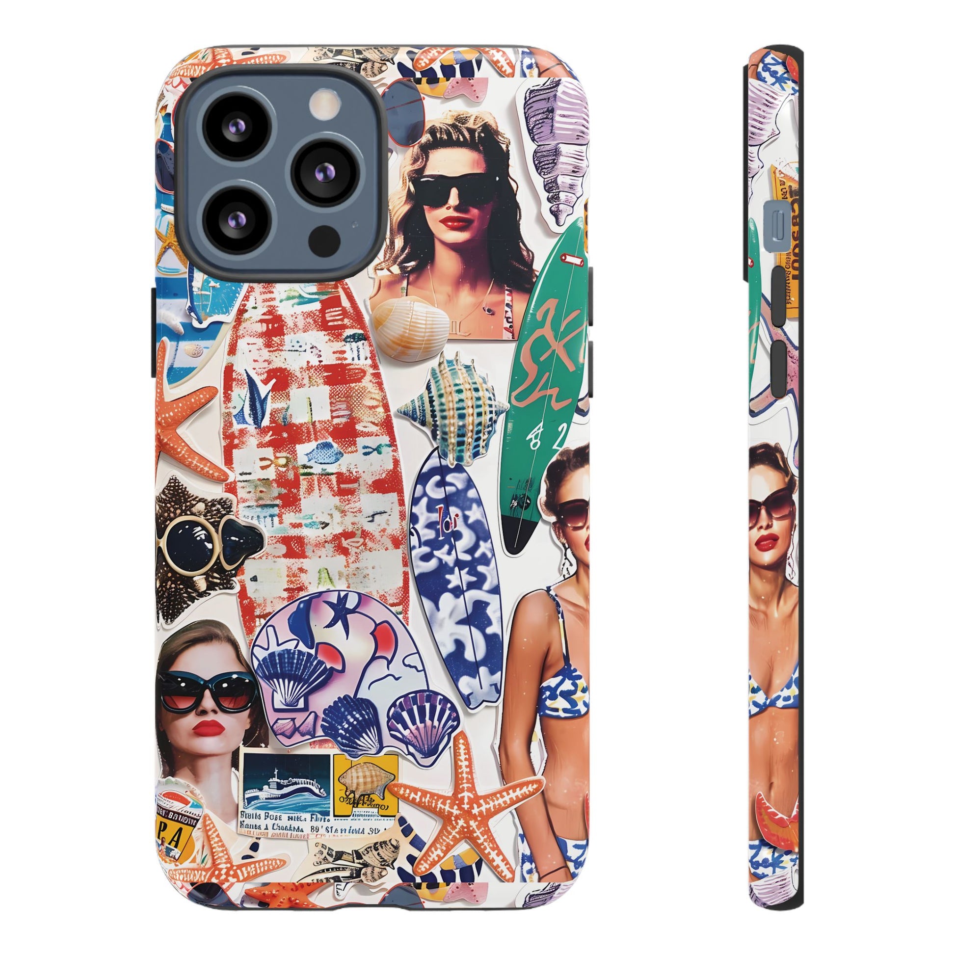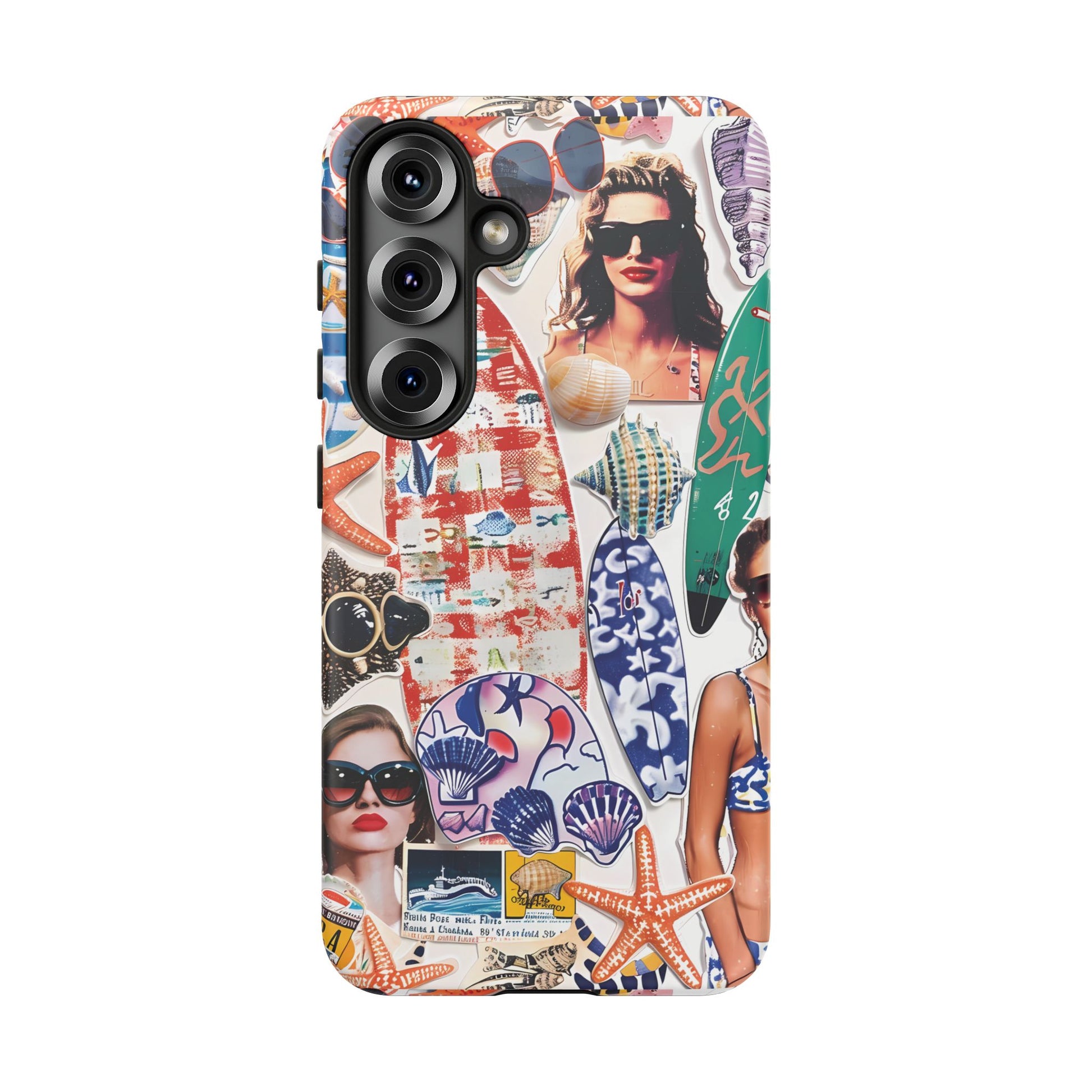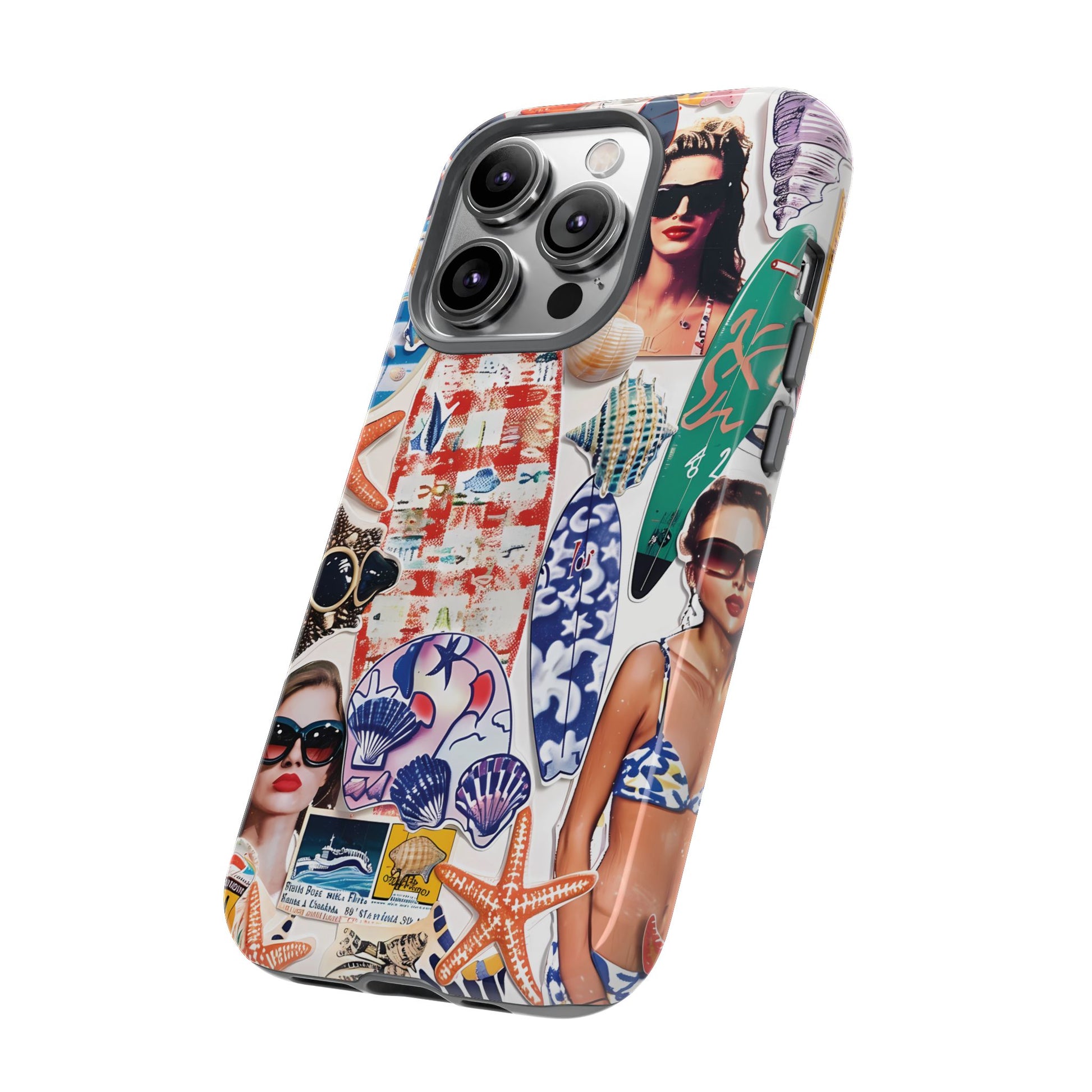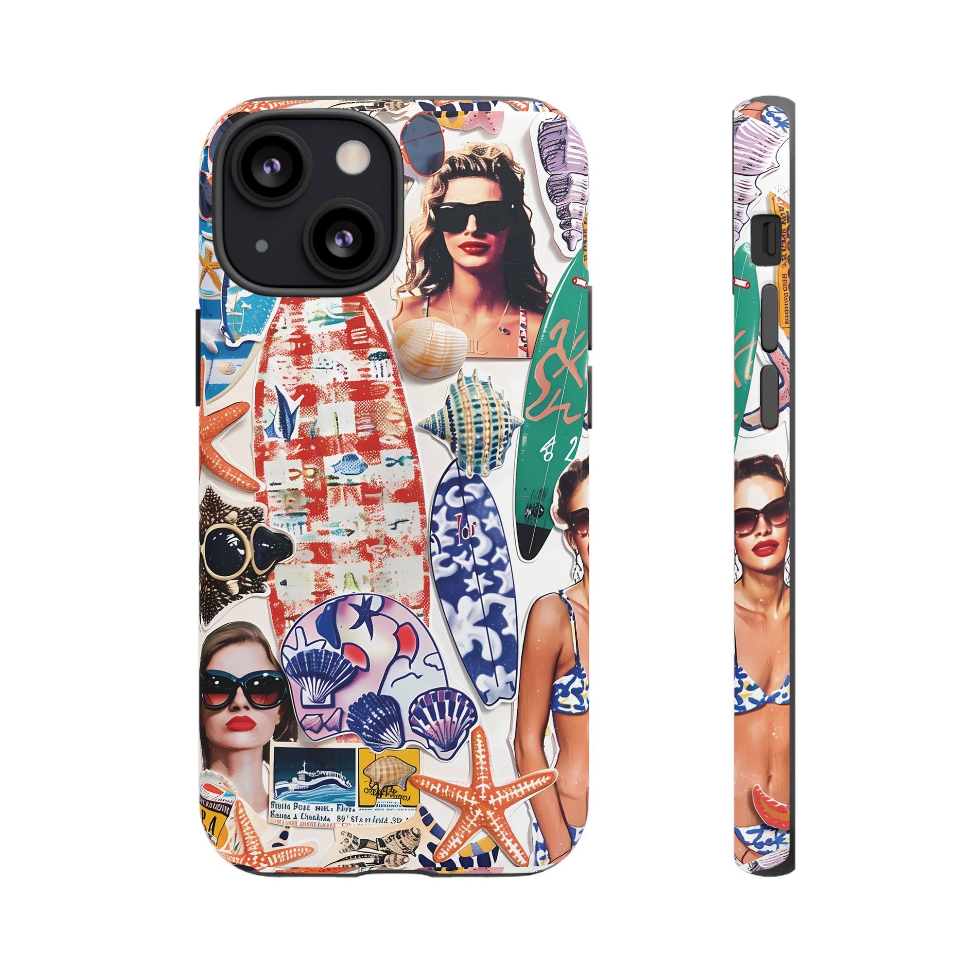 Escape to a bygone era of leisure and luxury with our Vintage Vacation Cover. This captivating collage celebrates the golden age of retro island vacations, featuring vintage images of surfboards, starfish, and sun-kissed beaches. Take a trip down memory lane and let your phone be your passport to paradise