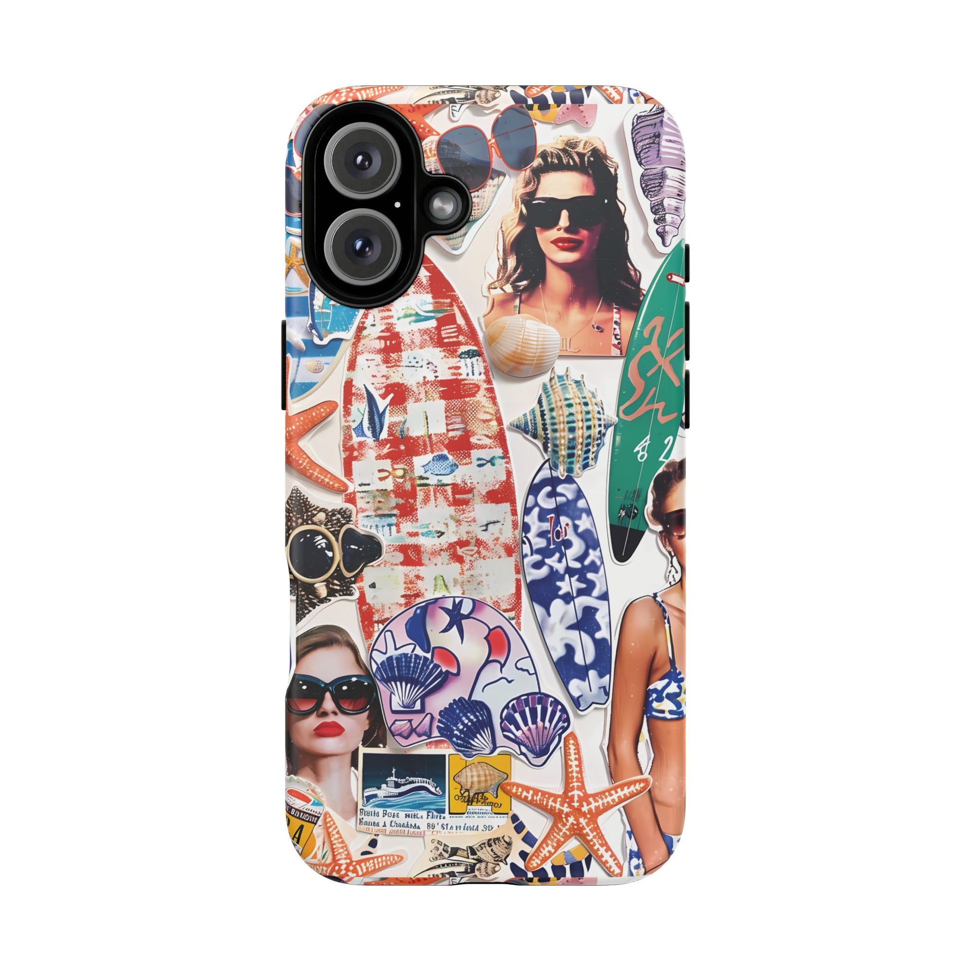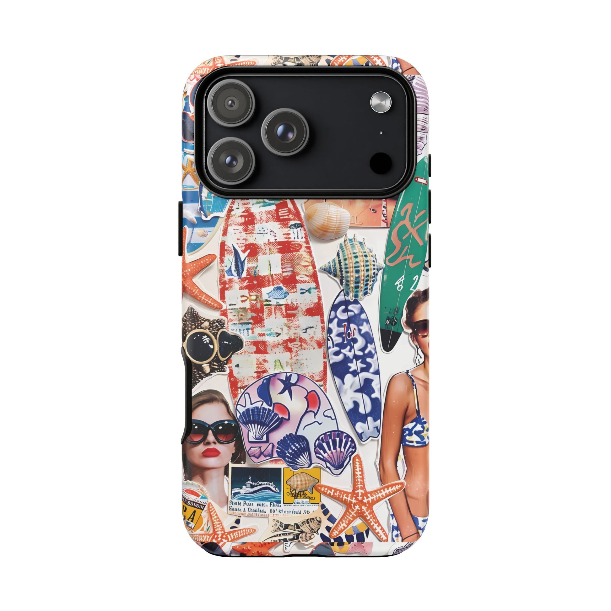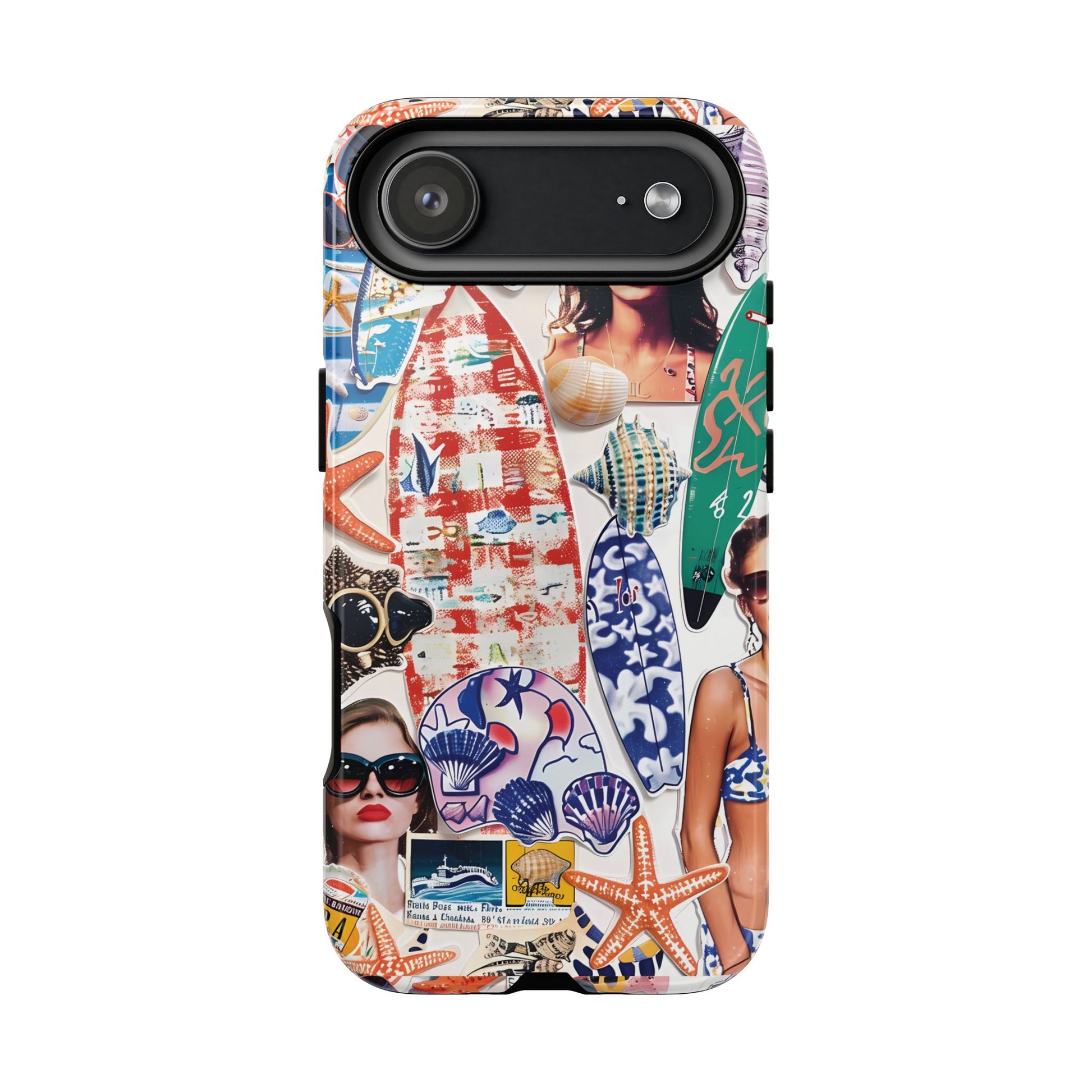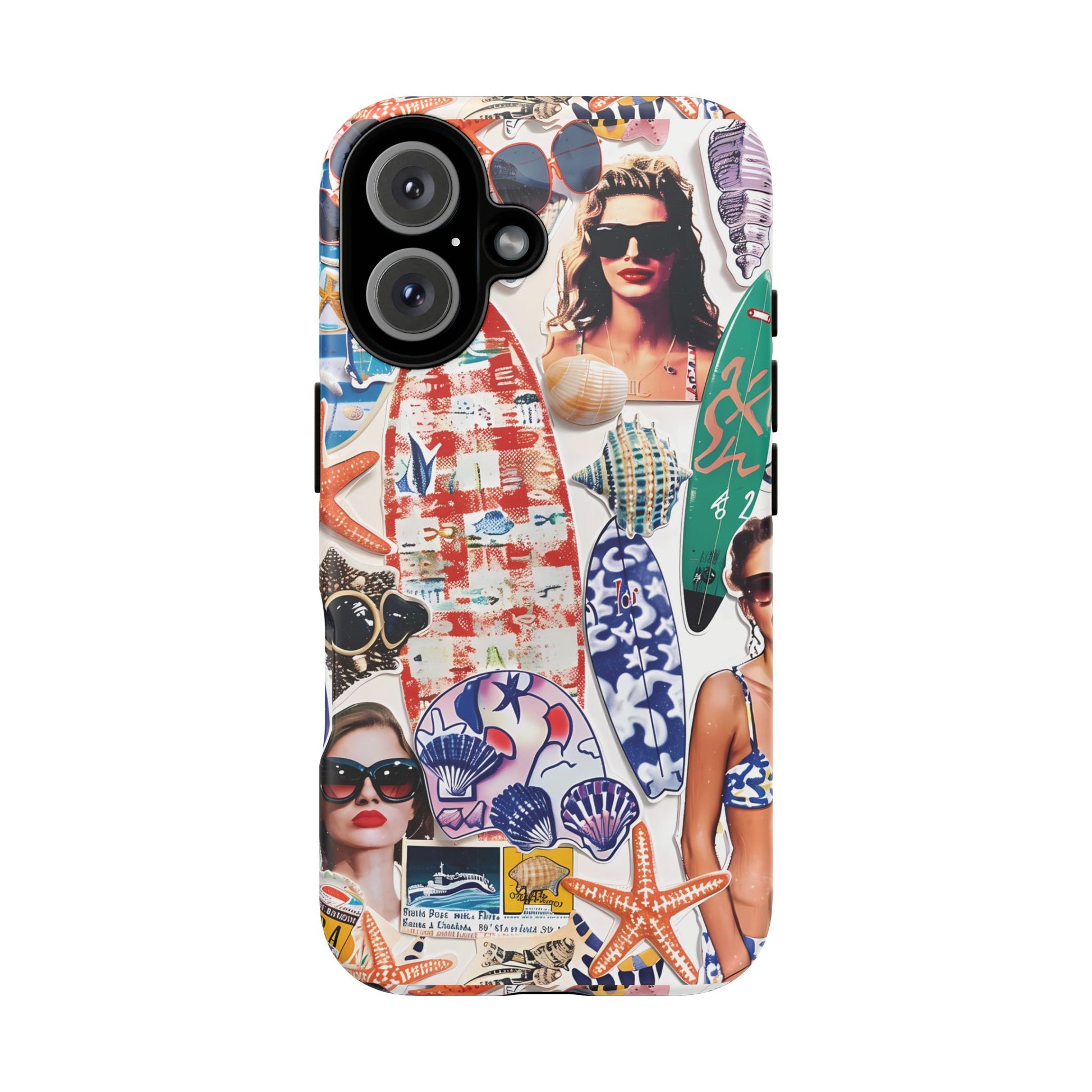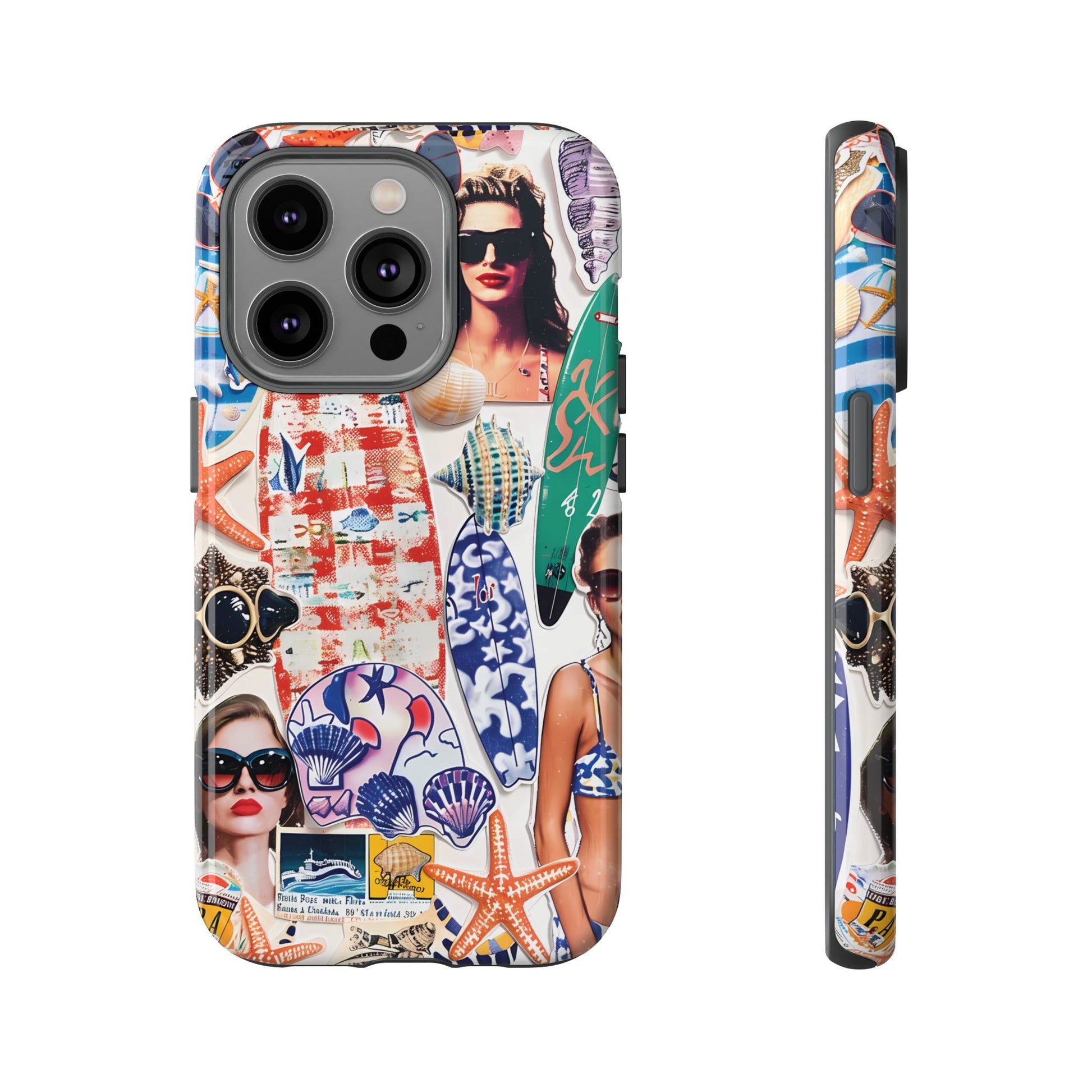 Escape to a bygone era of leisure and luxury with our Vintage Vacation Cover. This captivating collage celebrates the golden age of retro island vacations, featuring vintage images of surfboards, starfish, and sun-kissed beaches. Take a trip down memory lane and let your phone be your passport to paradise