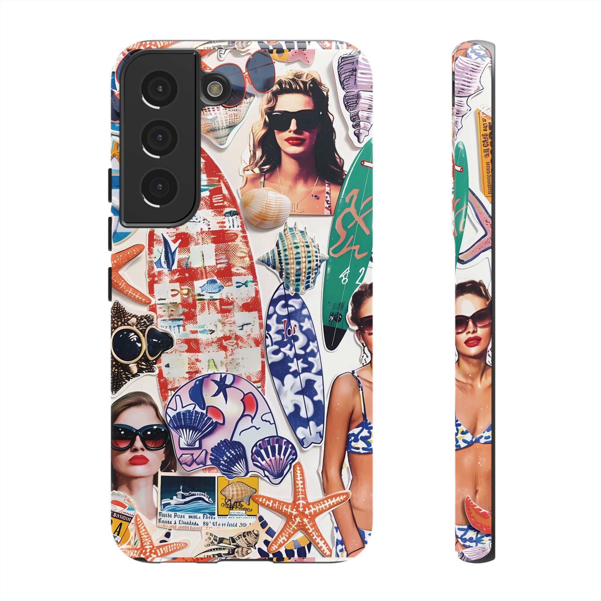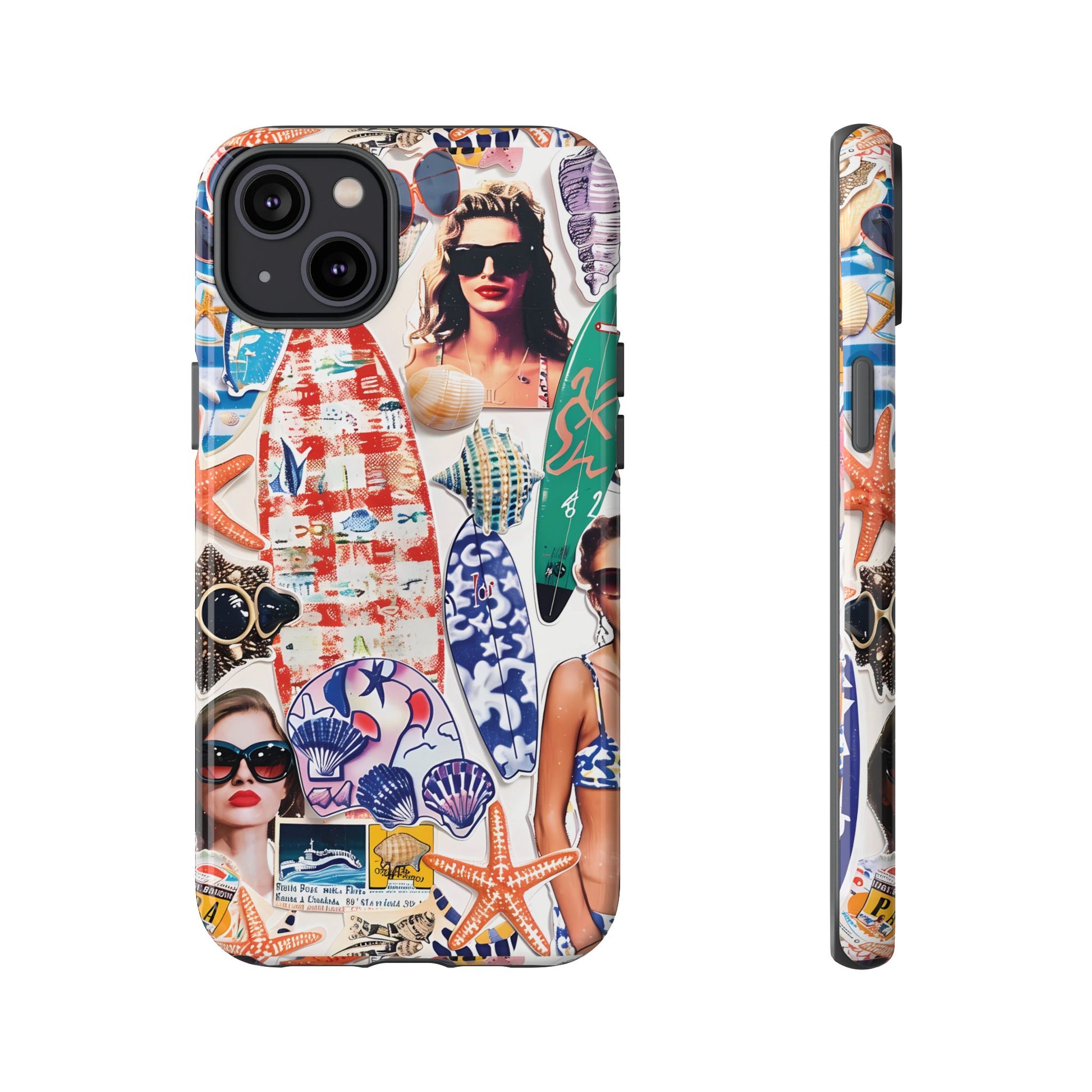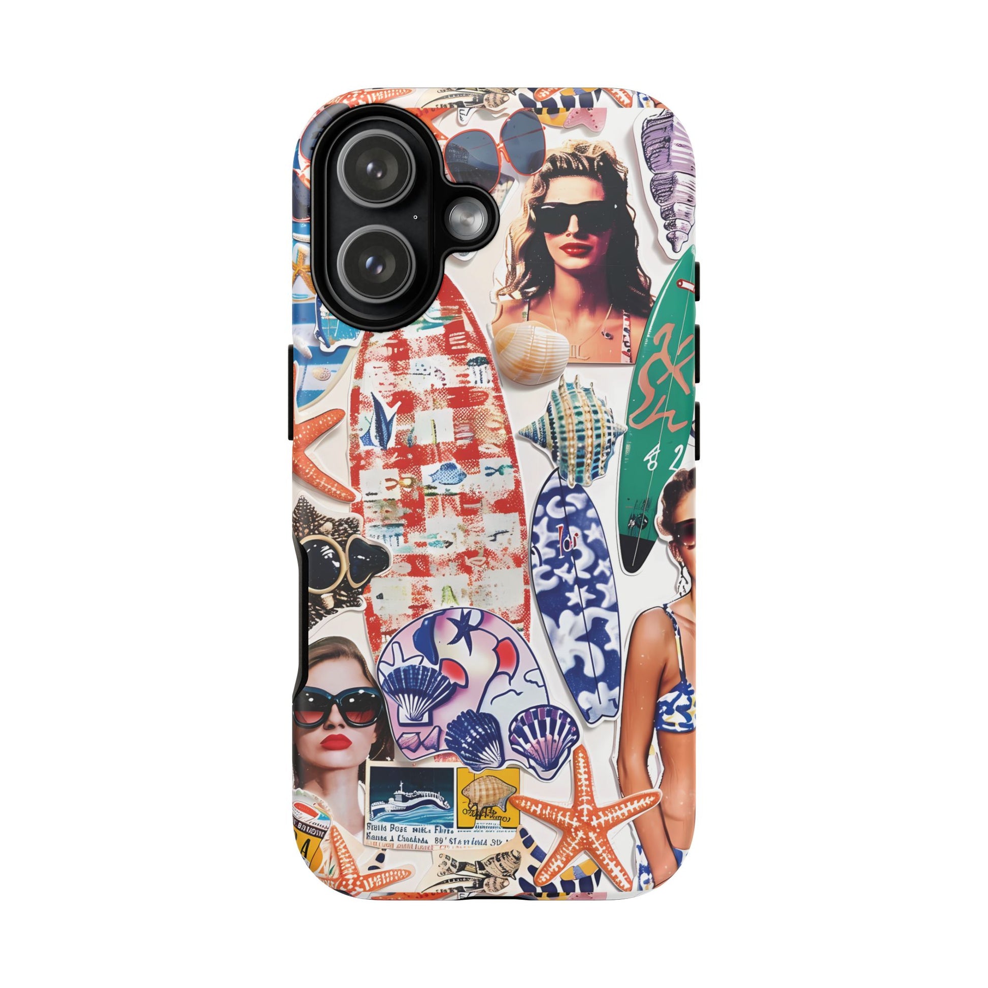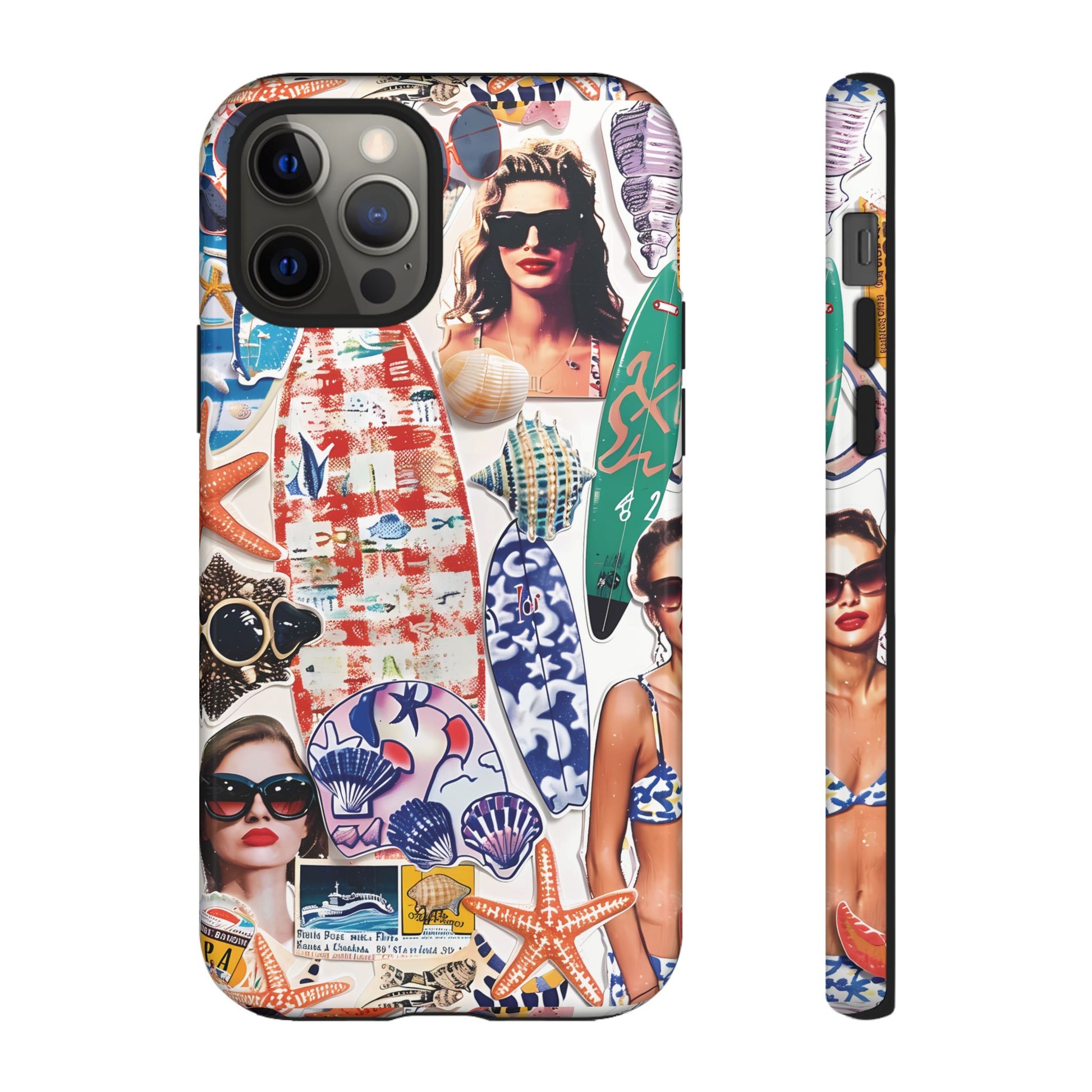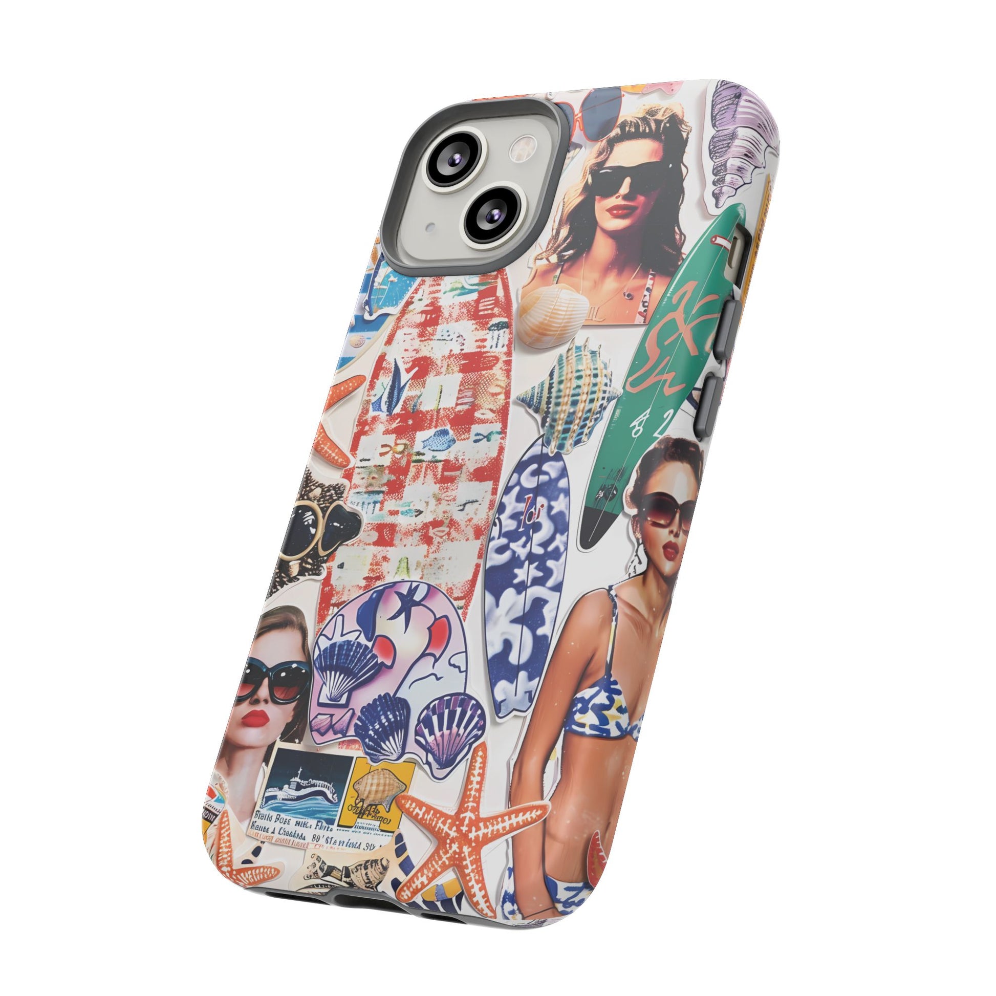 Escape to a bygone era of leisure and luxury with our Vintage Vacation Cover. This captivating collage celebrates the golden age of retro island vacations, featuring vintage images of surfboards, starfish, and sun-kissed beaches. Take a trip down memory lane and let your phone be your passport to paradise