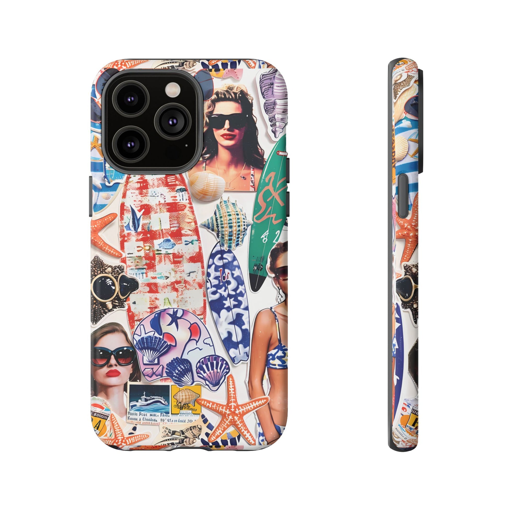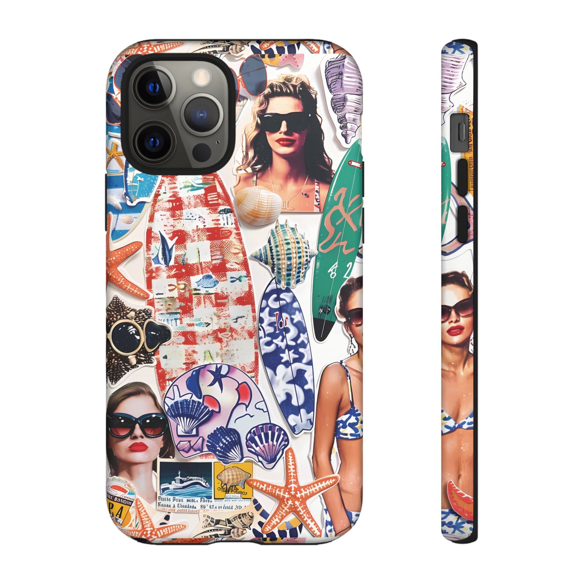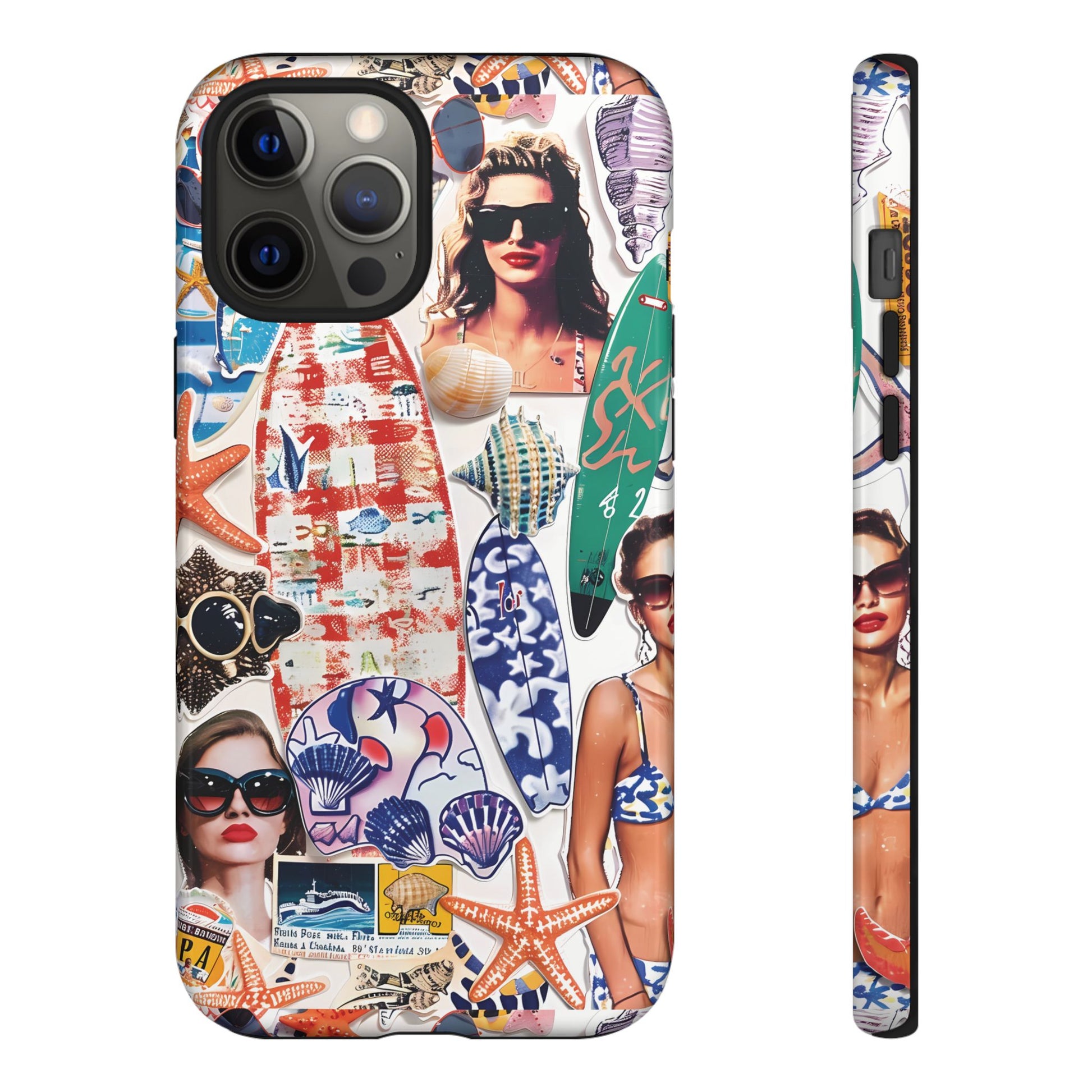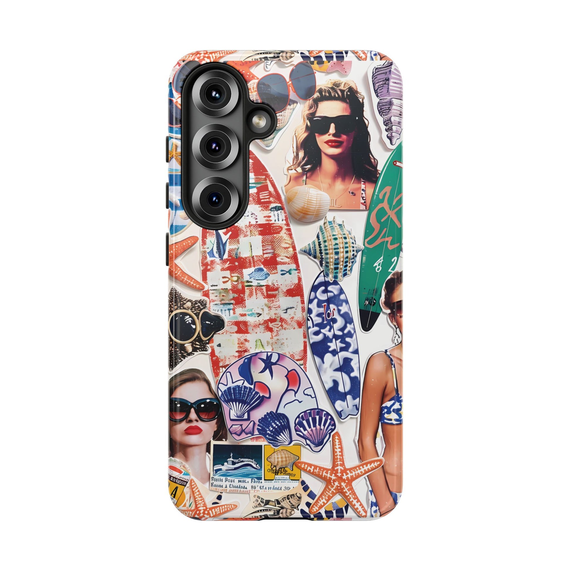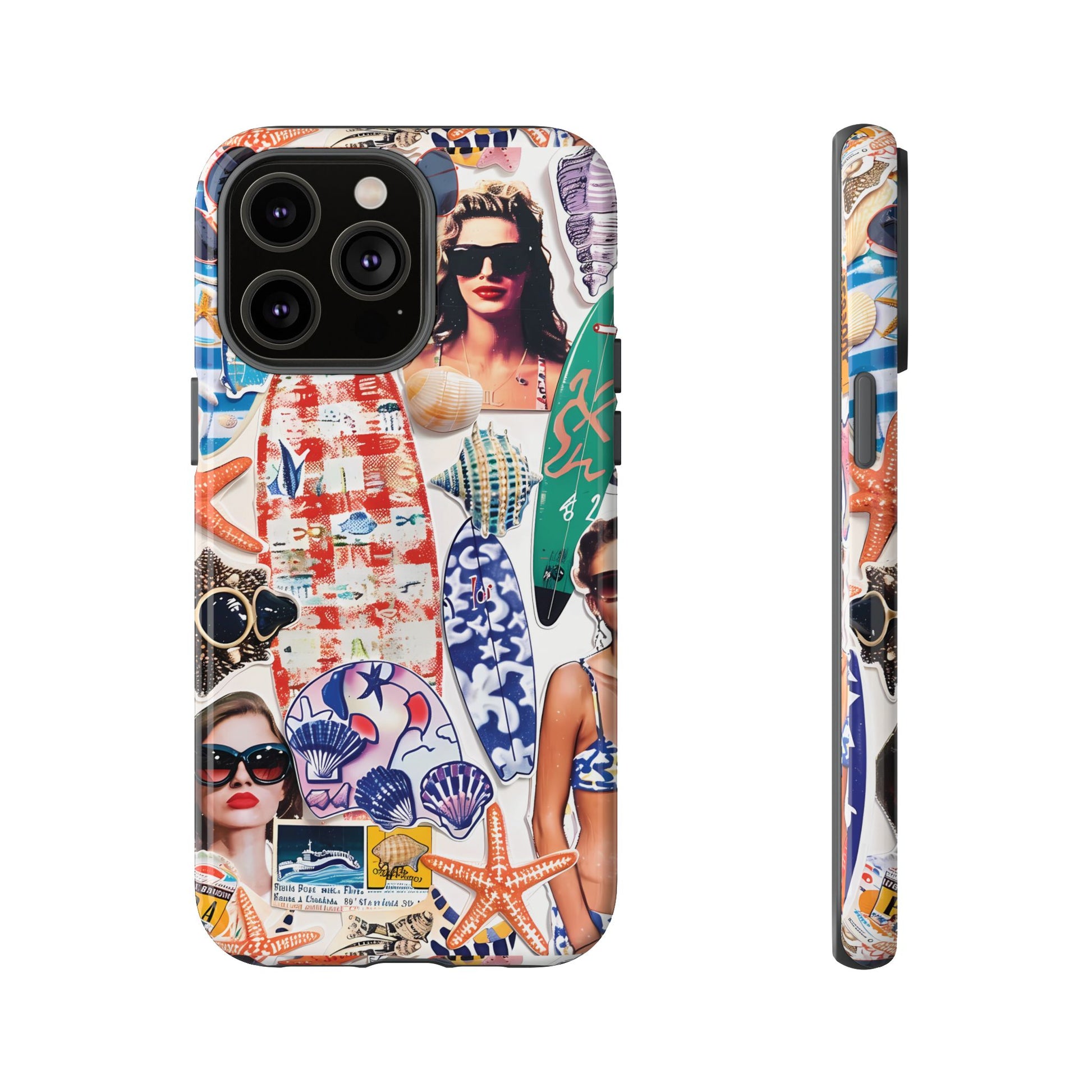 Escape to a bygone era of leisure and luxury with our Vintage Vacation Cover. This captivating collage celebrates the golden age of retro island vacations, featuring vintage images of surfboards, starfish, and sun-kissed beaches. Take a trip down memory lane and let your phone be your passport to paradise