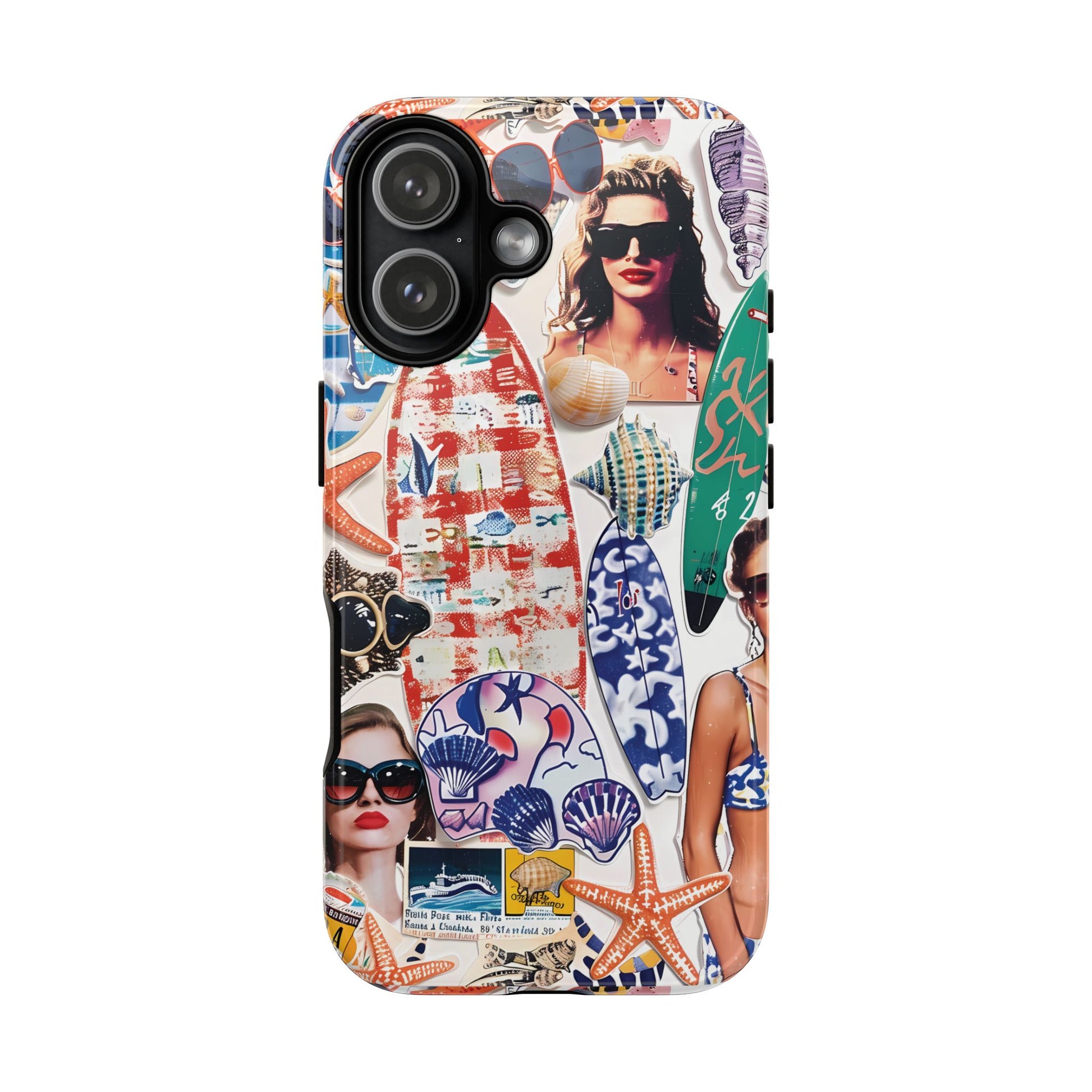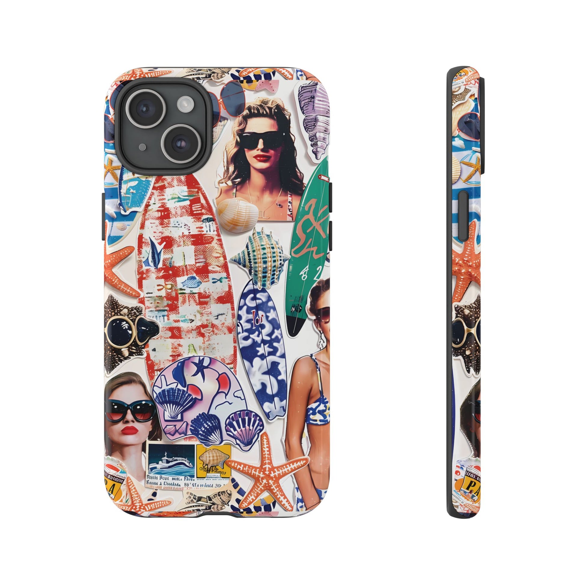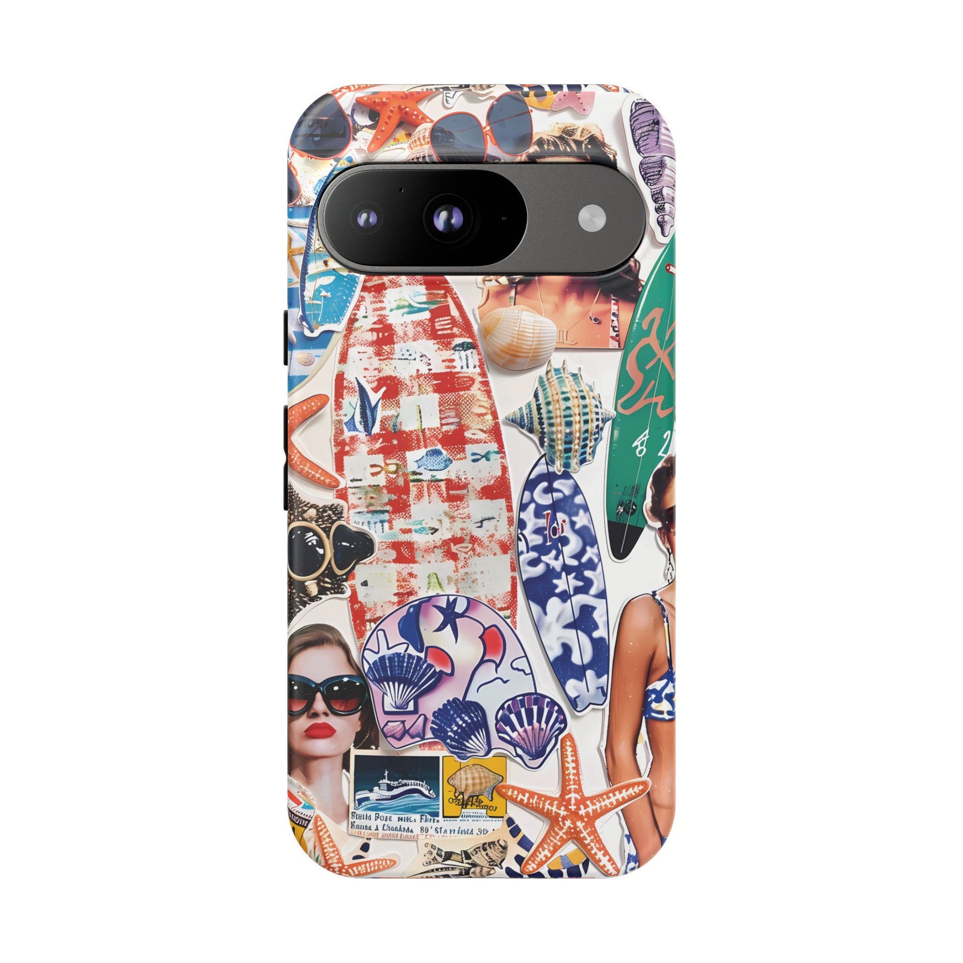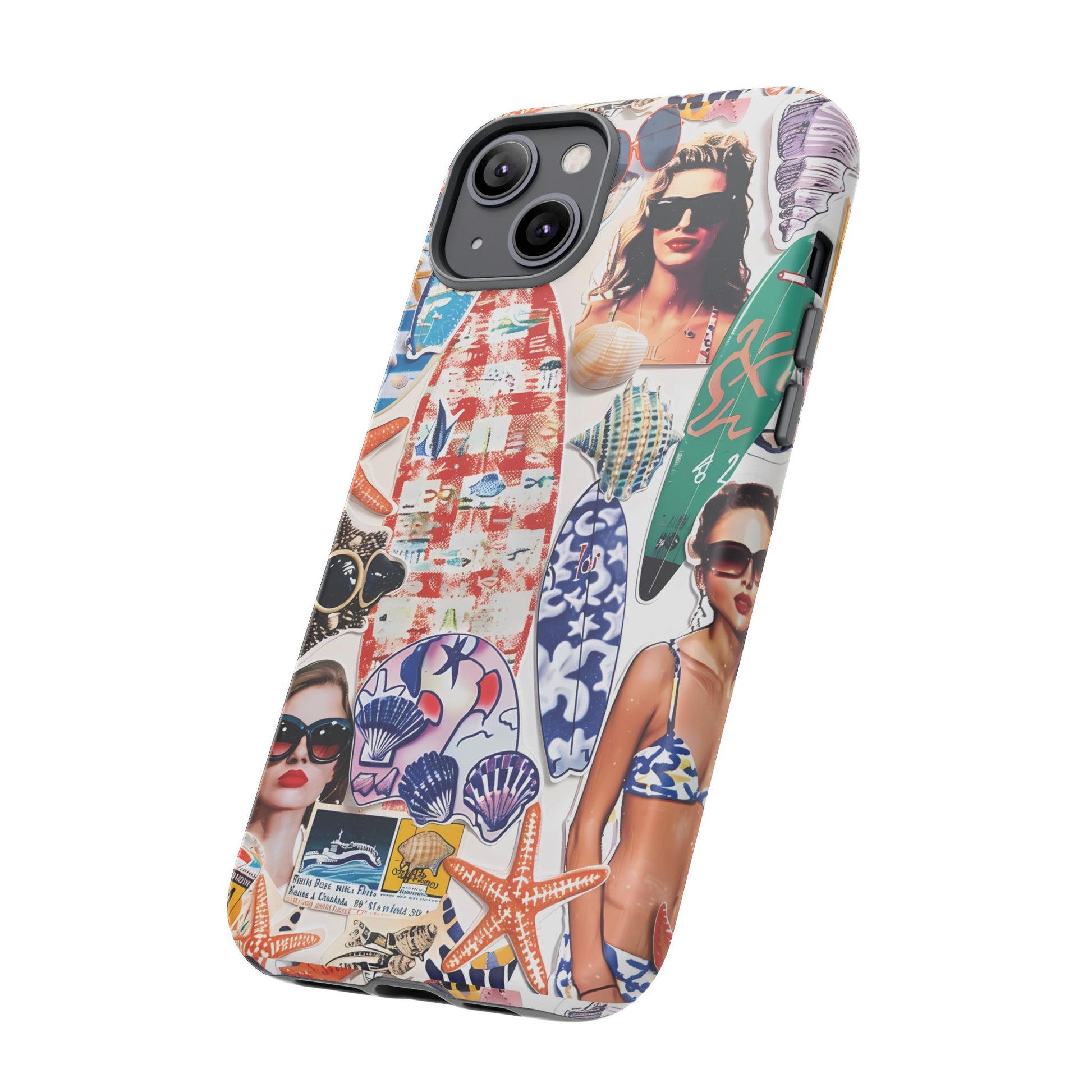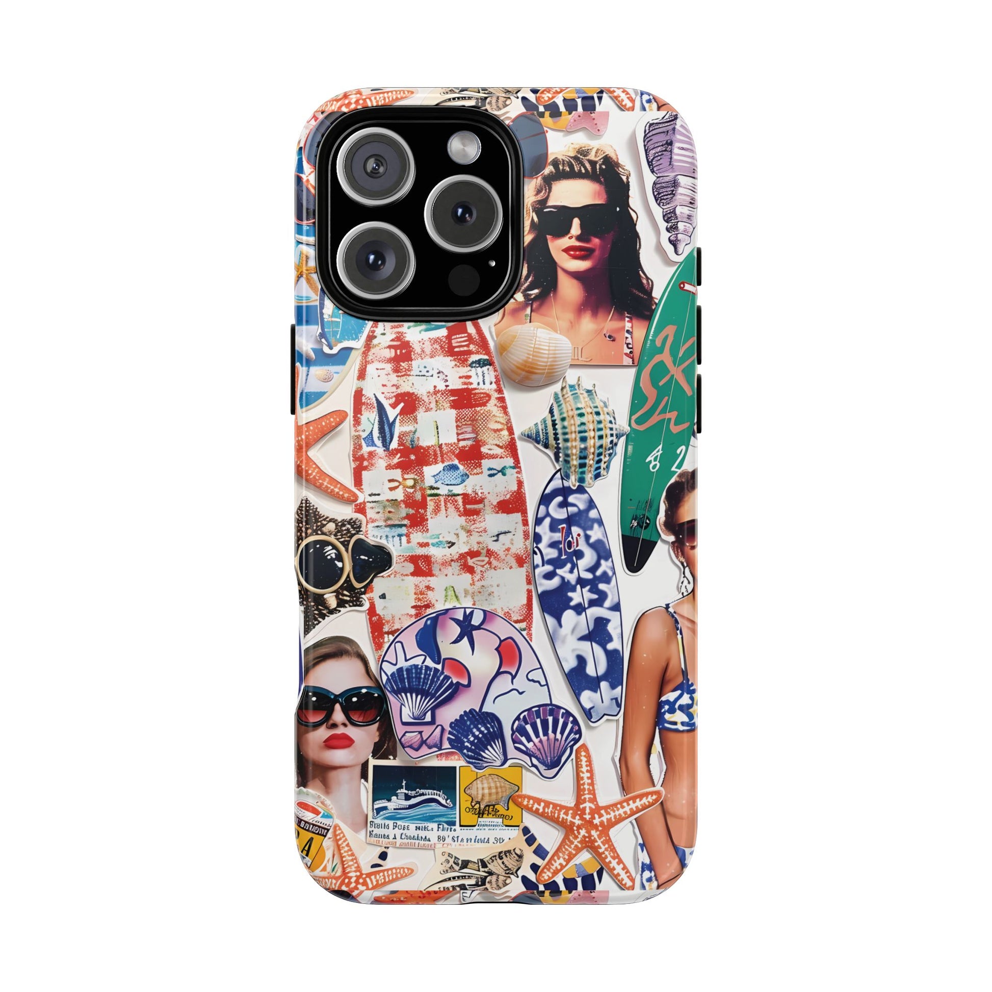 Escape to a bygone era of leisure and luxury with our Vintage Vacation Cover. This captivating collage celebrates the golden age of retro island vacations, featuring vintage images of surfboards, starfish, and sun-kissed beaches. Take a trip down memory lane and let your phone be your passport to paradise