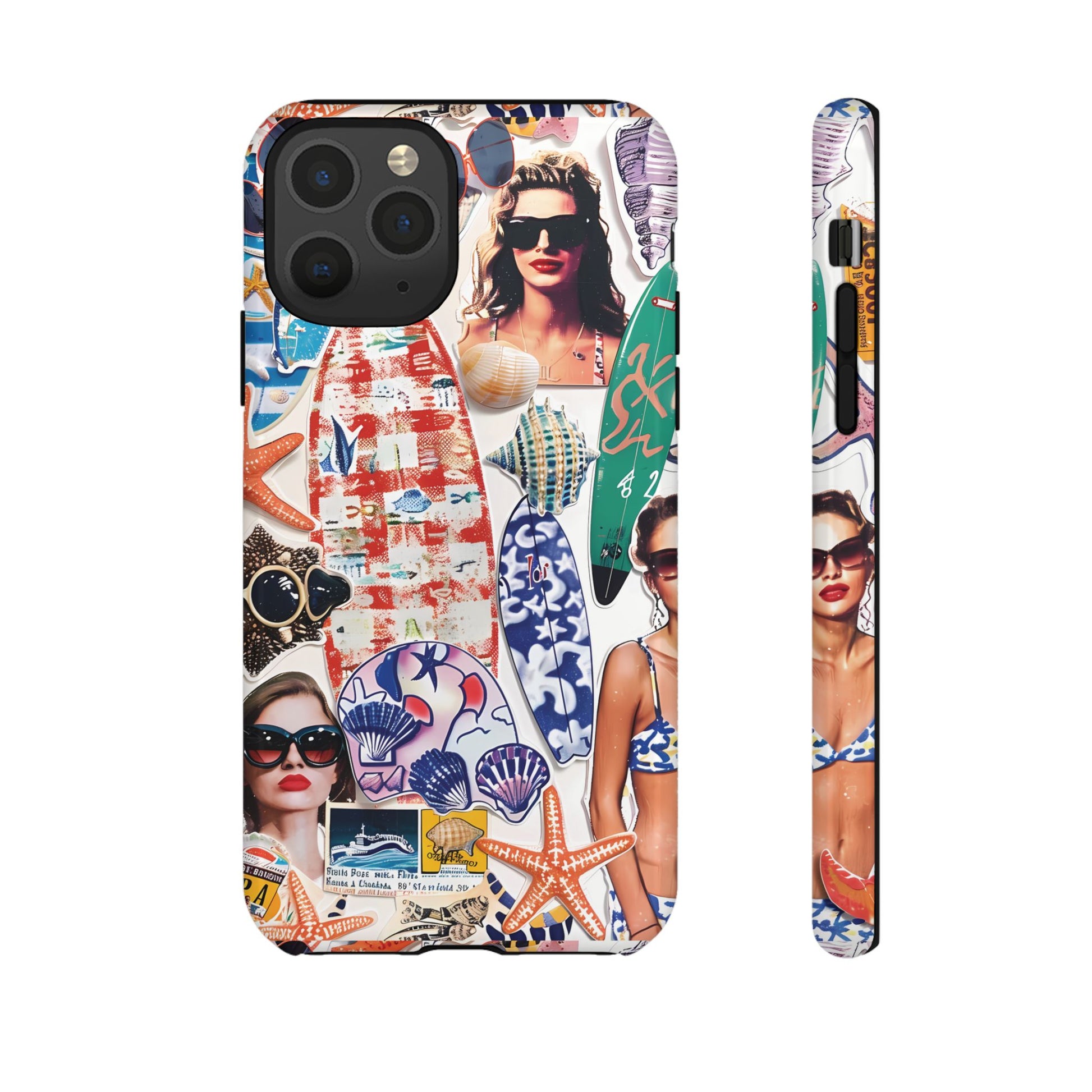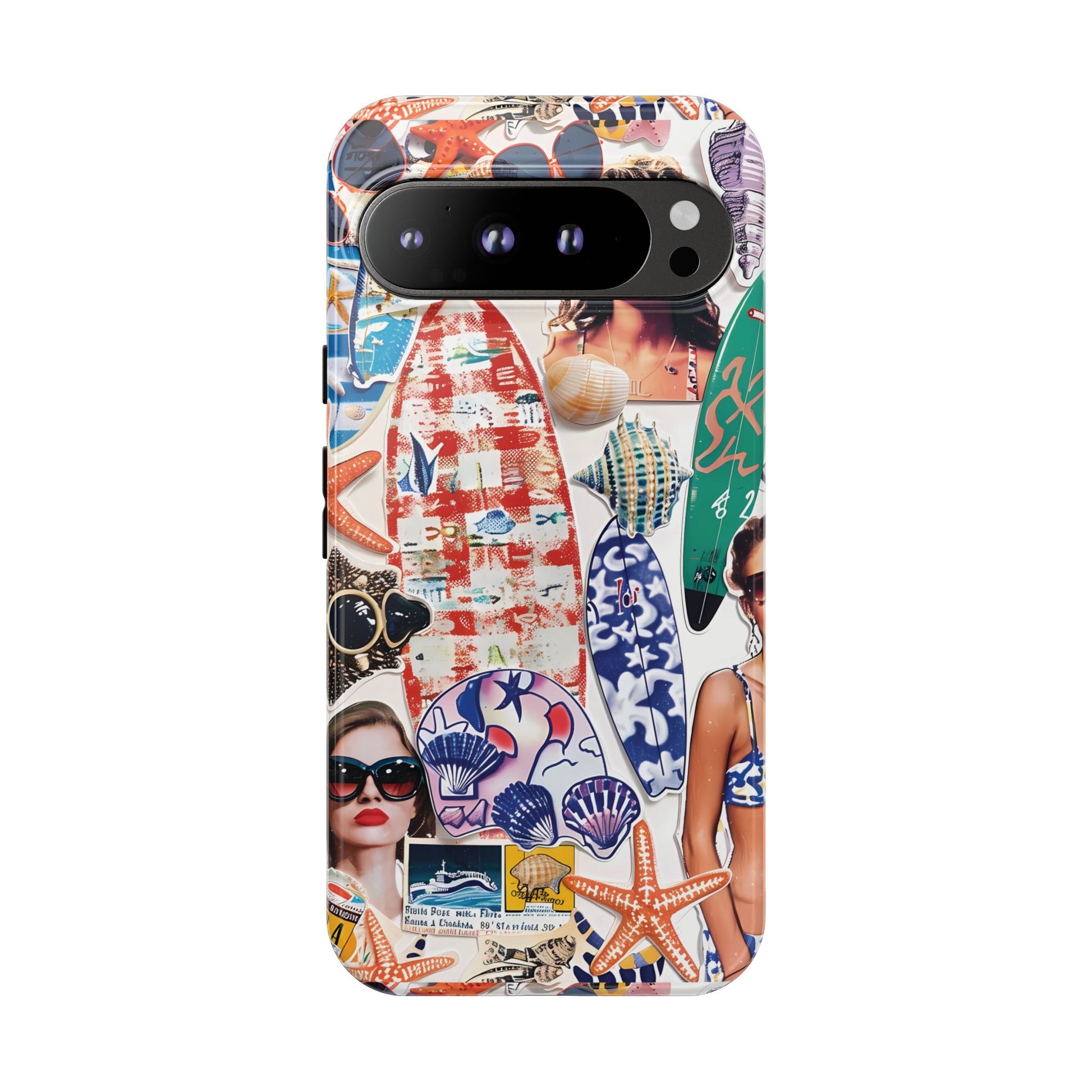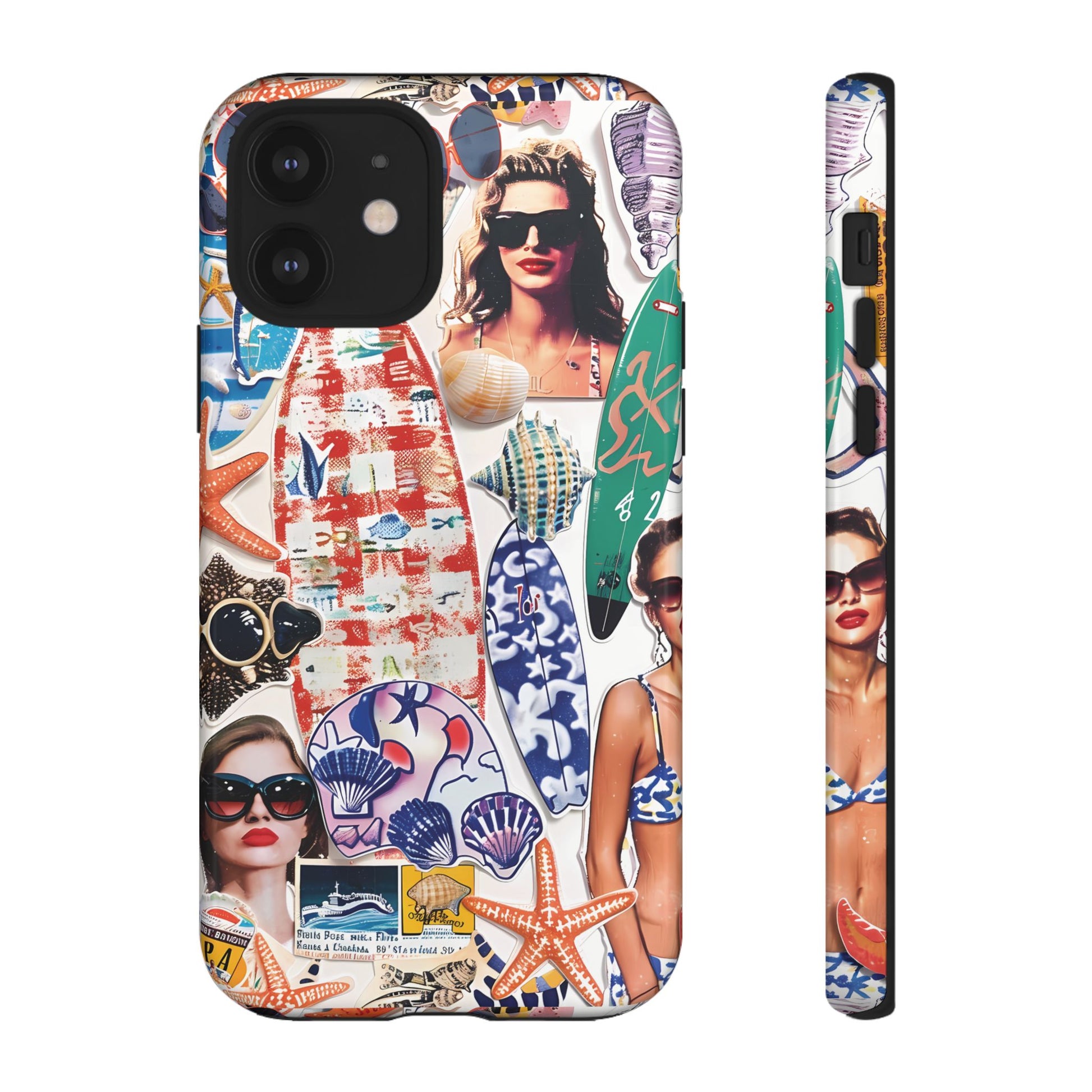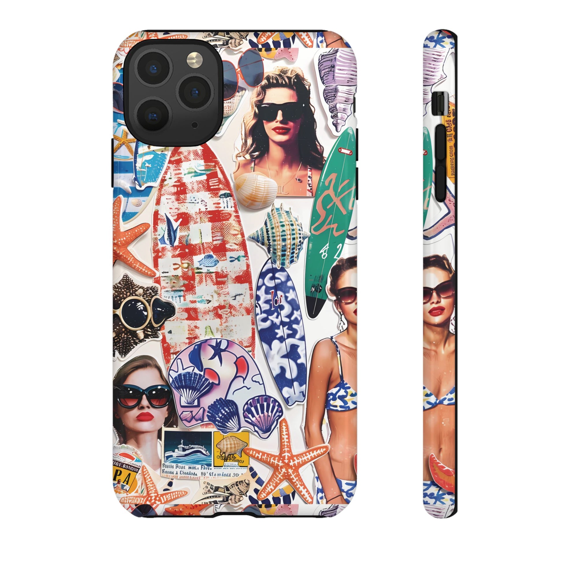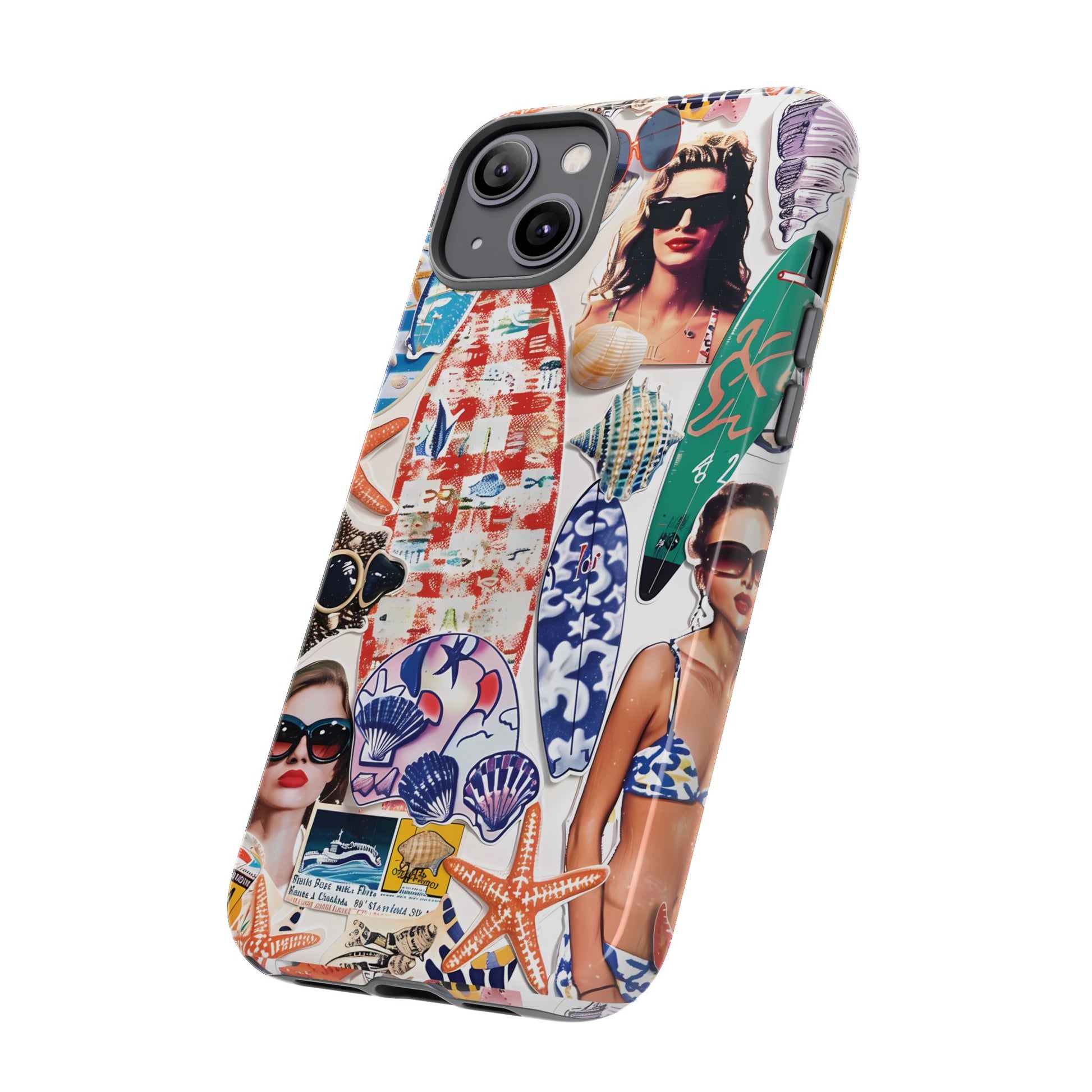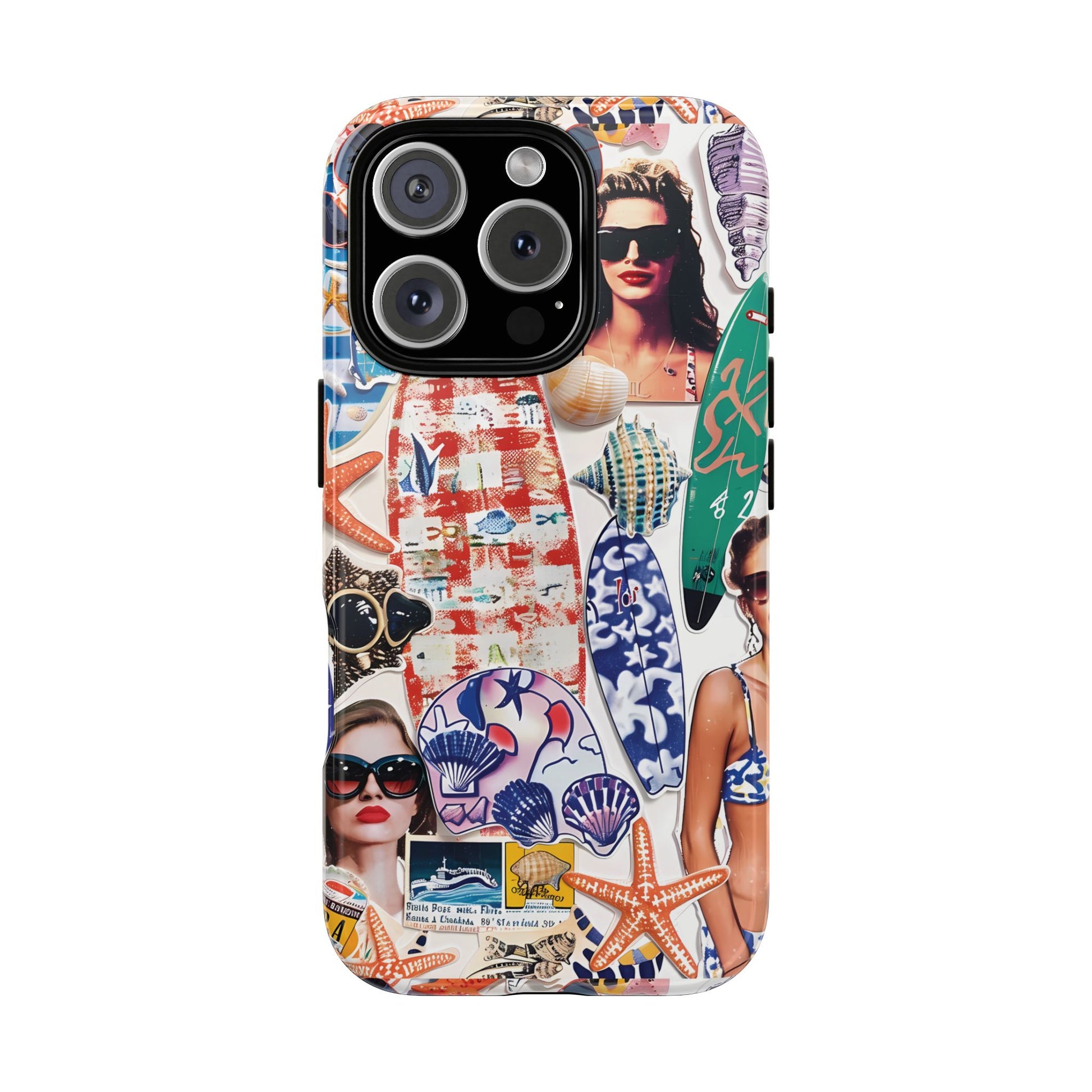 Escape to a bygone era of leisure and luxury with our Vintage Vacation Cover. This captivating collage celebrates the golden age of retro island vacations, featuring vintage images of surfboards, starfish, and sun-kissed beaches. Take a trip down memory lane and let your phone be your passport to paradise
