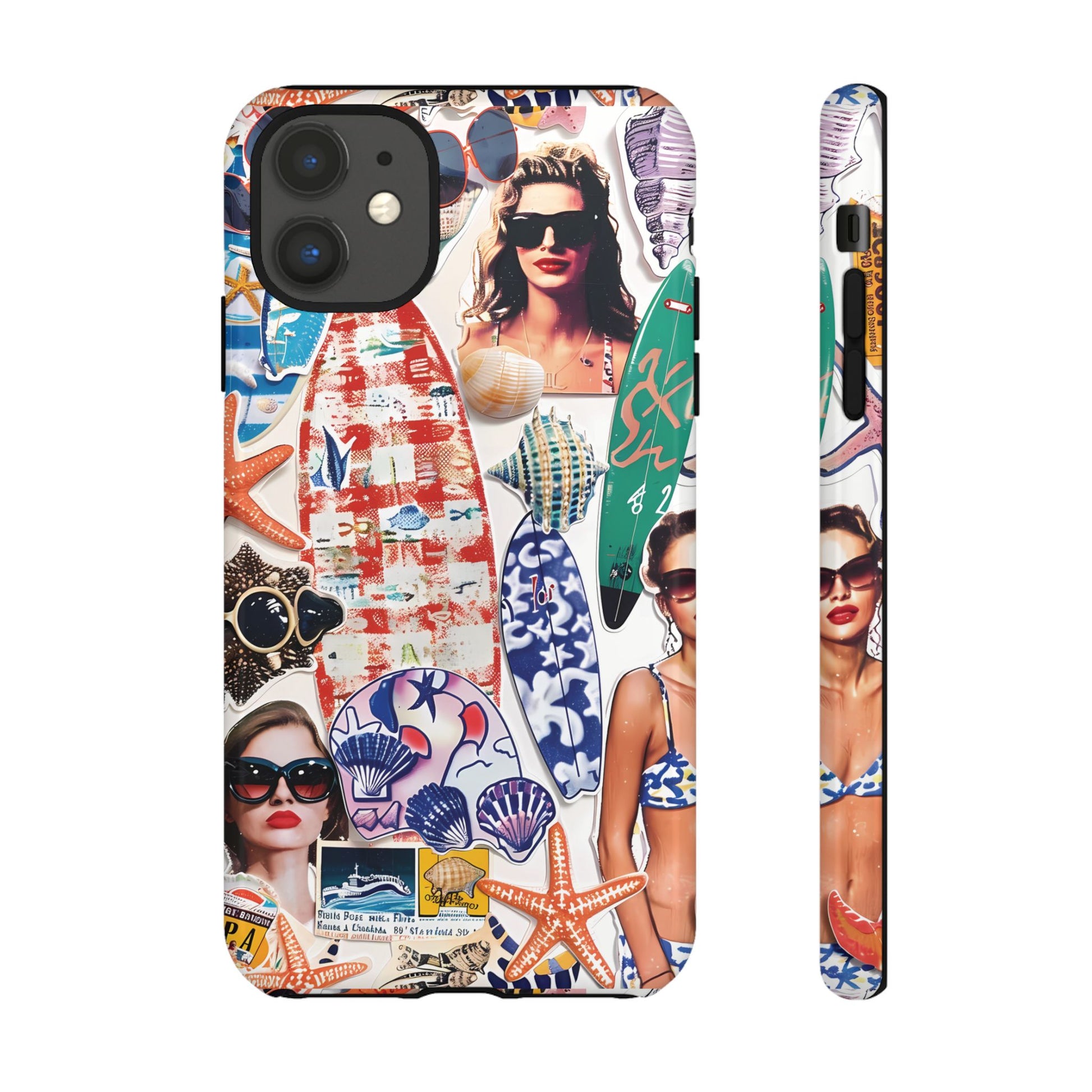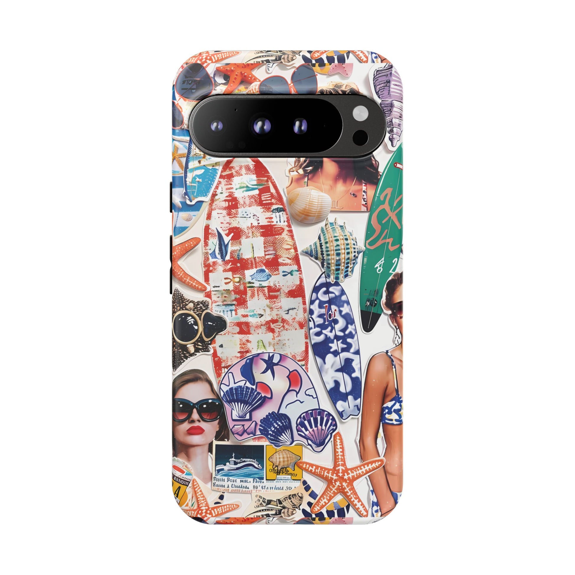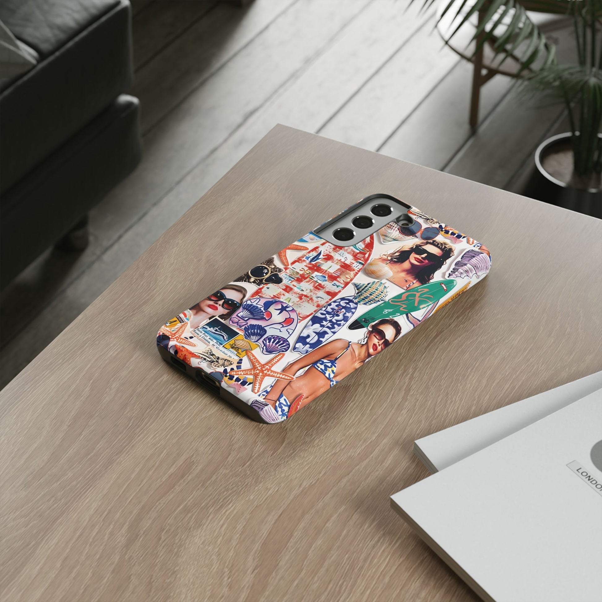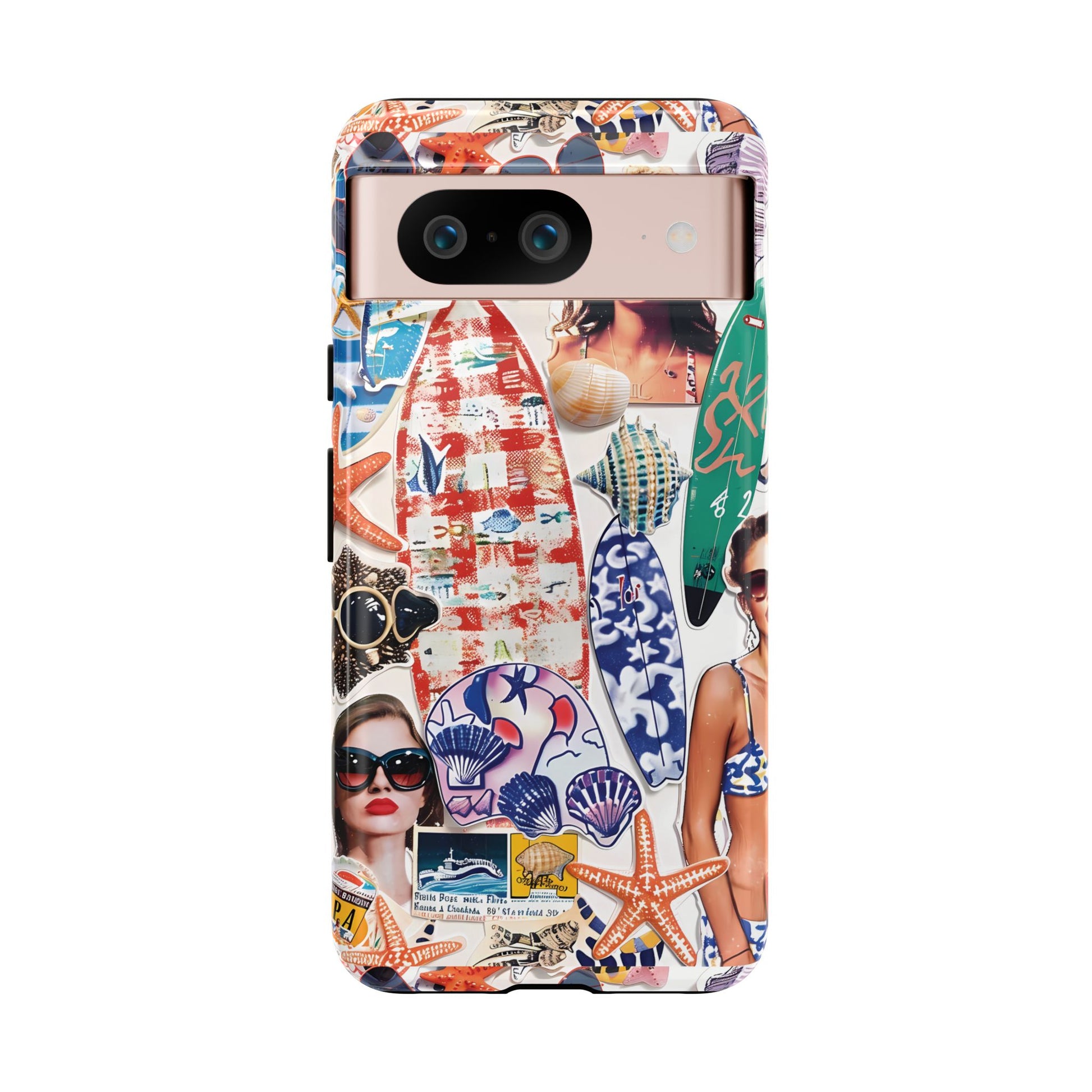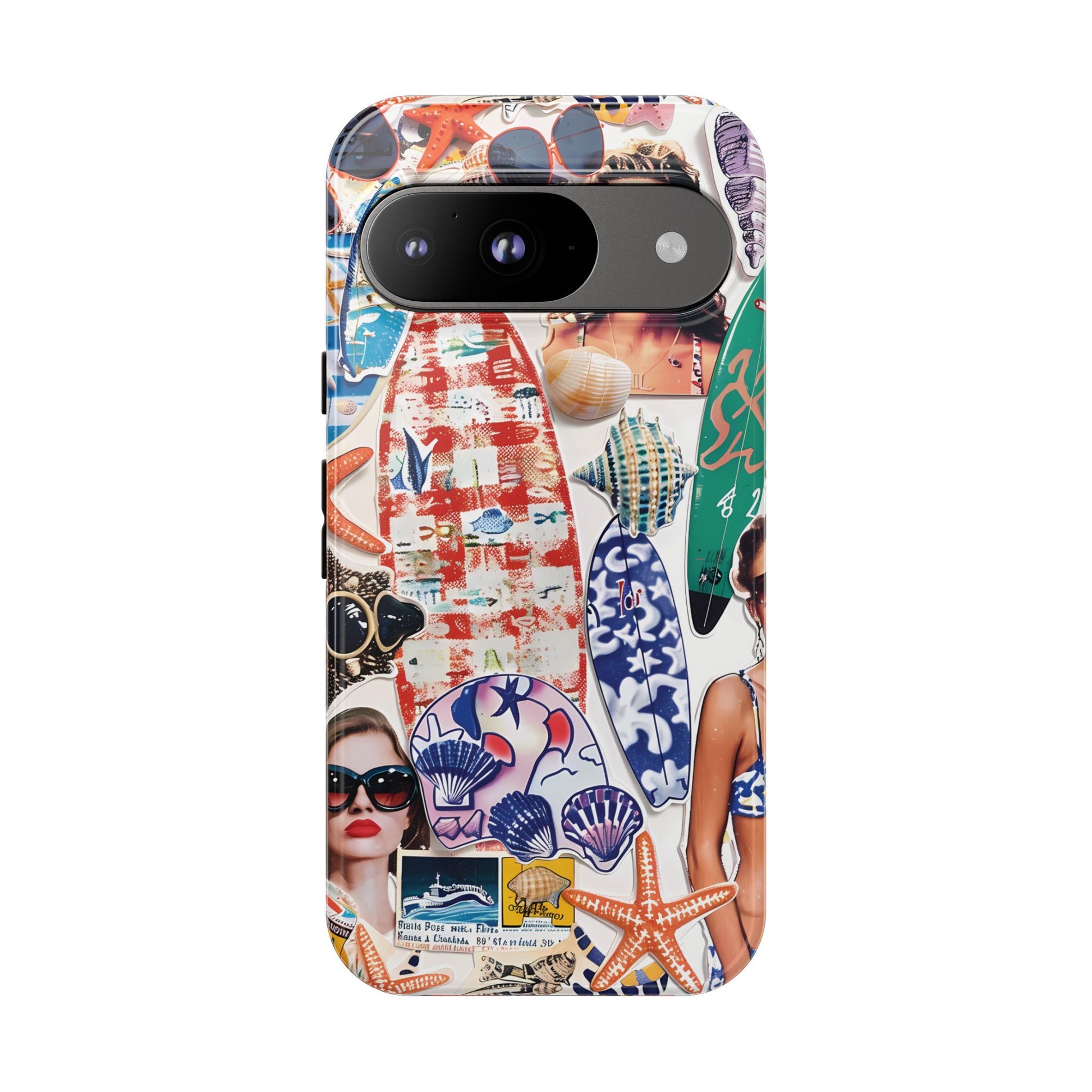 Escape to a bygone era of leisure and luxury with our Vintage Vacation Cover. This captivating collage celebrates the golden age of retro island vacations, featuring vintage images of surfboards, starfish, and sun-kissed beaches. Take a trip down memory lane and let your phone be your passport to paradise