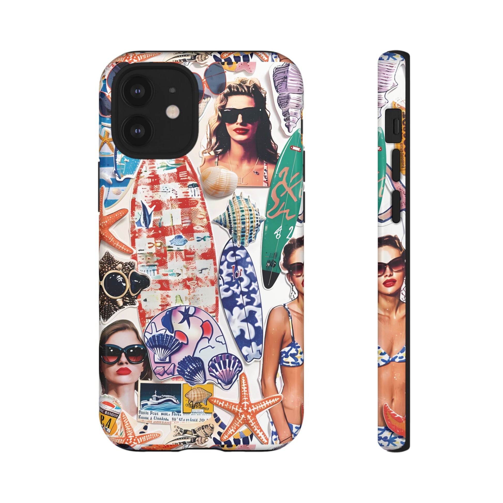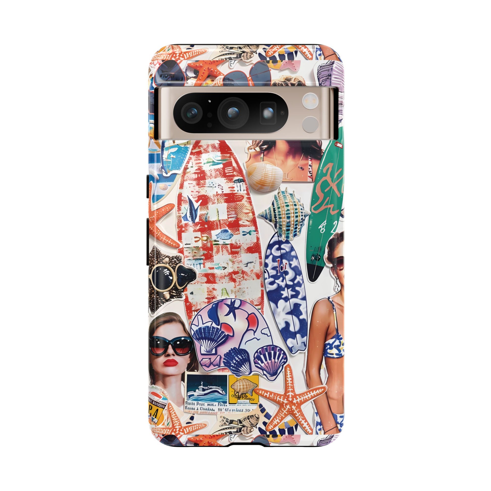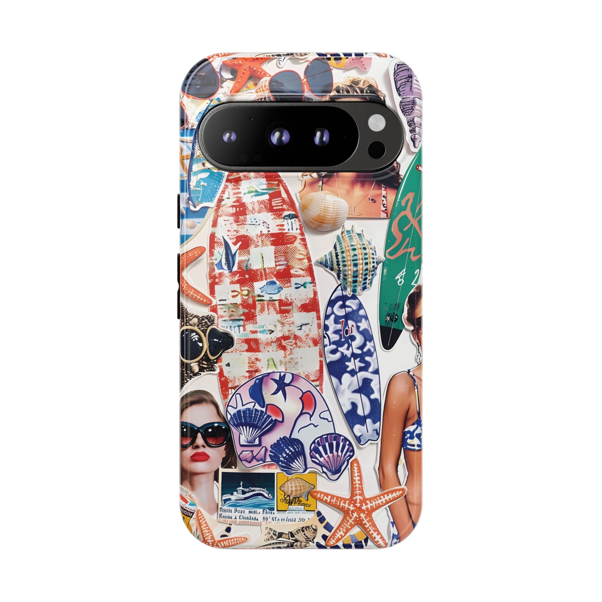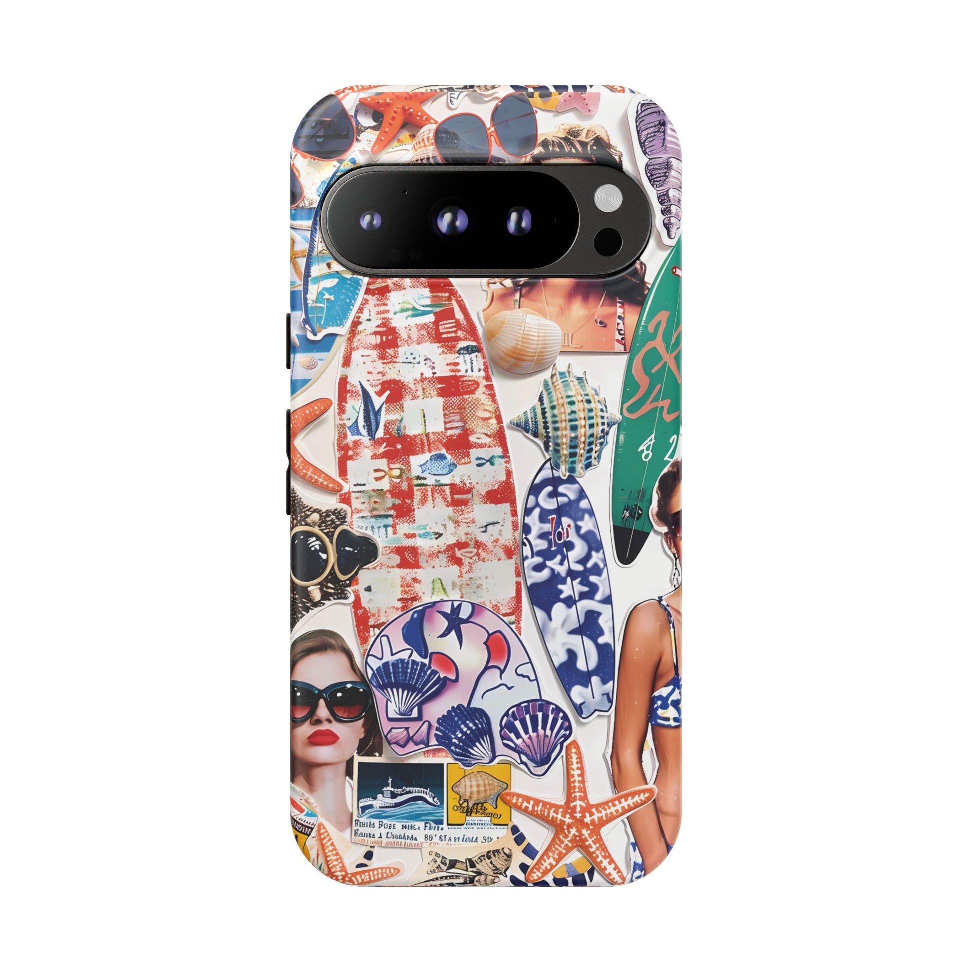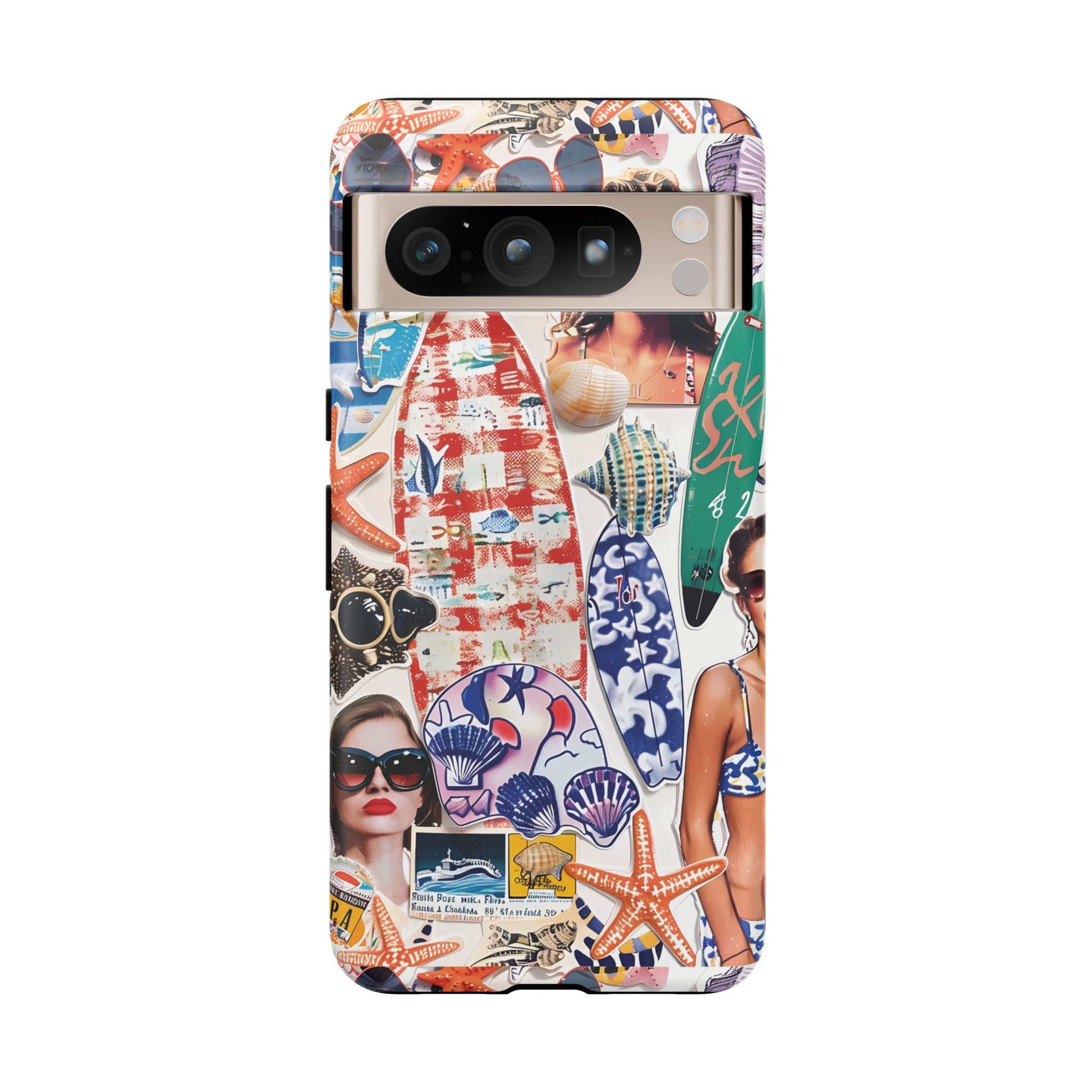 Escape to a bygone era of leisure and luxury with our Vintage Vacation Cover. This captivating collage celebrates the golden age of retro island vacations, featuring vintage images of surfboards, starfish, and sun-kissed beaches. Take a trip down memory lane and let your phone be your passport to paradise